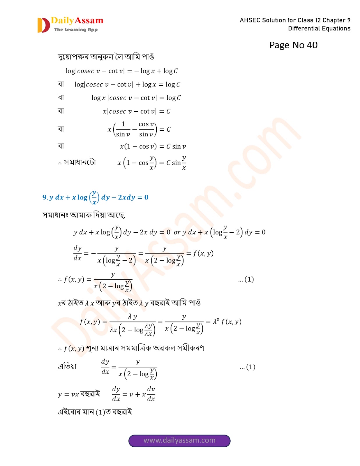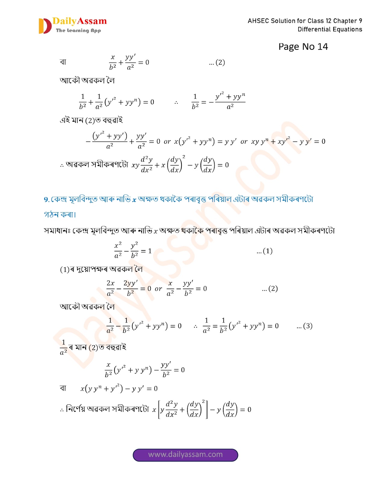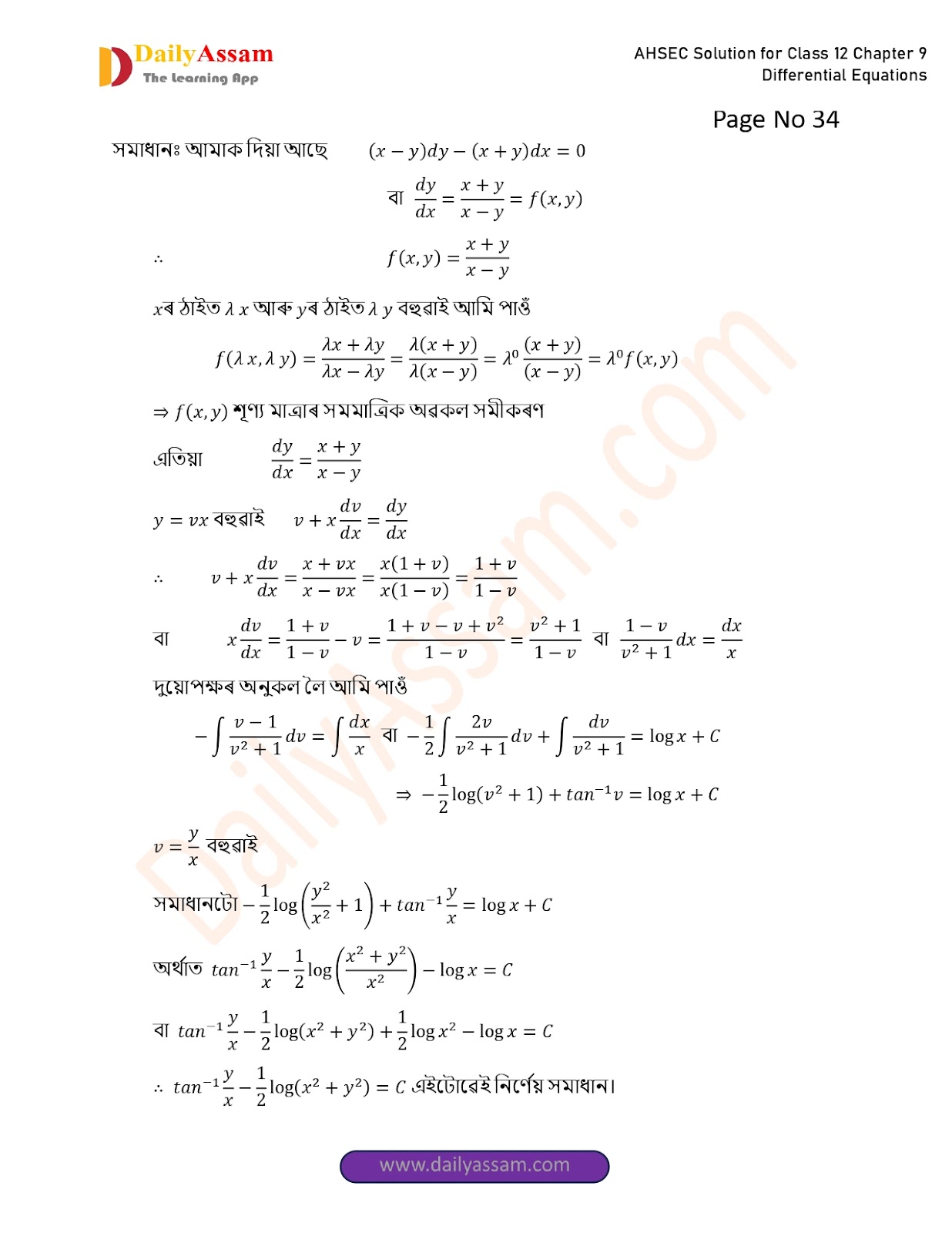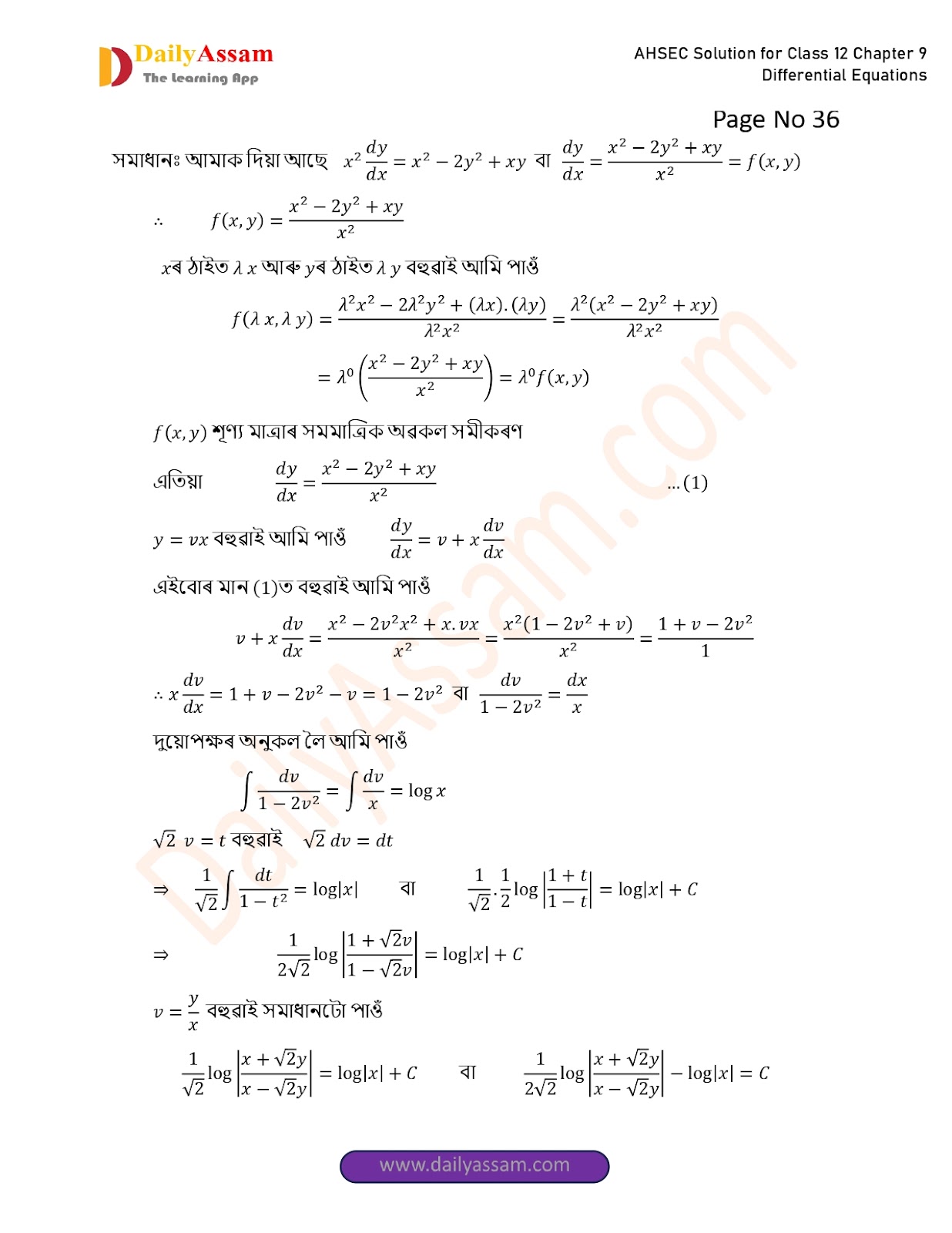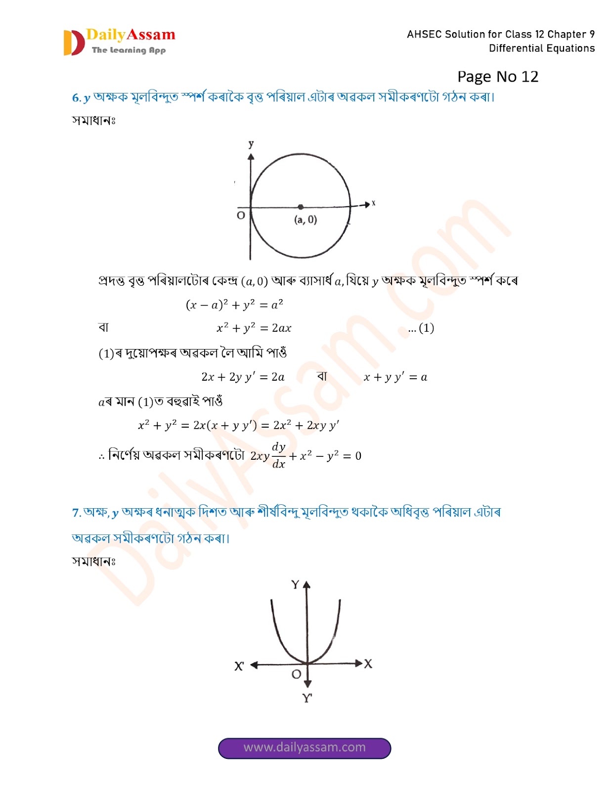 AHSEC Class 12 Mathematics Part 2 Chapter 9 Solution | Assam Board Class 12 Mathematics Part 2 Chapter 9 অৱকল সমীকৰণ (Differential Equations) Answer | 2025 - 2026