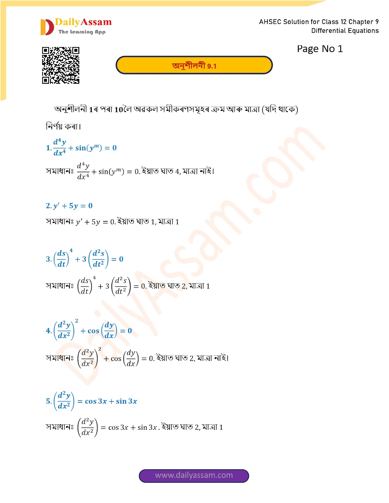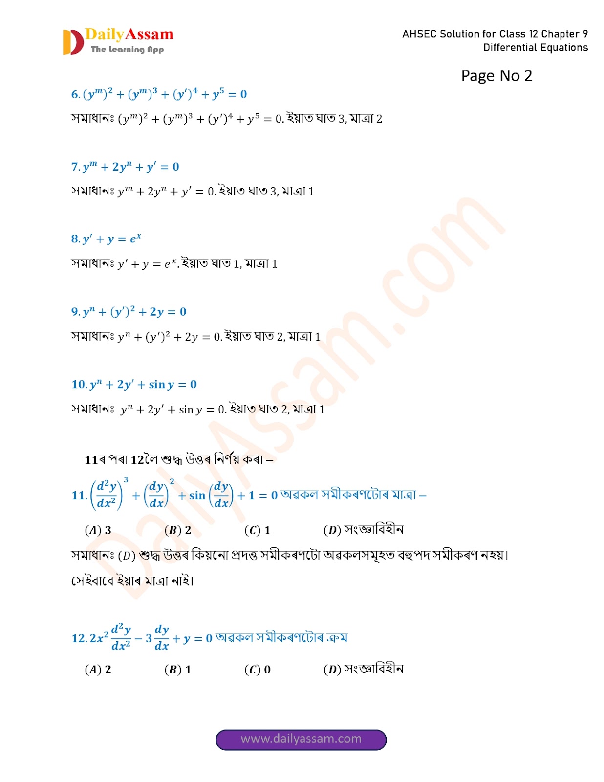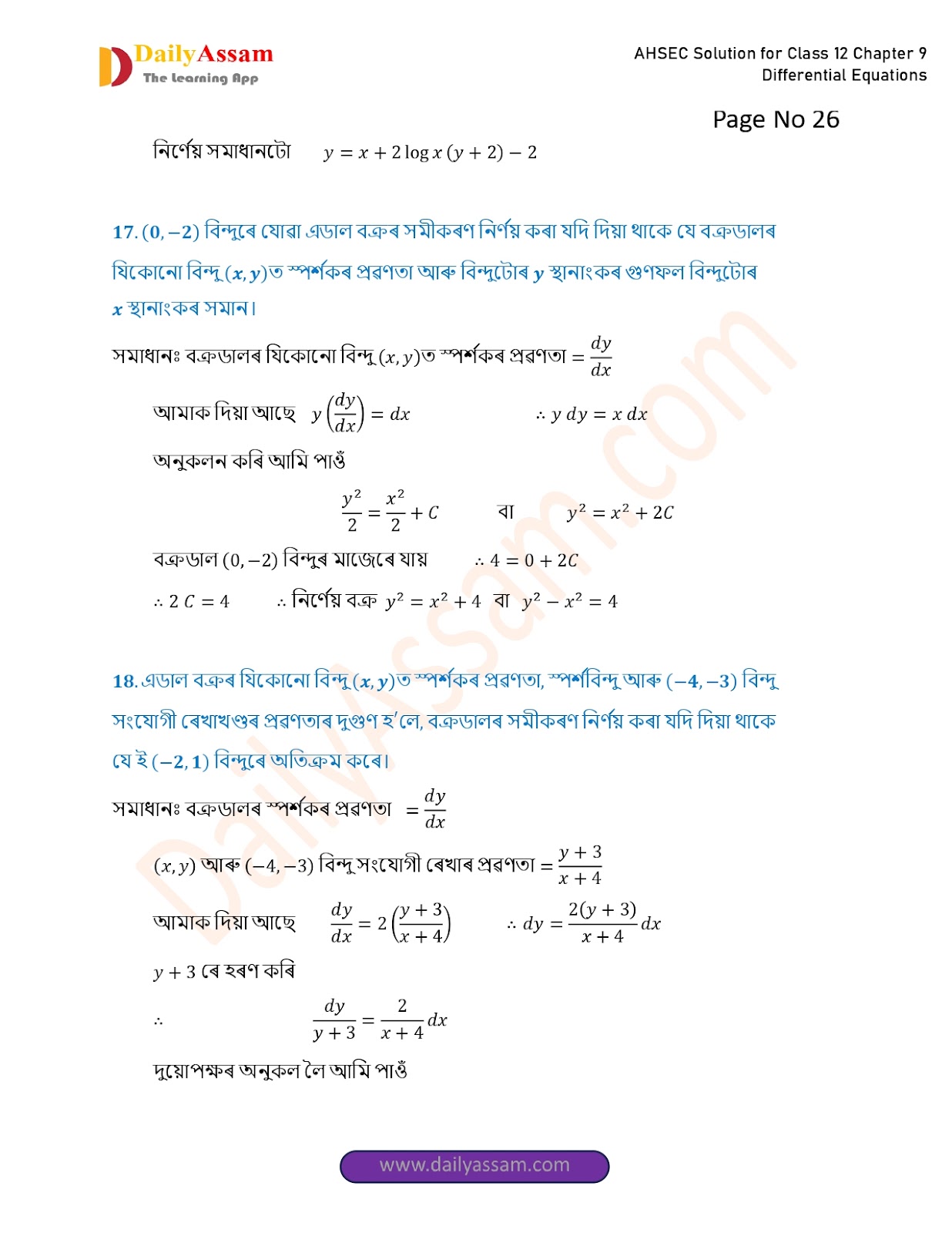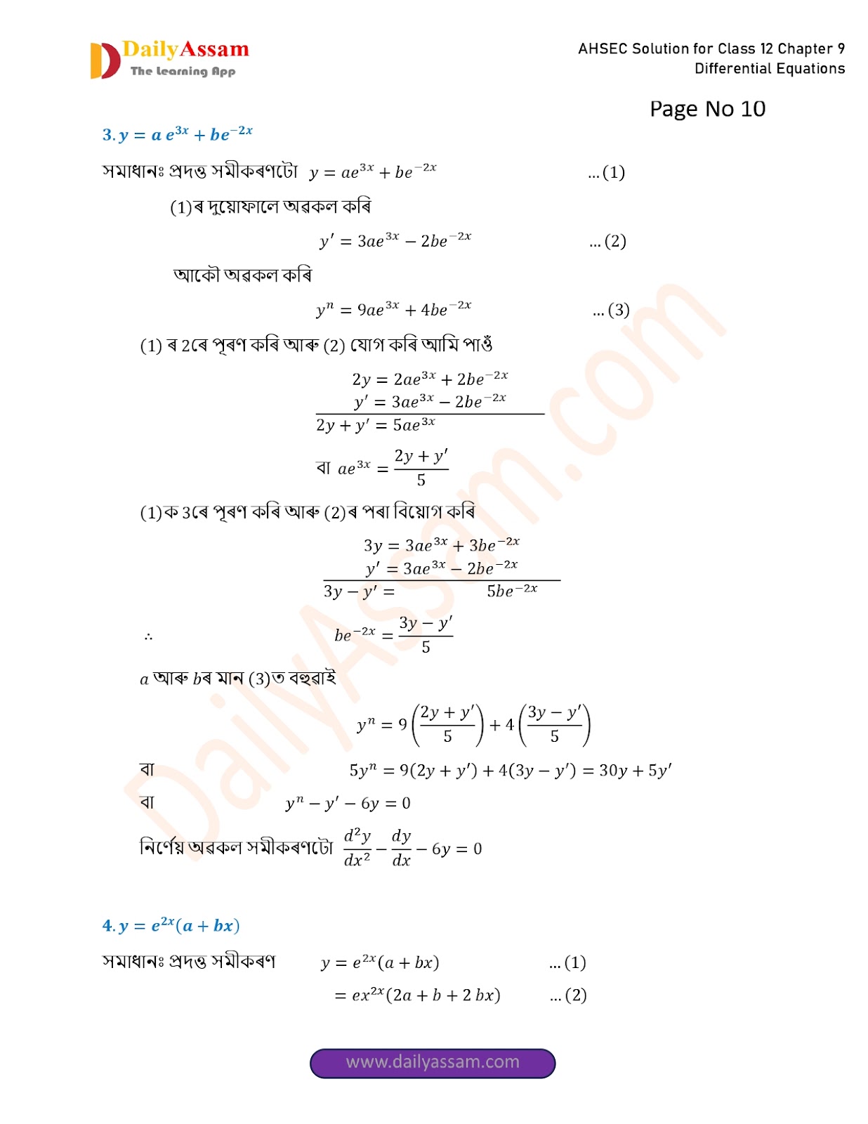 AHSEC Class 12 Mathematics Part 2 Chapter 9 Solution | Assam Board Class 12 Mathematics Part 2 Chapter 9 অৱকল সমীকৰণ (Differential Equations) Answer | 2025 - 2026