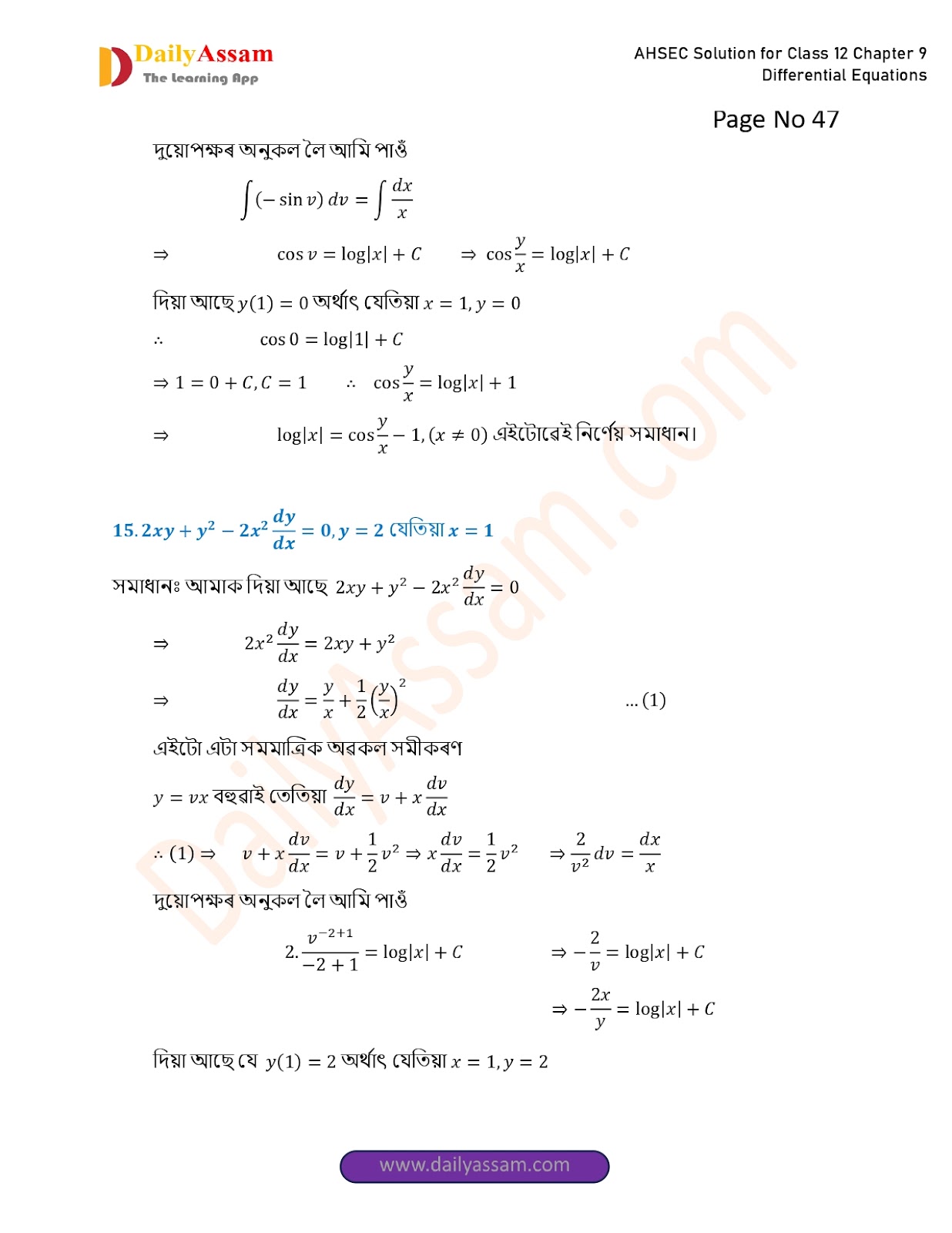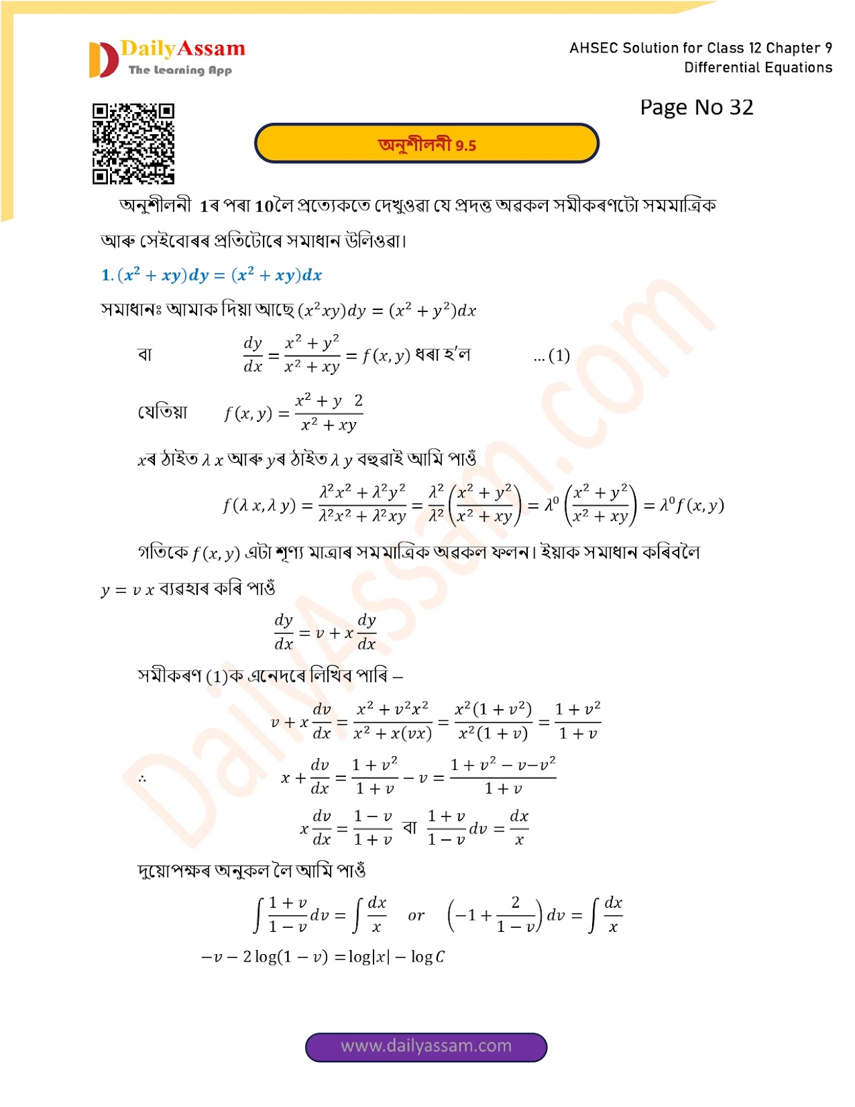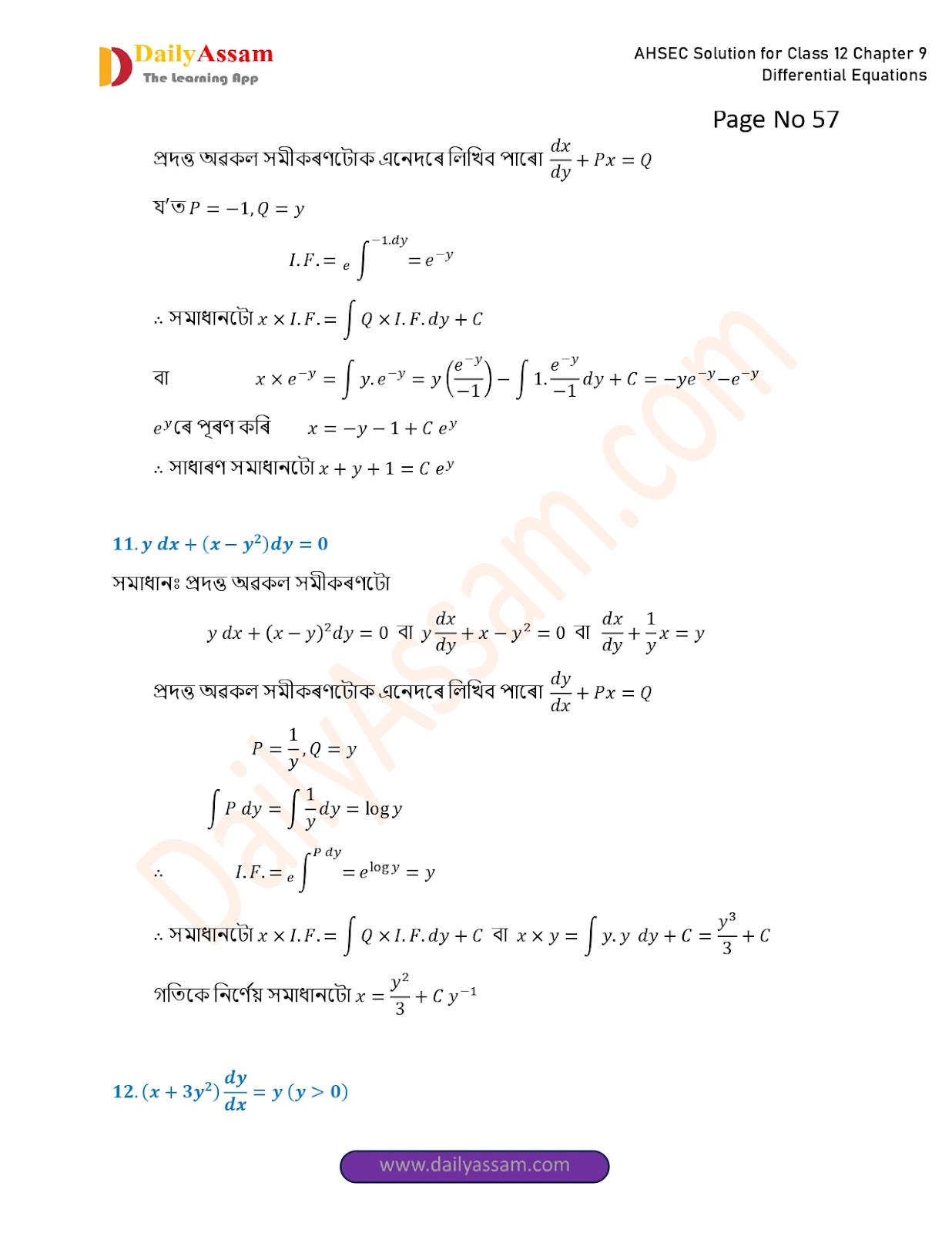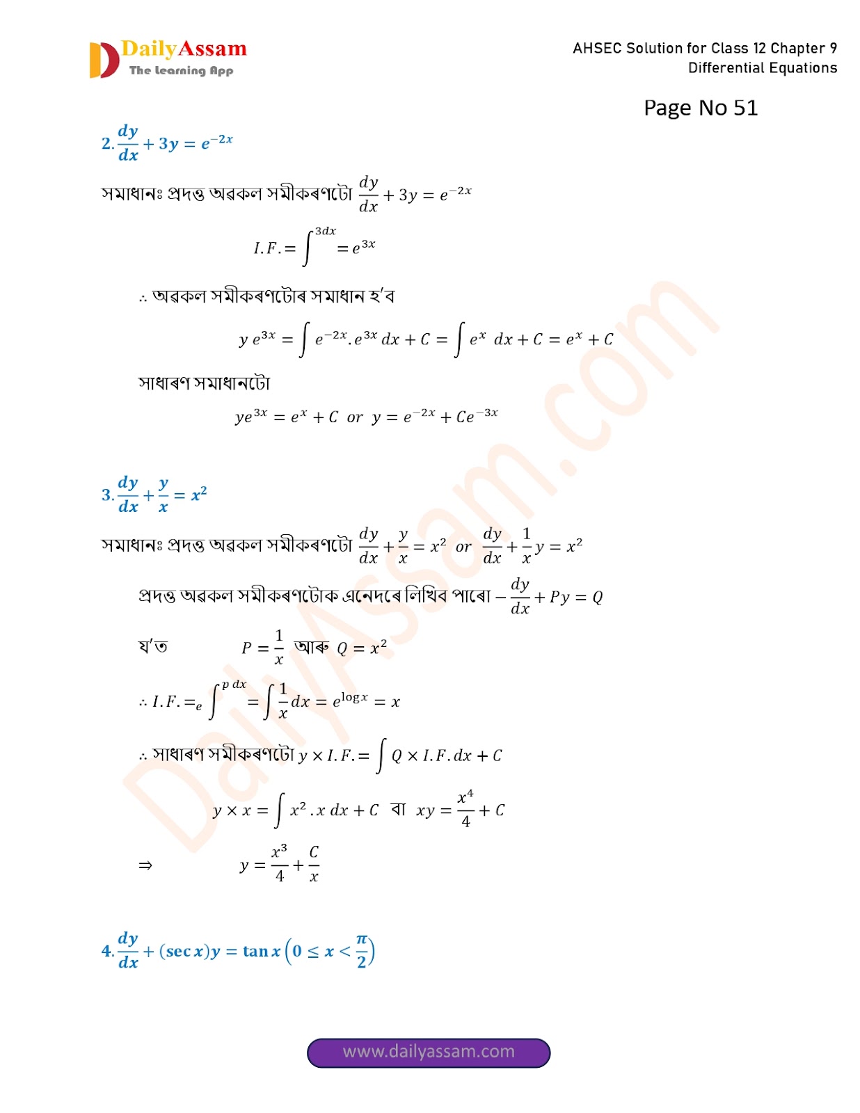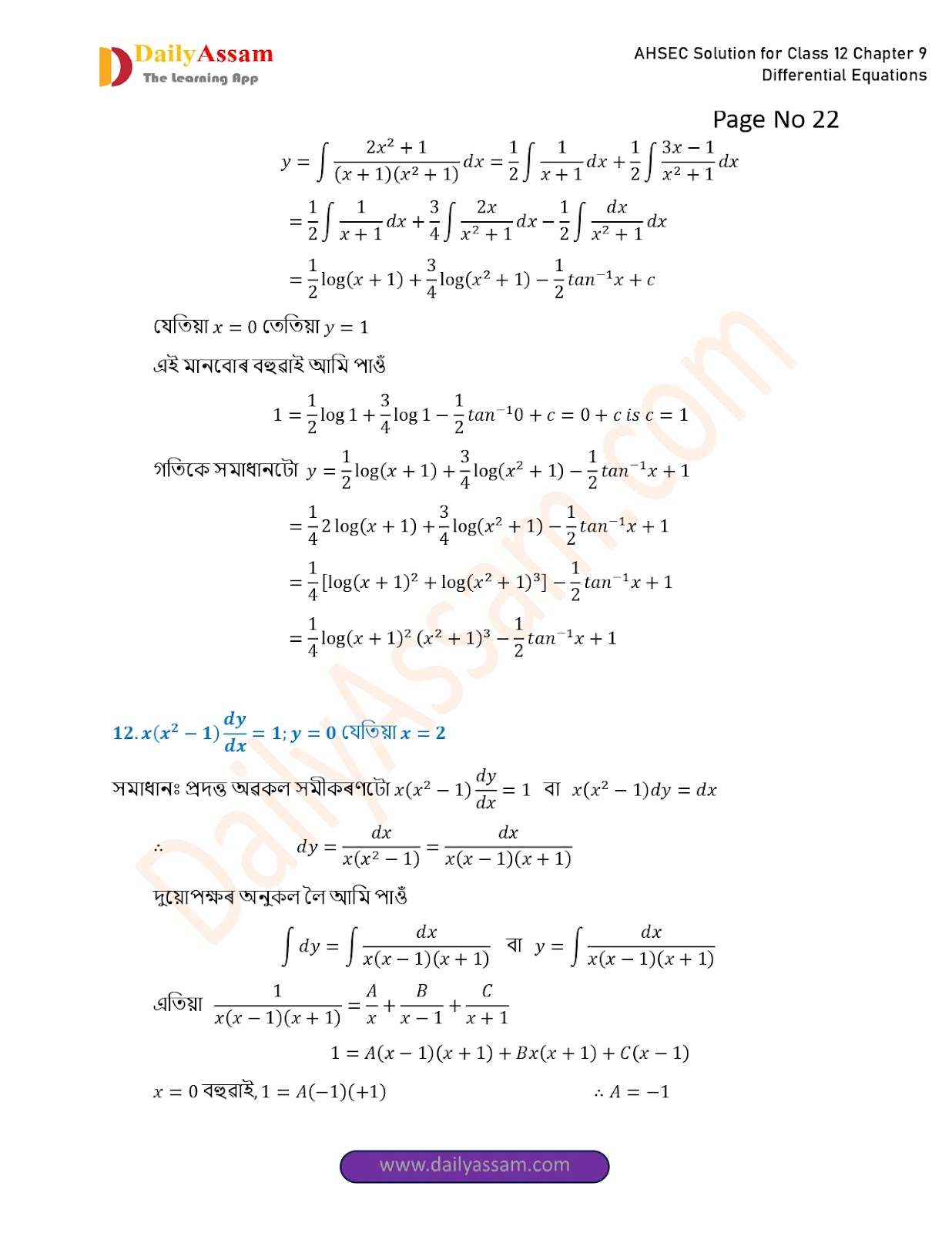 AHSEC Class 12 Mathematics Part 2 Chapter 9 Solution | Assam Board Class 12 Mathematics Part 2 Chapter 9 অৱকল সমীকৰণ (Differential Equations) Answer | 2025 - 2026