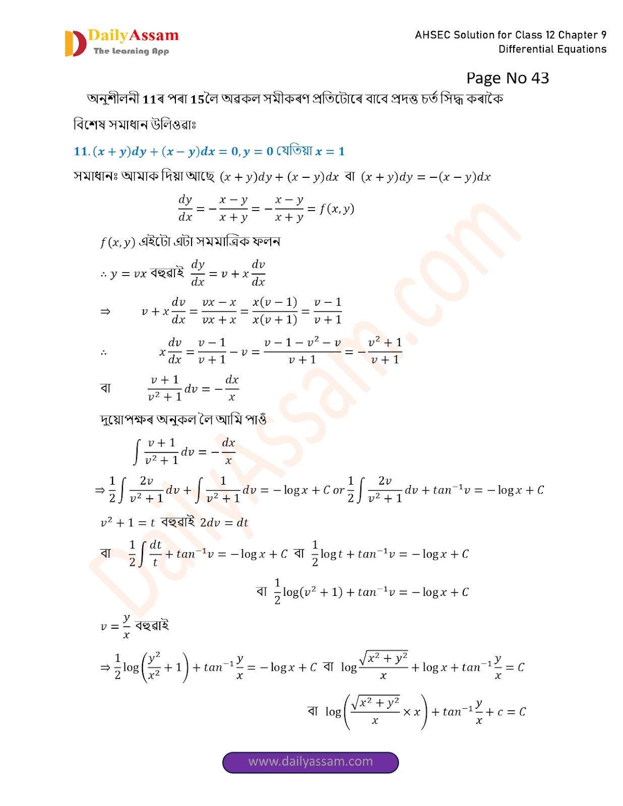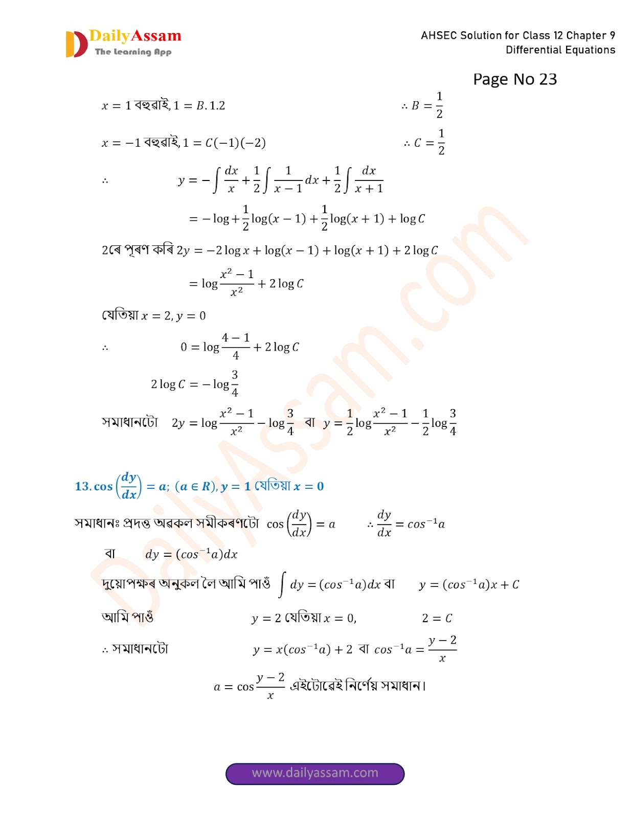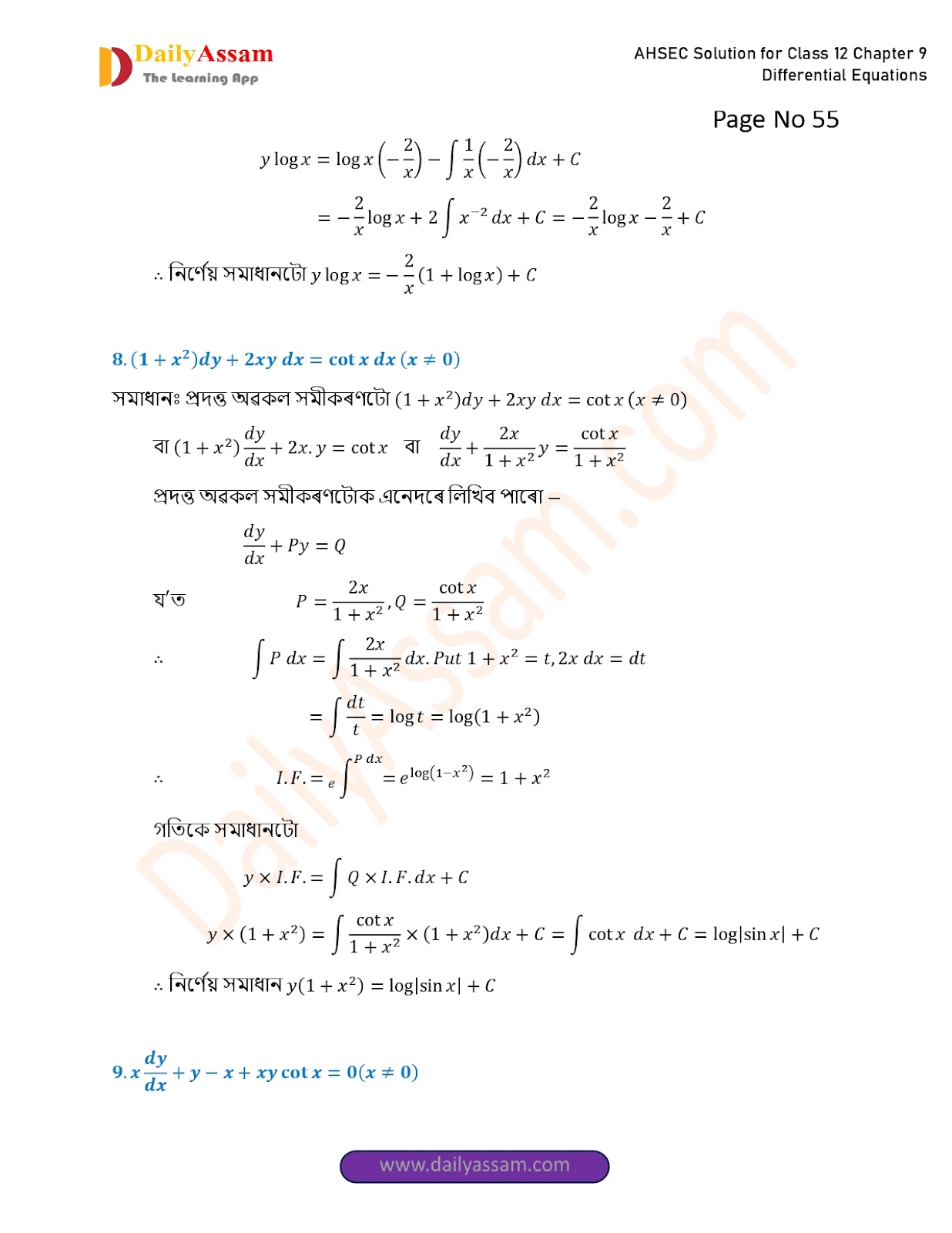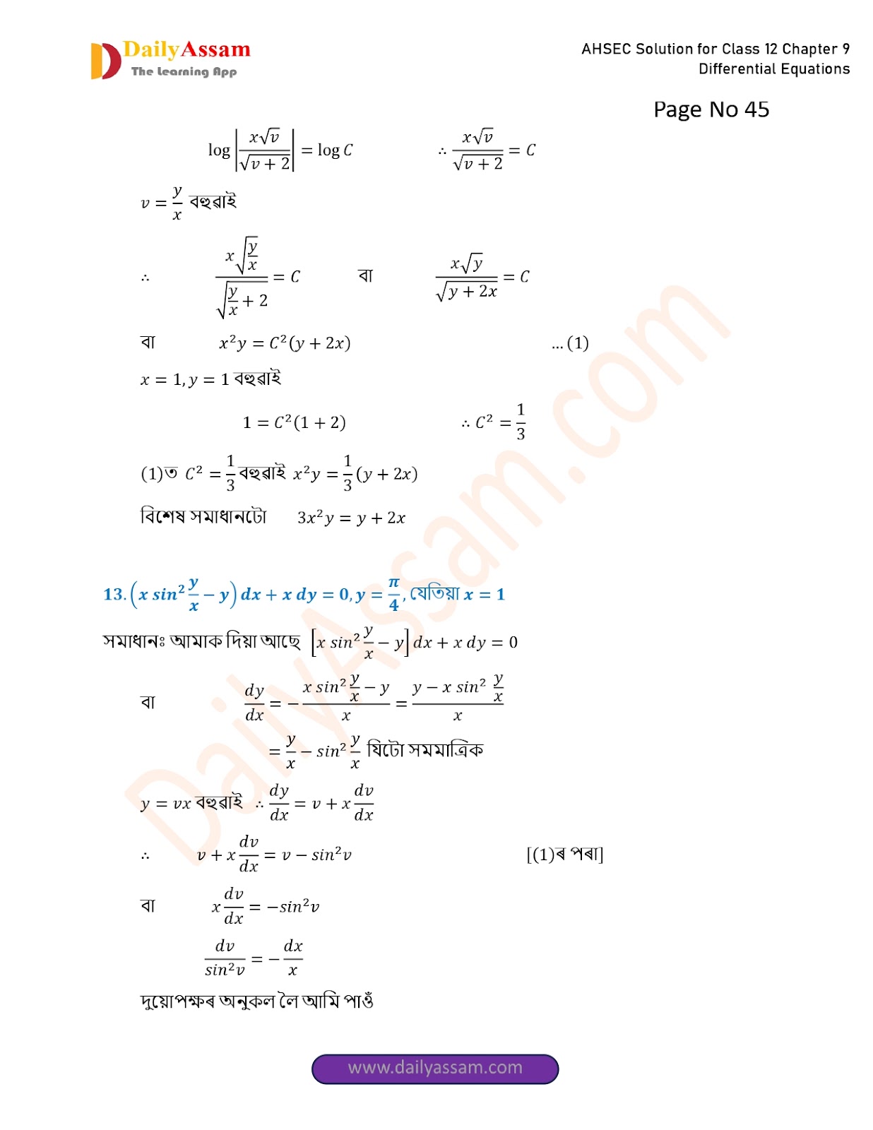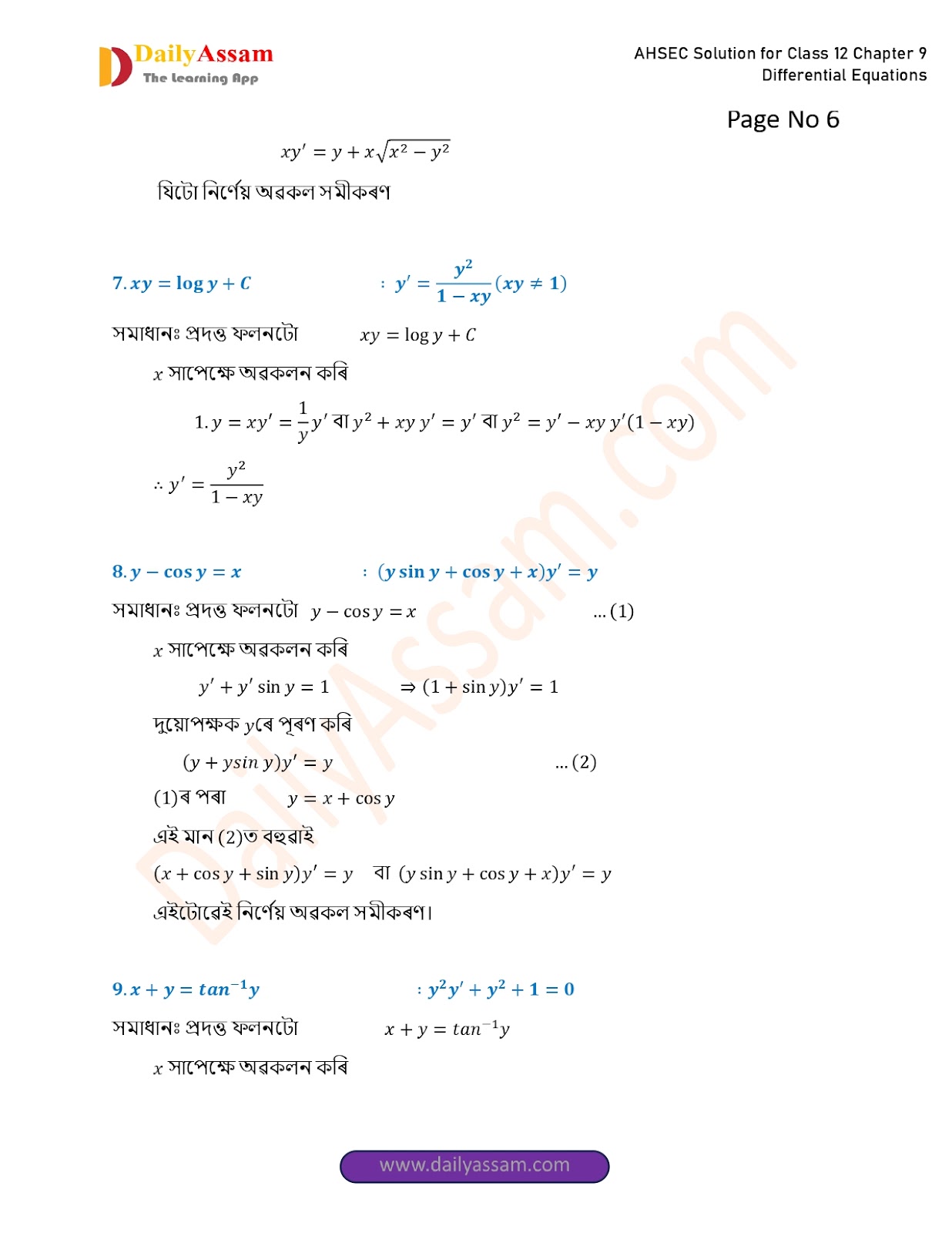 AHSEC Class 12 Mathematics Part 2 Chapter 9 Solution | Assam Board Class 12 Mathematics Part 2 Chapter 9 অৱকল সমীকৰণ (Differential Equations) Answer | 2025 - 2026