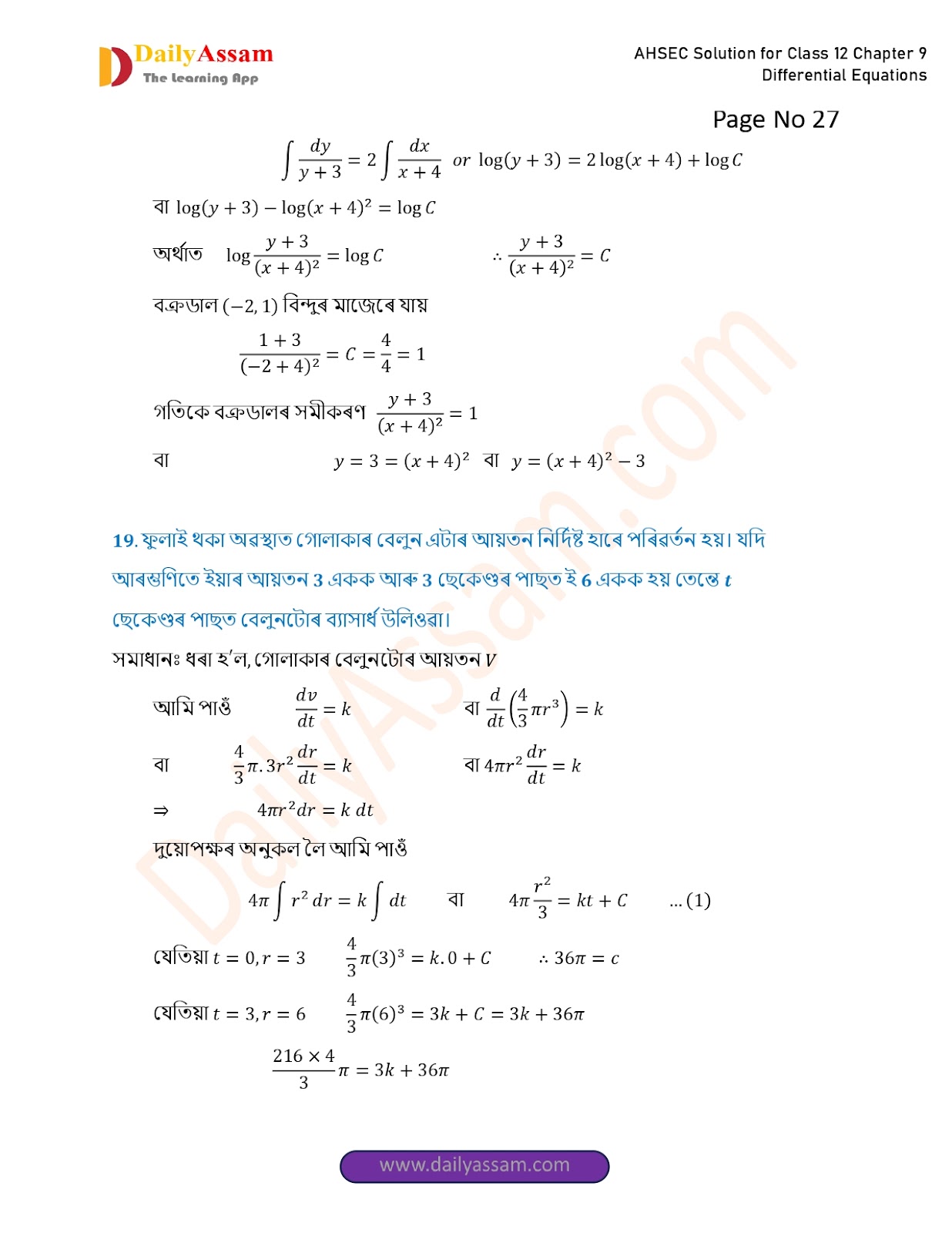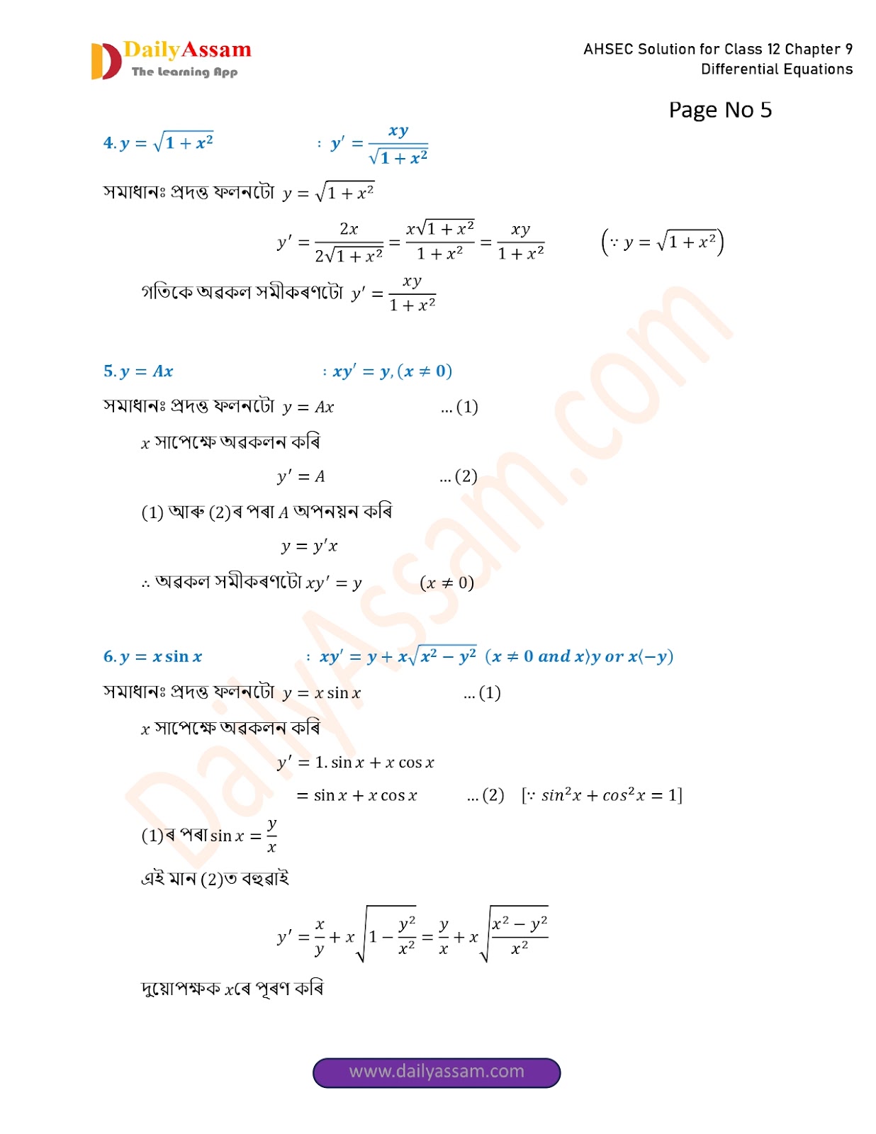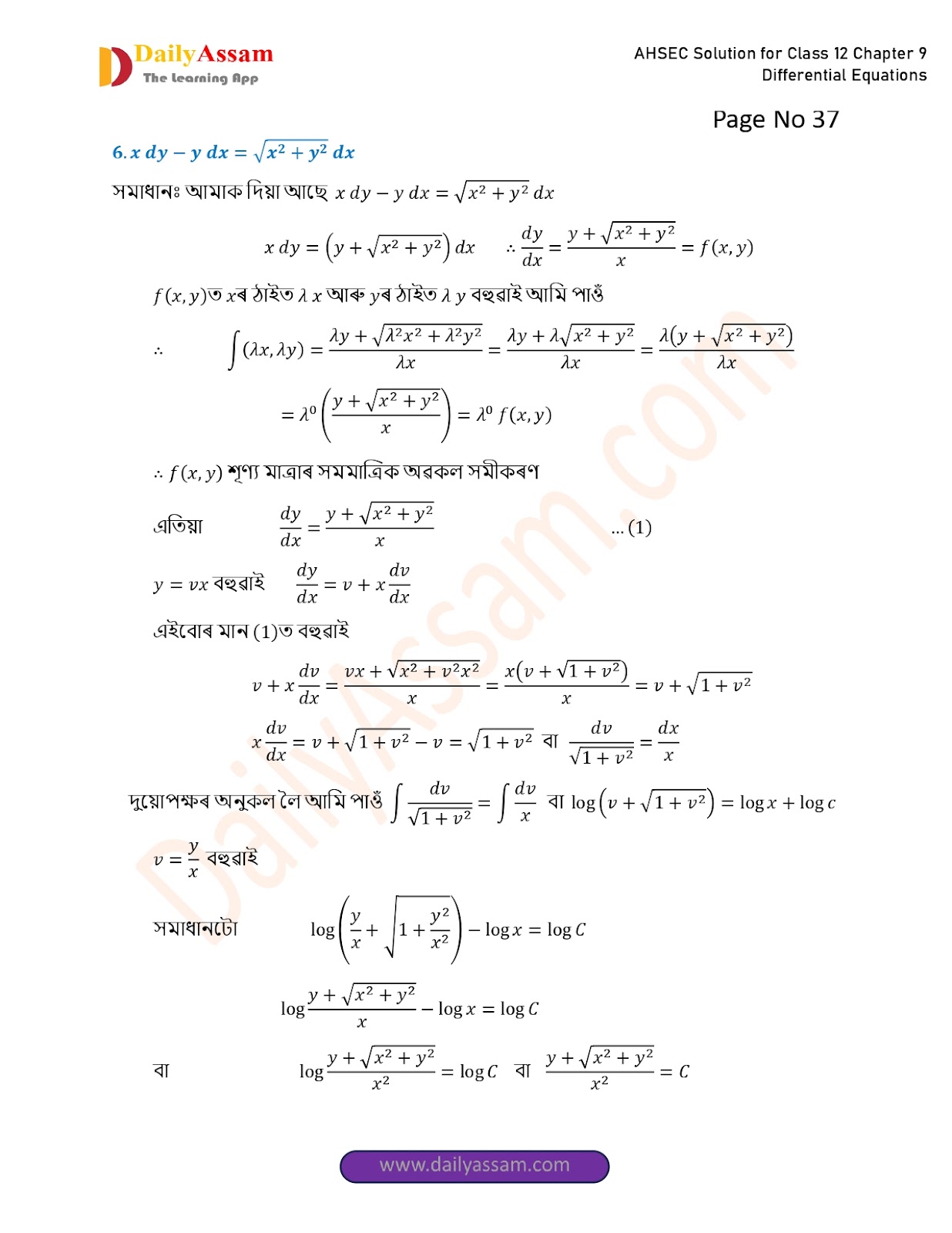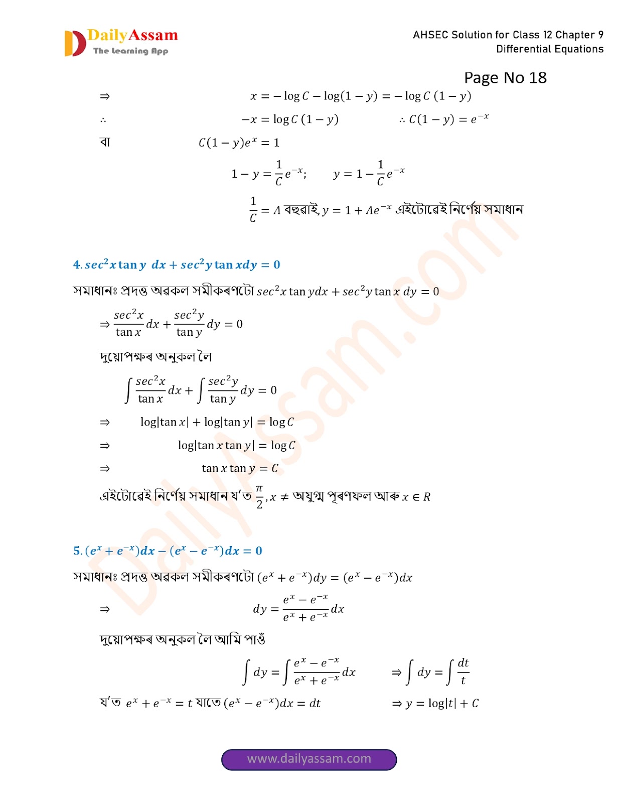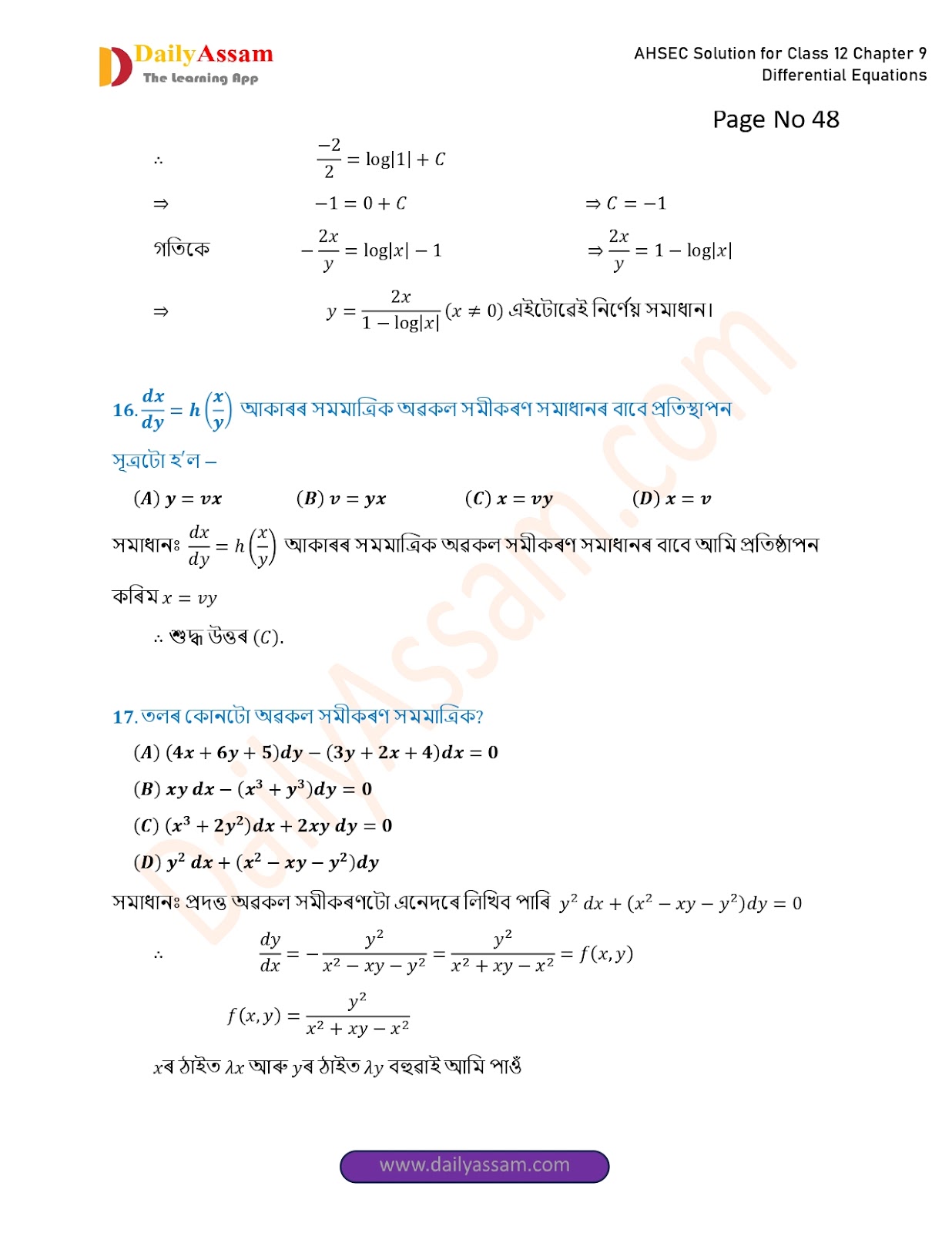 AHSEC Class 12 Mathematics Part 2 Chapter 9 Solution | Assam Board Class 12 Mathematics Part 2 Chapter 9 অৱকল সমীকৰণ (Differential Equations) Answer | 2025 - 2026