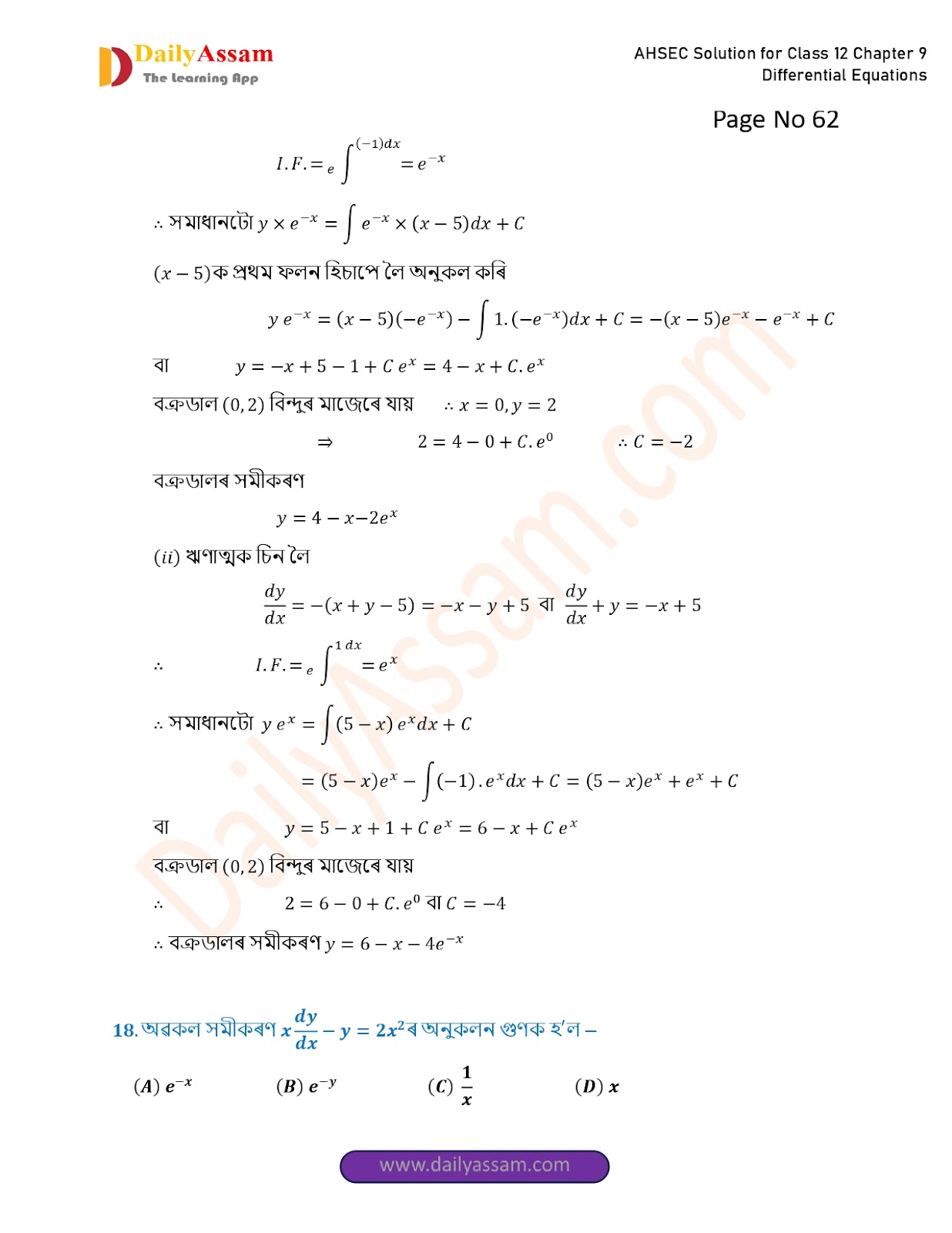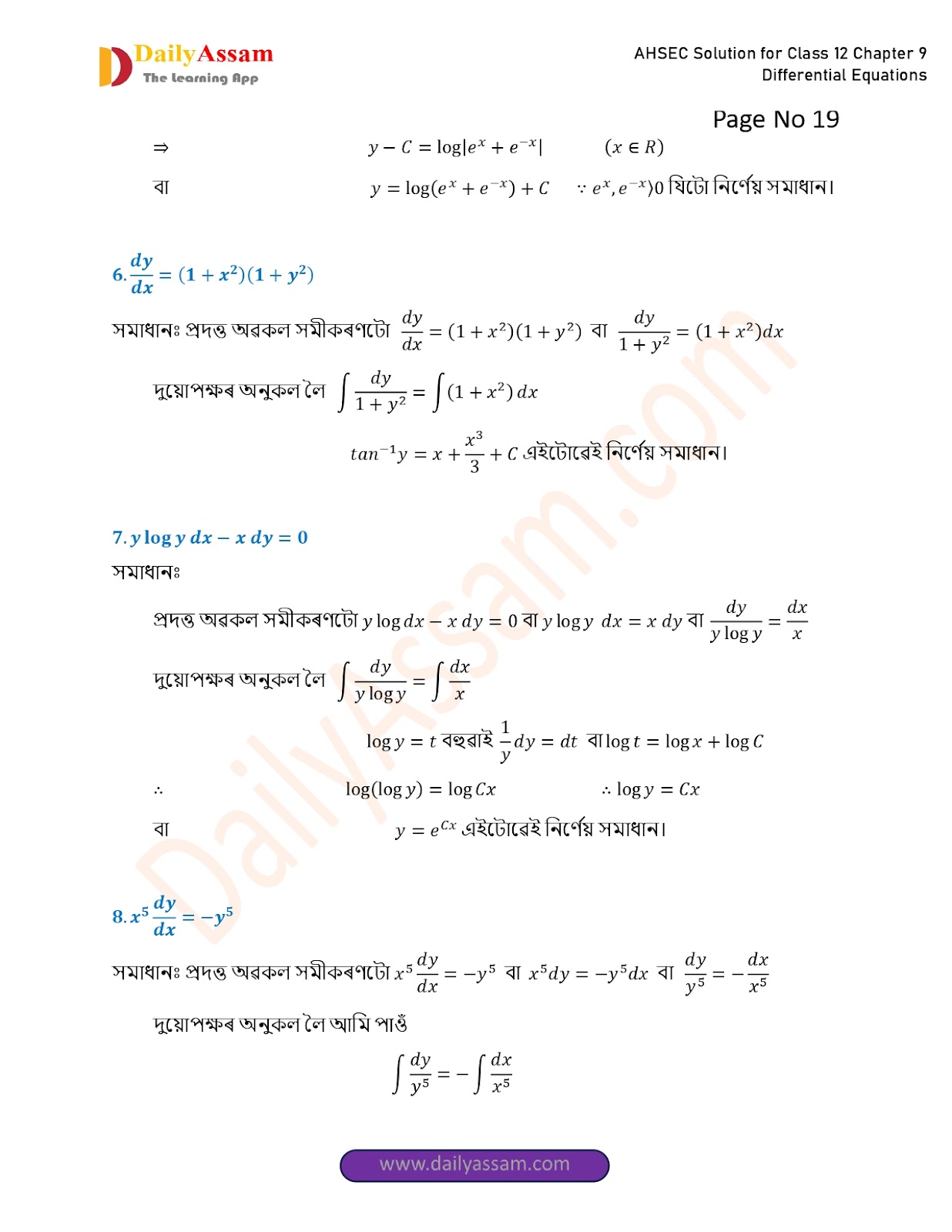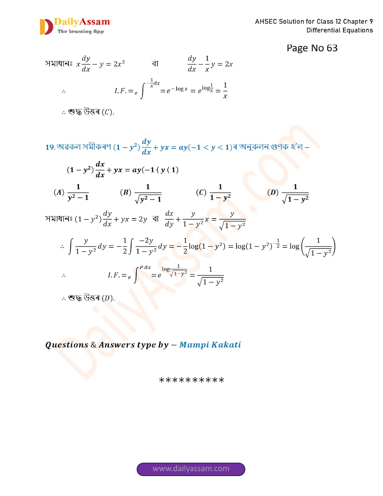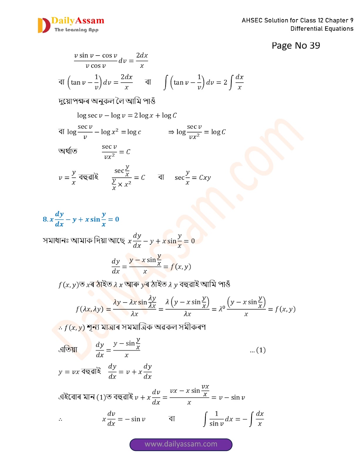 AHSEC Class 12 Mathematics Part 2 Chapter 9 Solution | Assam Board Class 12 Mathematics Part 2 Chapter 9 অৱকল সমীকৰণ (Differential Equations) Answer | 2025 - 2026