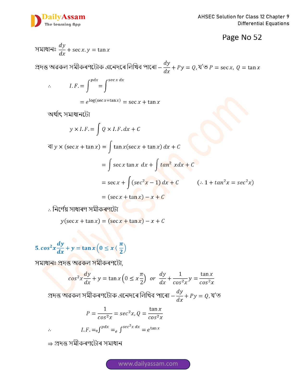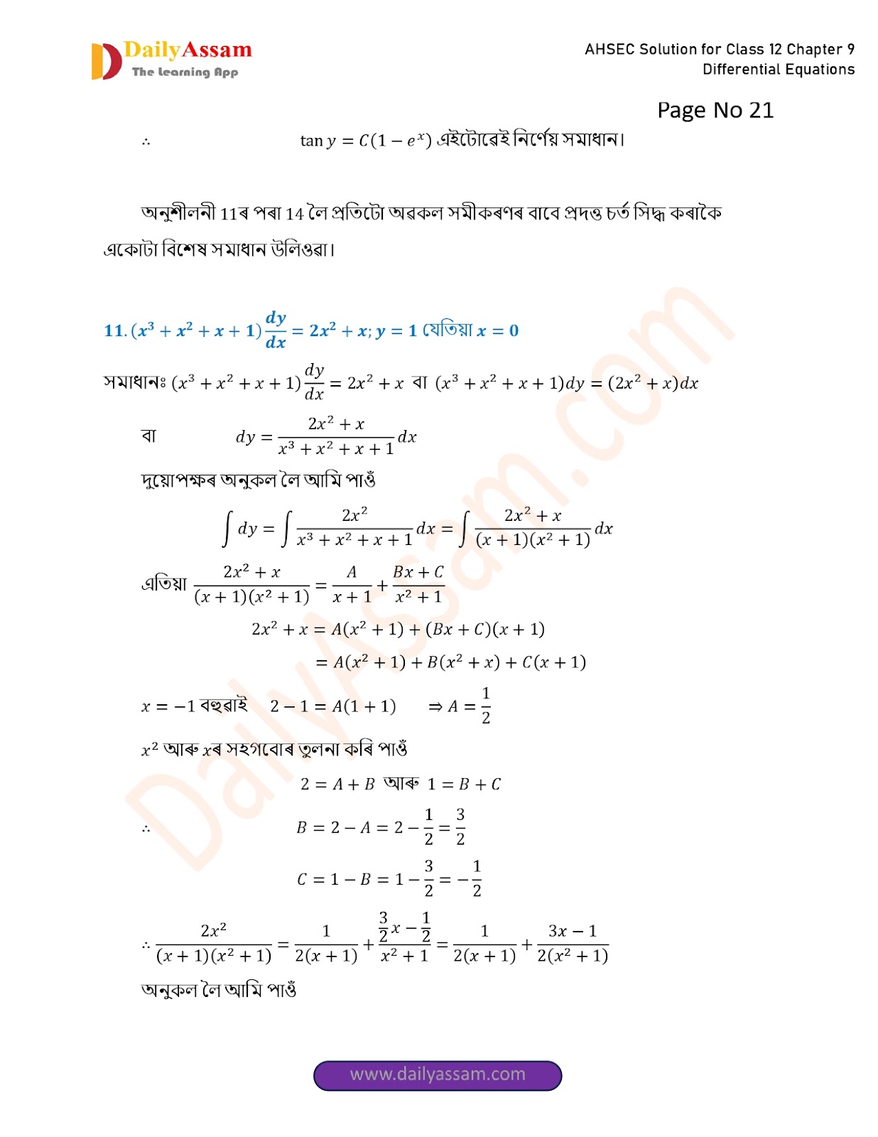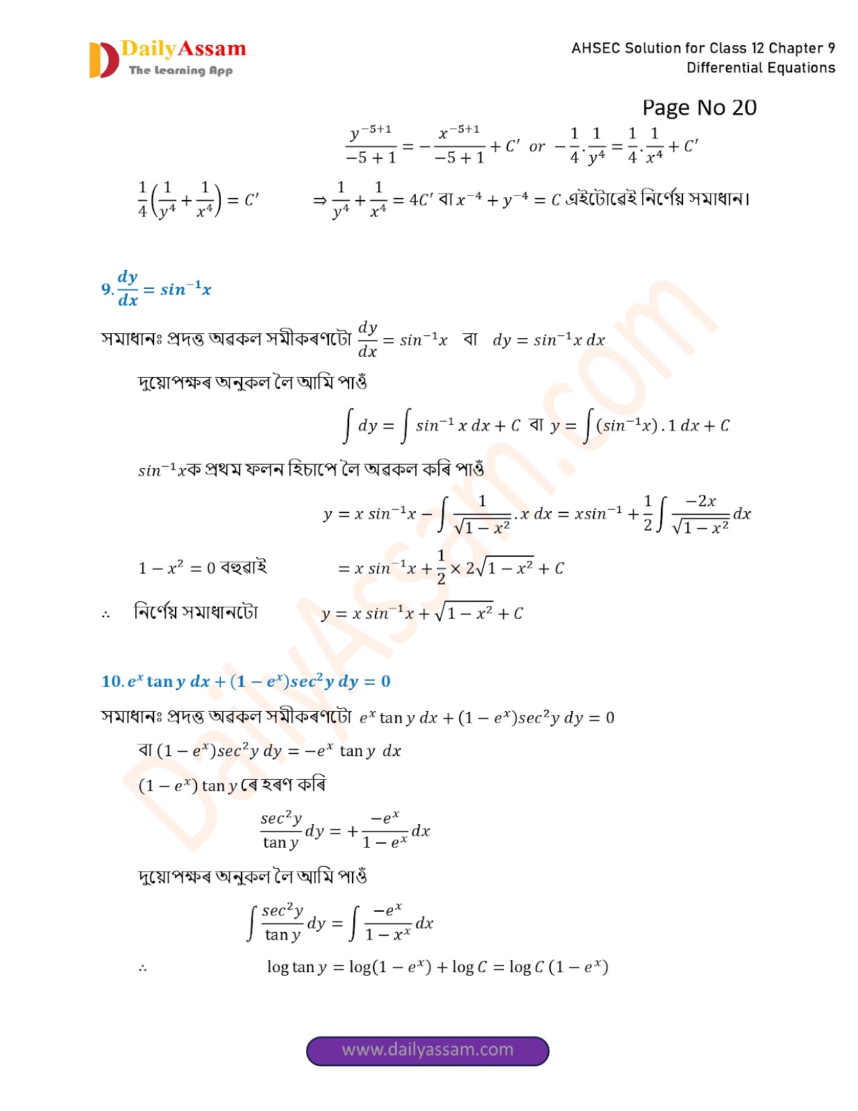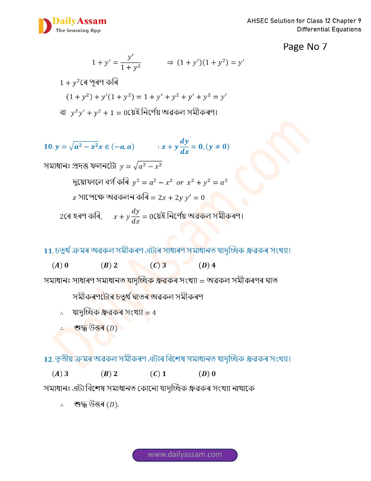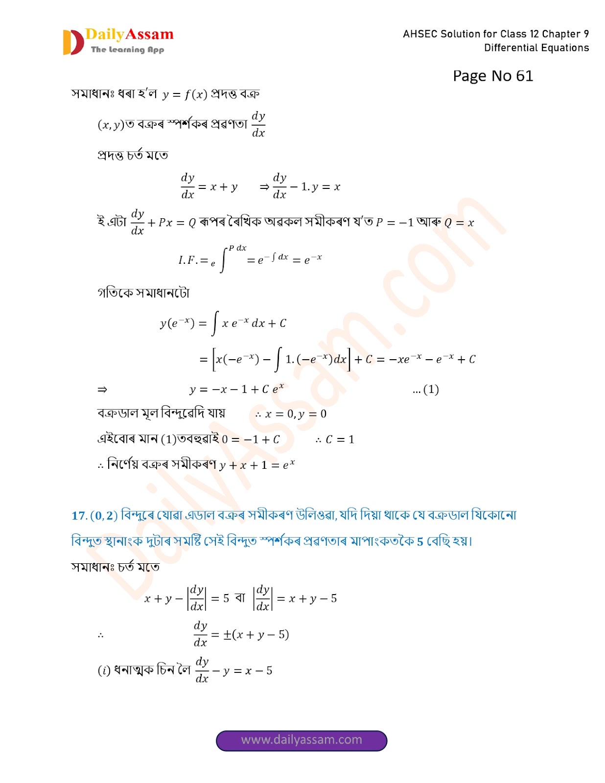 AHSEC Class 12 Mathematics Part 2 Chapter 9 Solution | Assam Board Class 12 Mathematics Part 2 Chapter 9 অৱকল সমীকৰণ (Differential Equations) Answer | 2025 - 2026