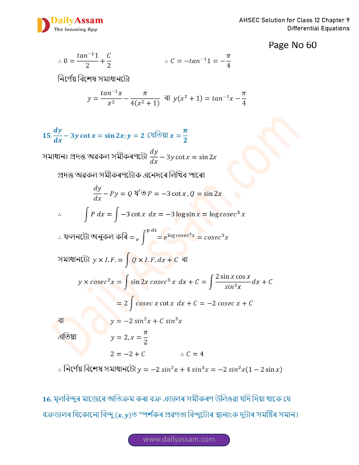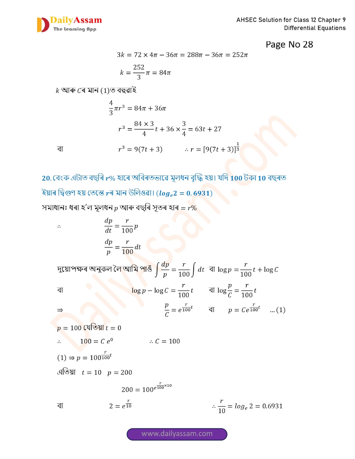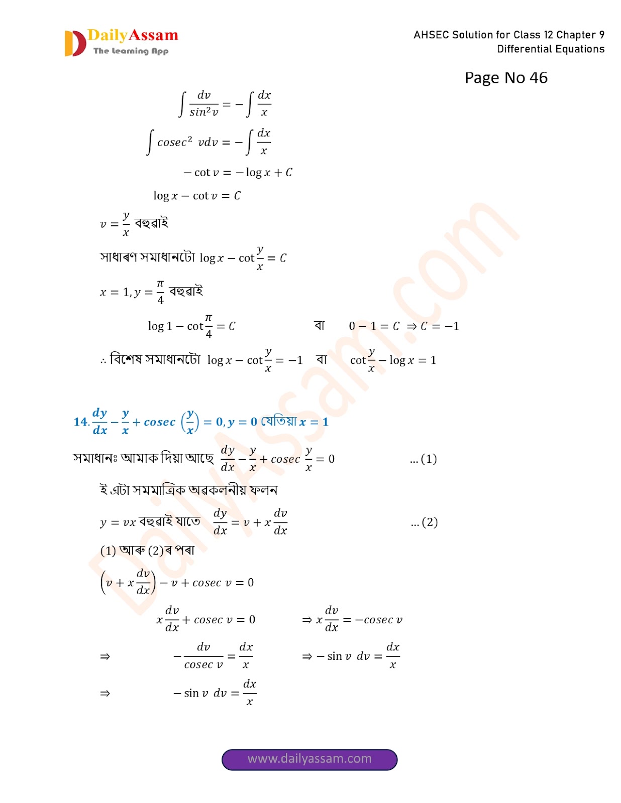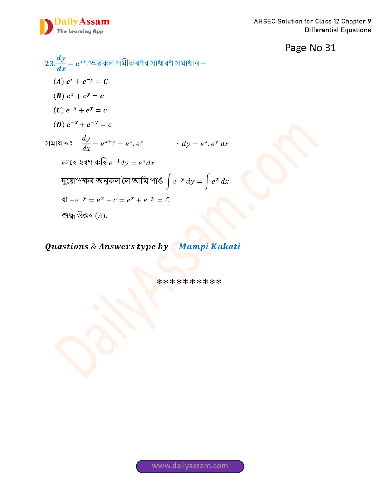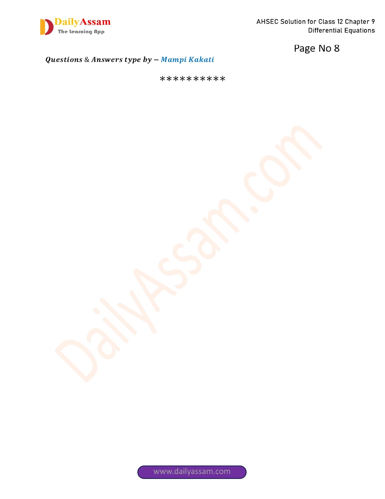 AHSEC Class 12 Mathematics Part 2 Chapter 9 Solution | Assam Board Class 12 Mathematics Part 2 Chapter 9 অৱকল সমীকৰণ (Differential Equations) Answer | 2025 - 2026