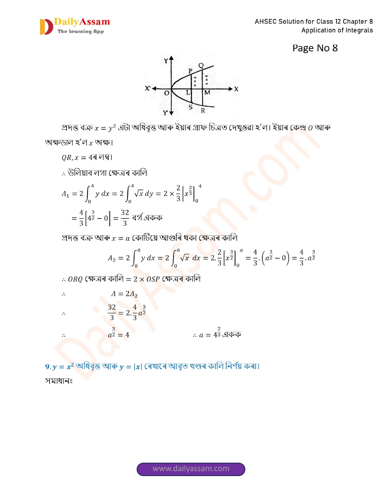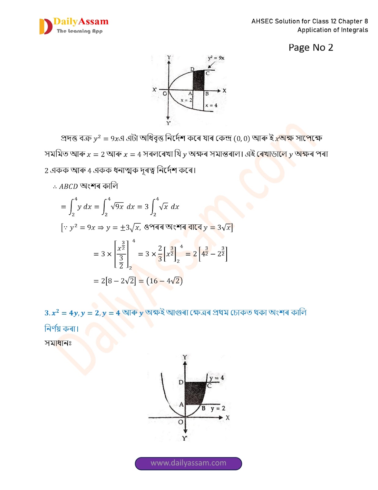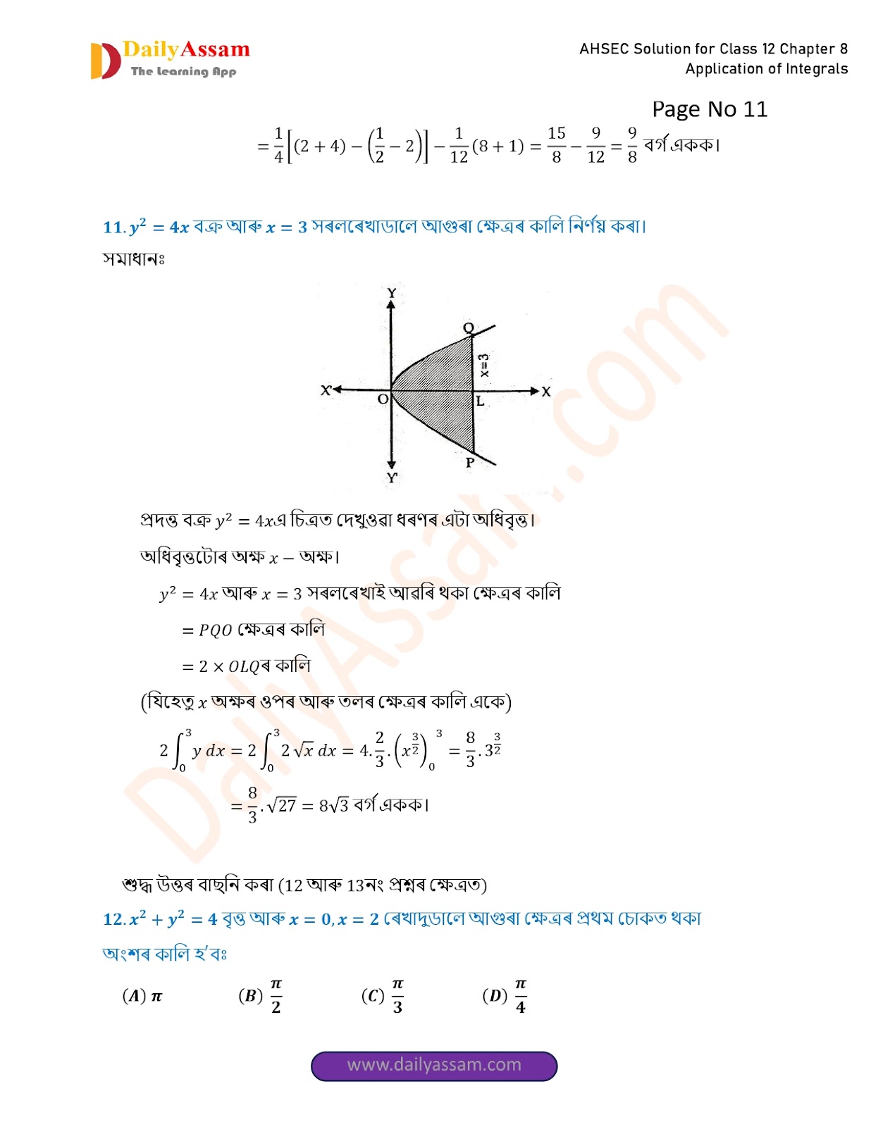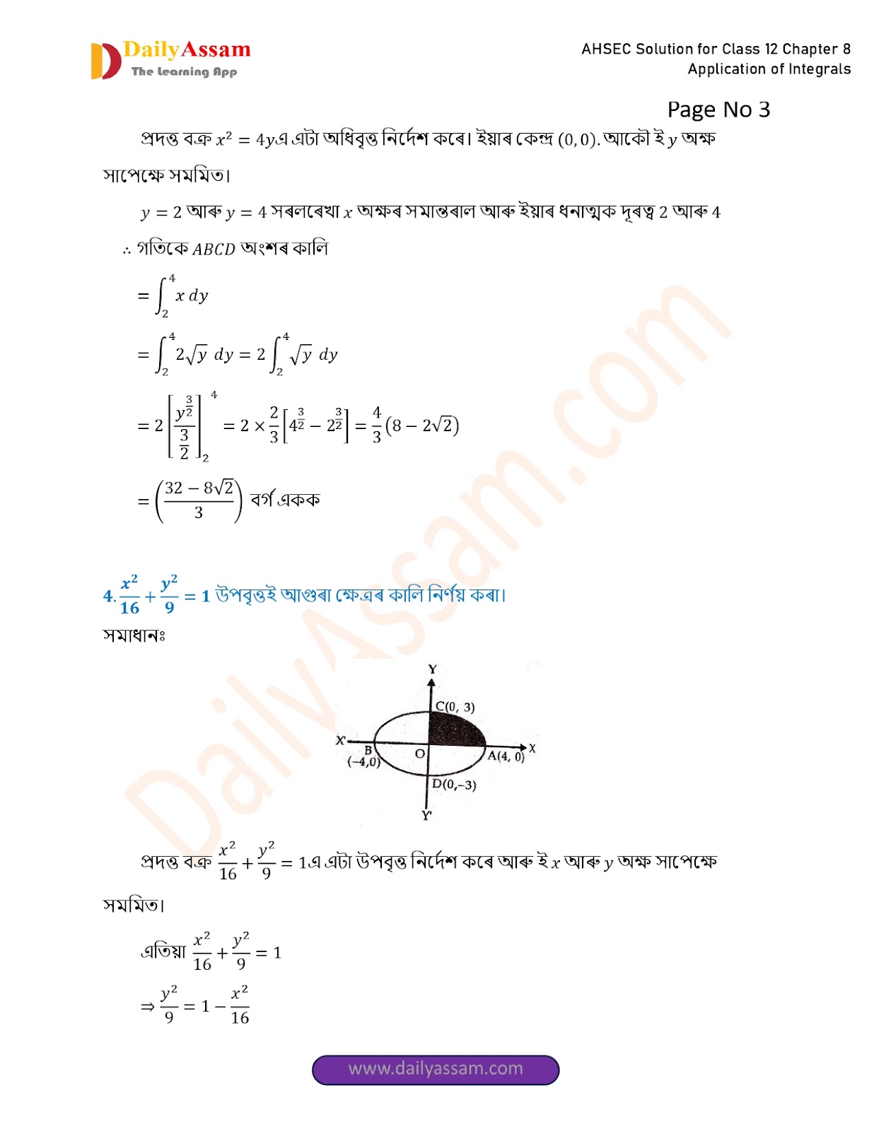 AHSEC Class 12 Mathematics Part 2 Chapter 8 Solution | Assam Board Class 12 Mathematics Part 2 Chapter 8 অনুকলৰ প্ৰয়োগ (Application of Integrals) Answer | 2025 - 2026