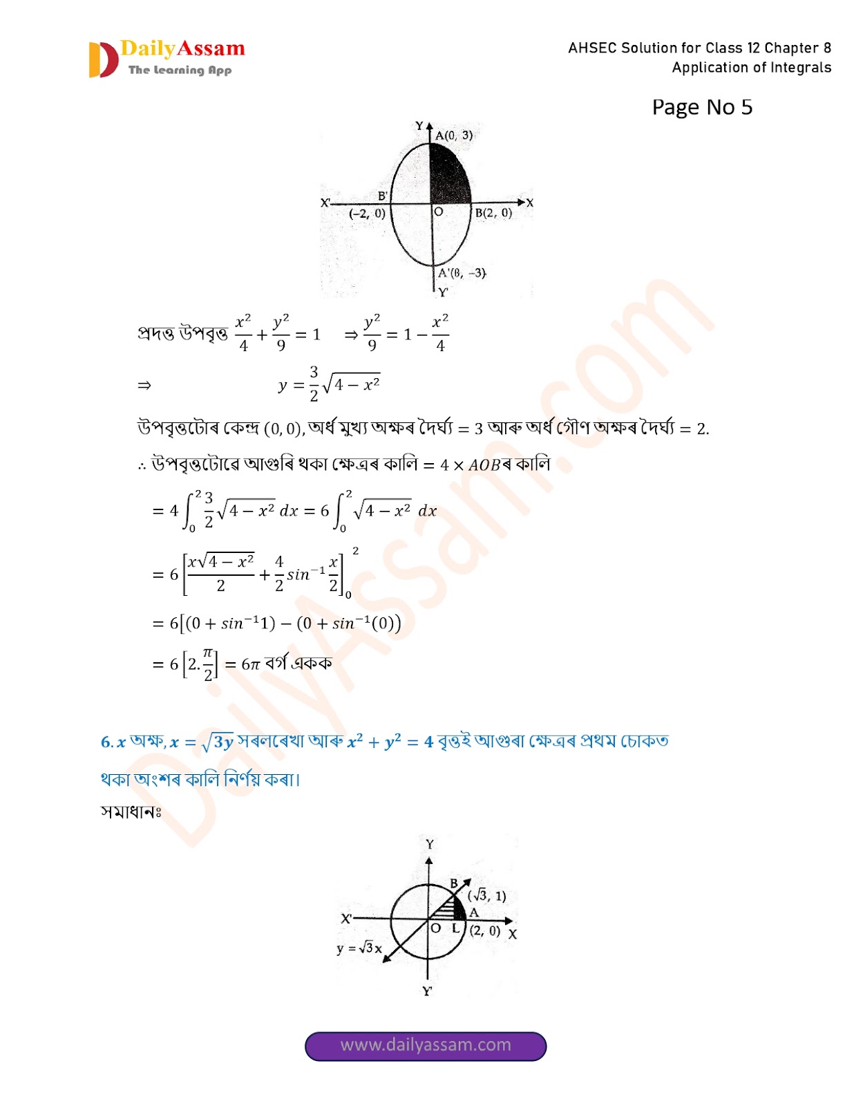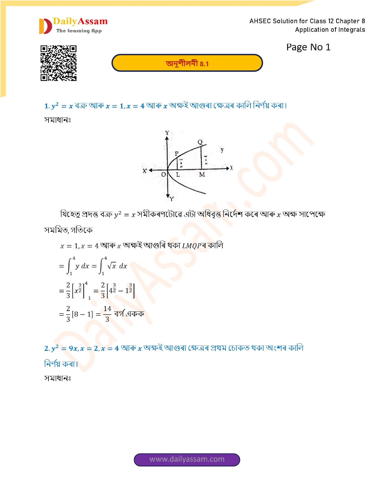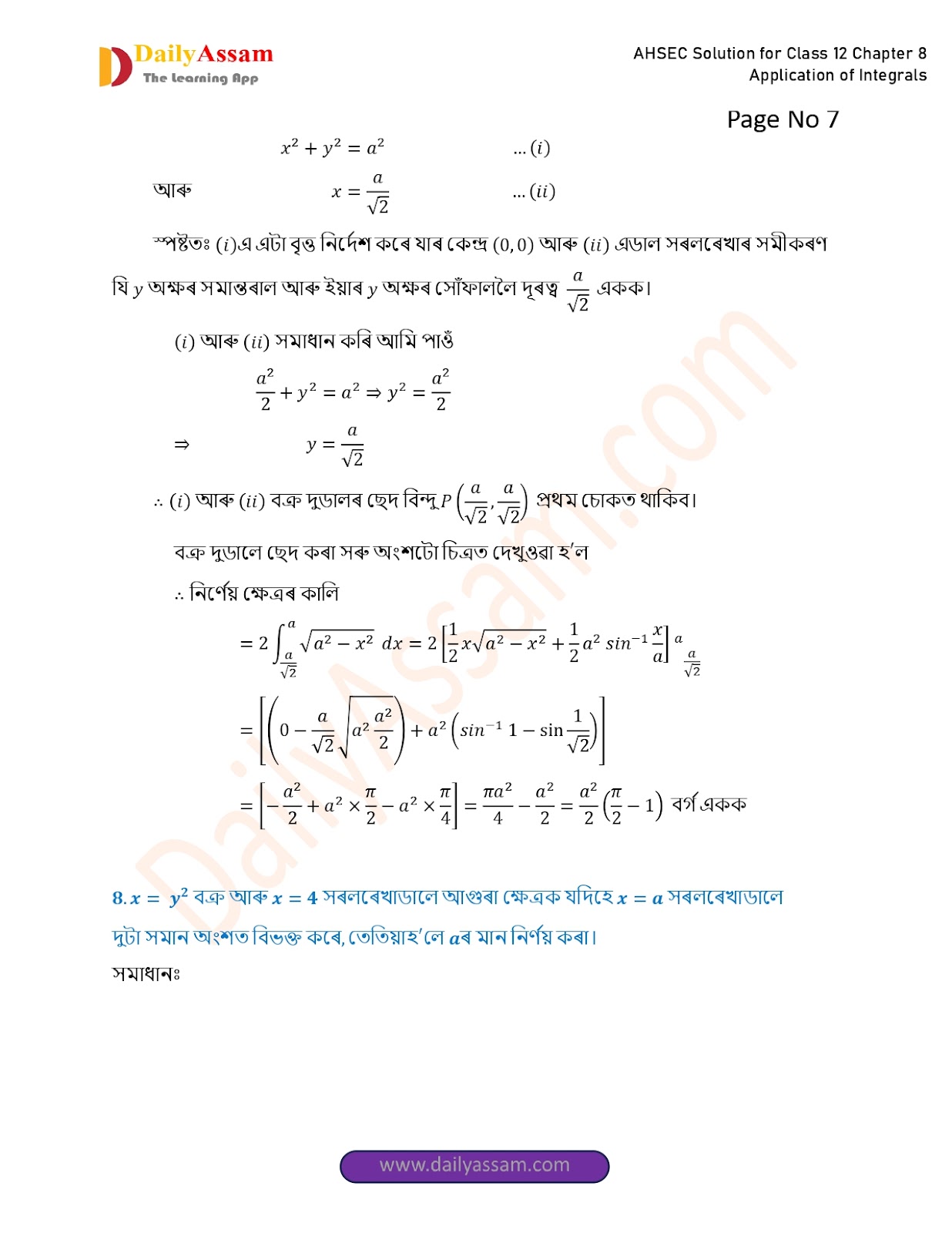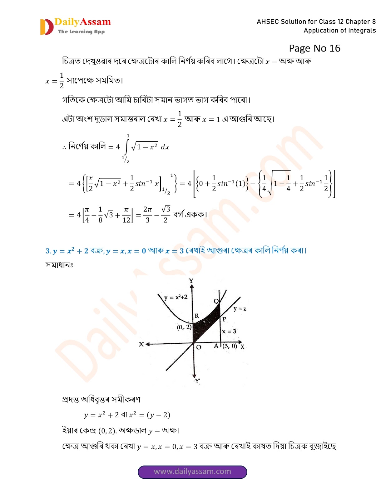 AHSEC Class 12 Mathematics Part 2 Chapter 8 Solution | Assam Board Class 12 Mathematics Part 2 Chapter 8 অনুকলৰ প্ৰয়োগ (Application of Integrals) Answer | 2025 - 2026