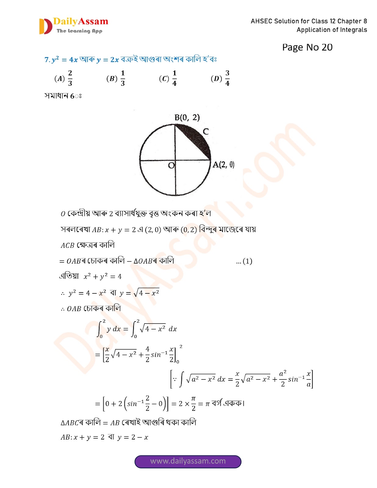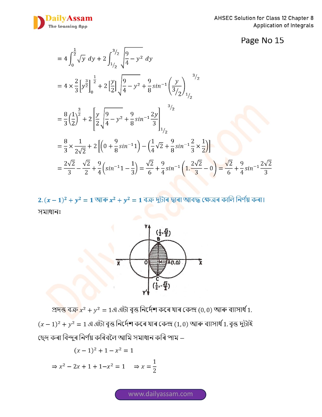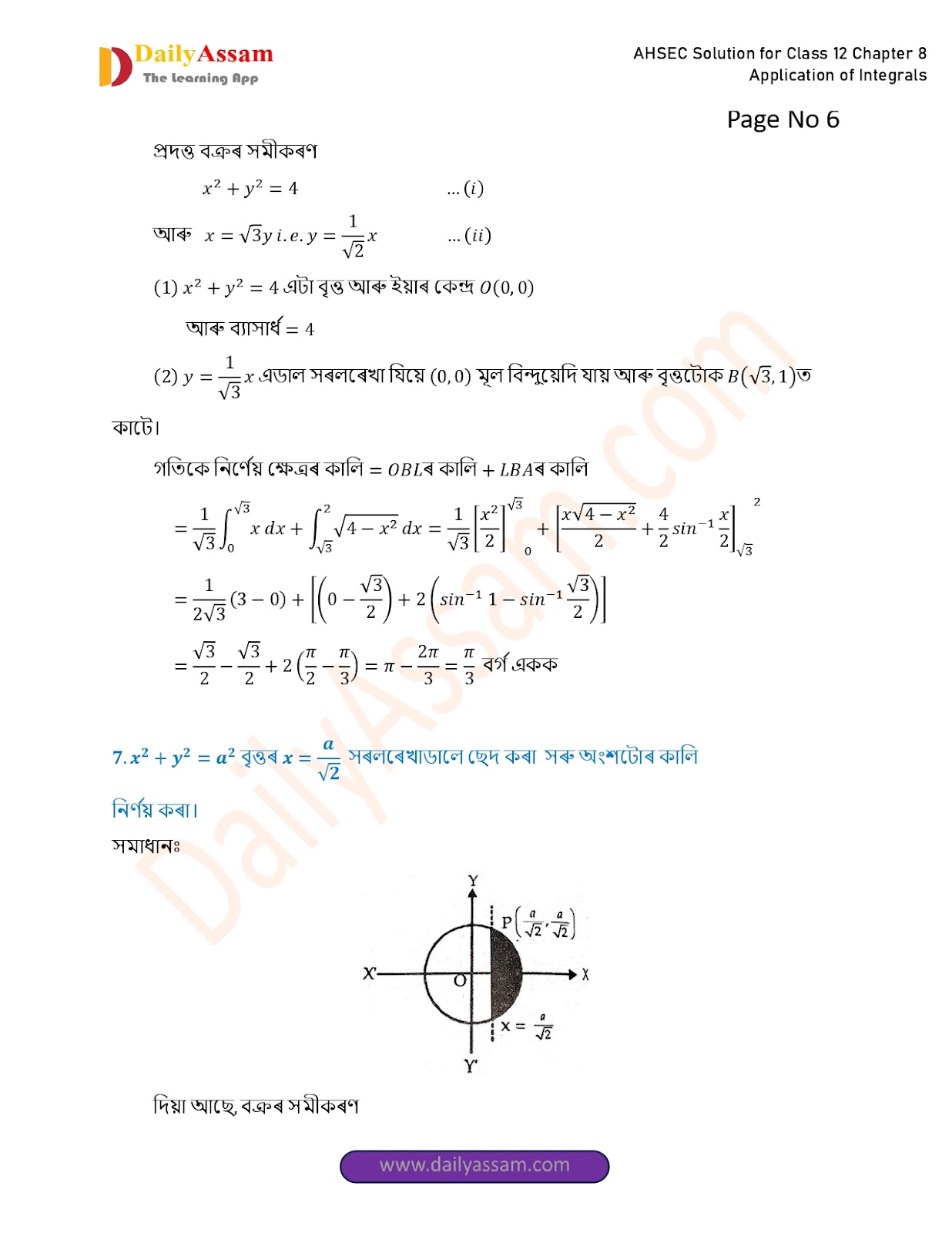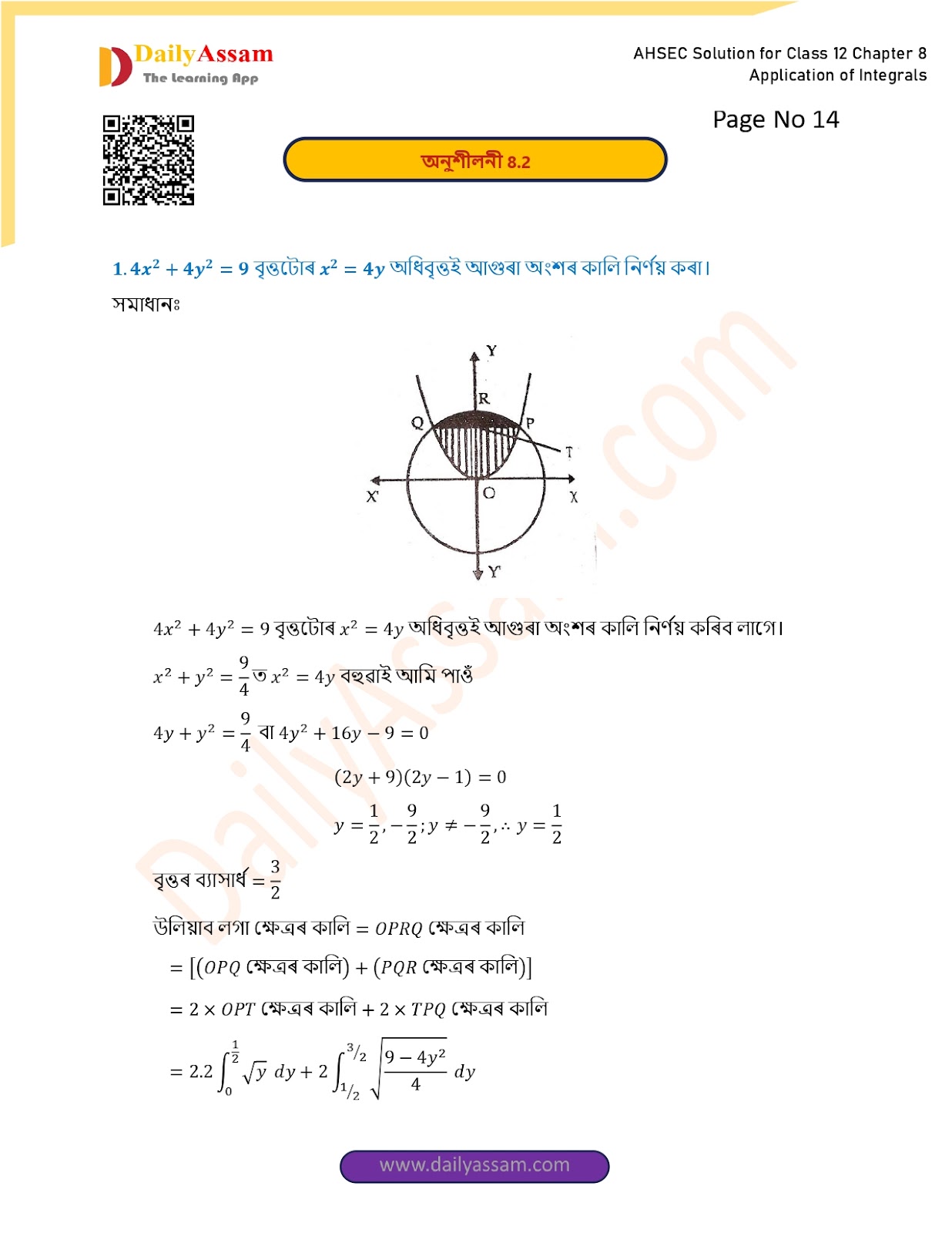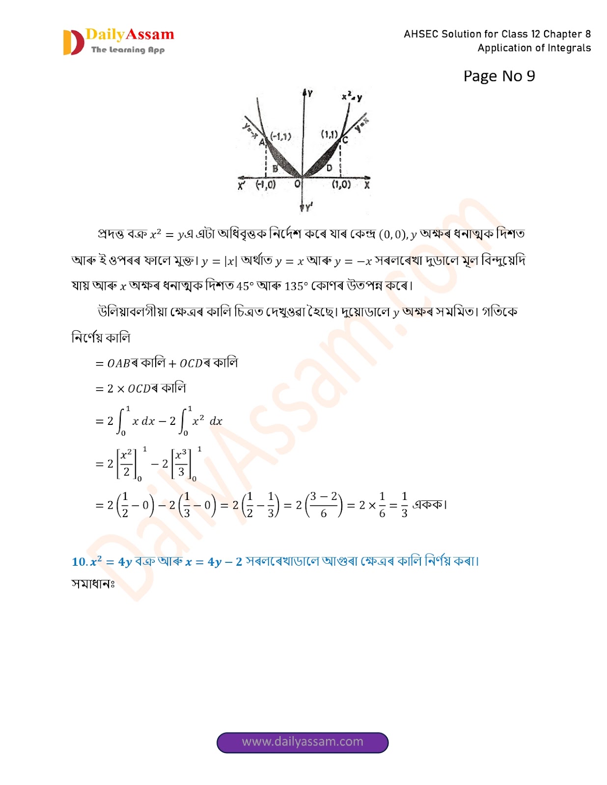 AHSEC Class 12 Mathematics Part 2 Chapter 8 Solution | Assam Board Class 12 Mathematics Part 2 Chapter 8 অনুকলৰ প্ৰয়োগ (Application of Integrals) Answer | 2025 - 2026