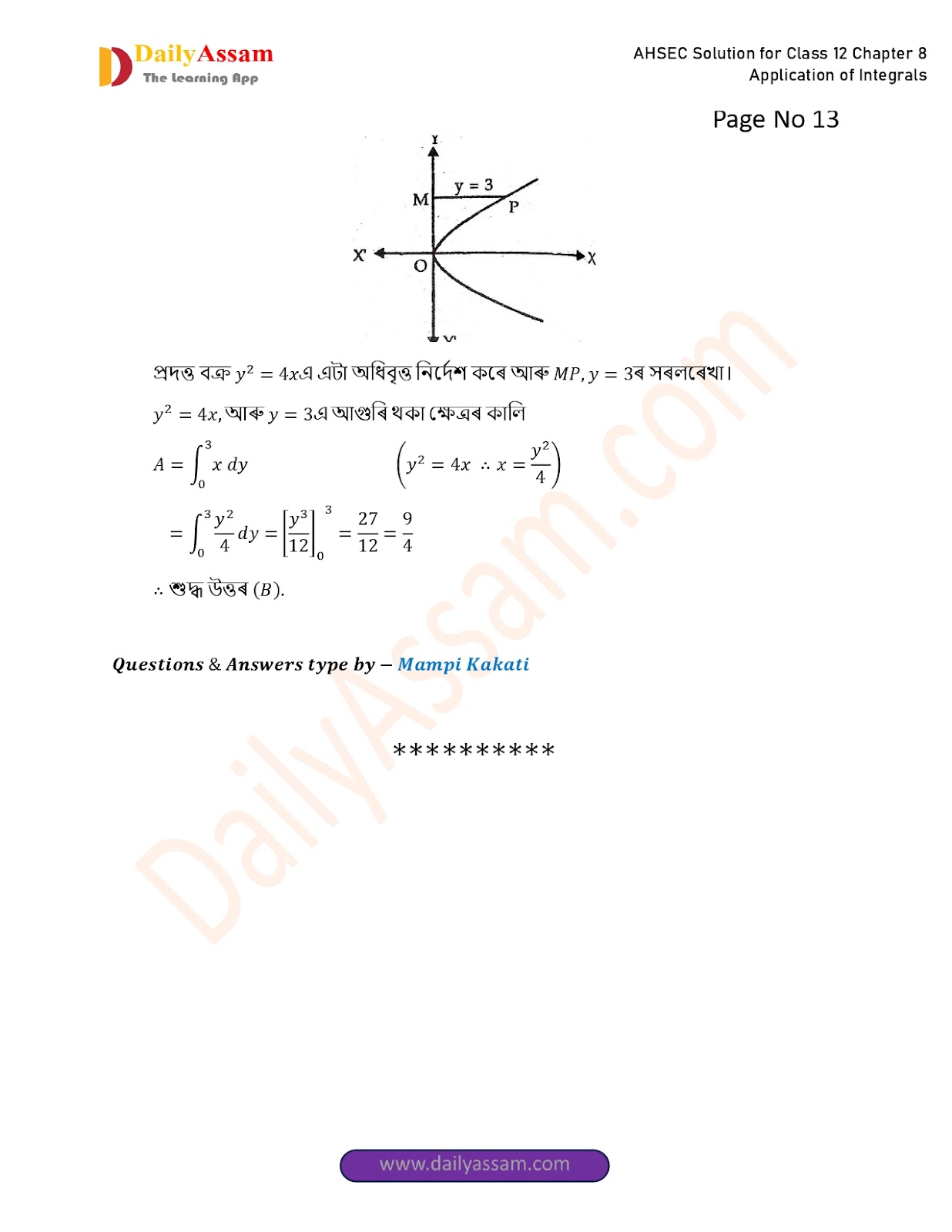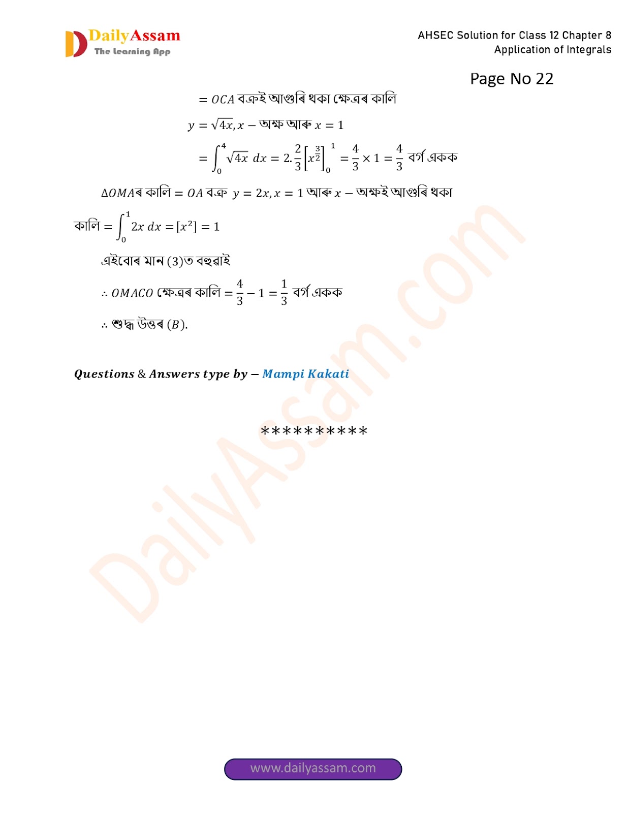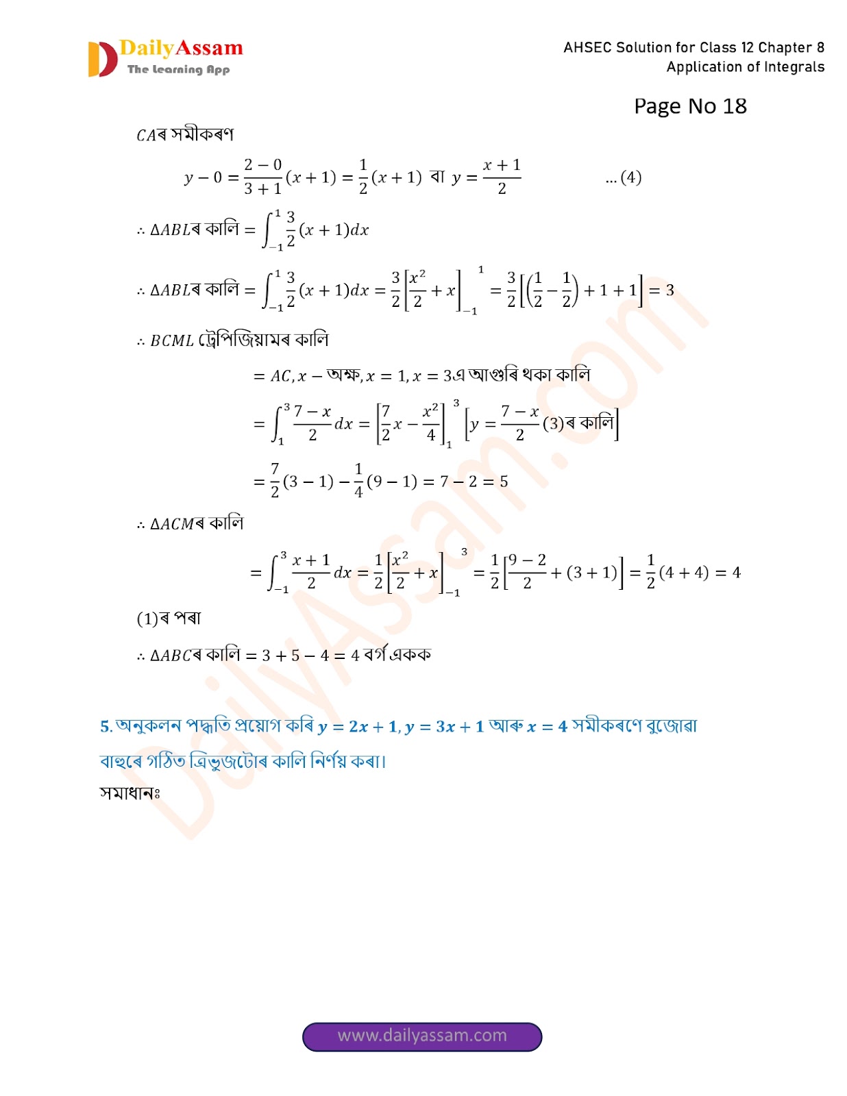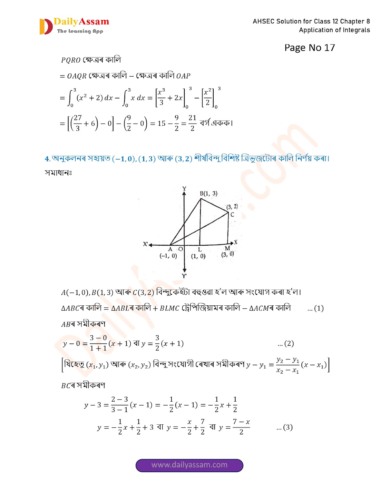 AHSEC Class 12 Mathematics Part 2 Chapter 8 Solution | Assam Board Class 12 Mathematics Part 2 Chapter 8 অনুকলৰ প্ৰয়োগ (Application of Integrals) Answer | 2025 - 2026