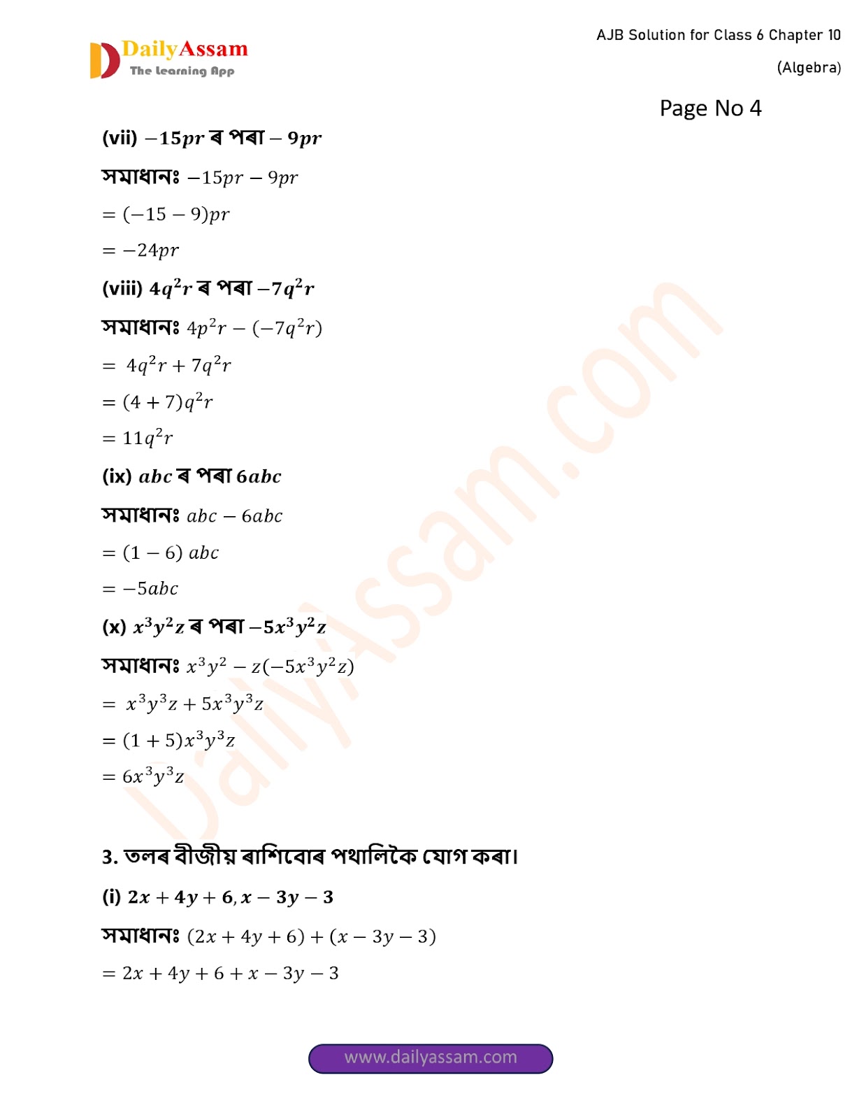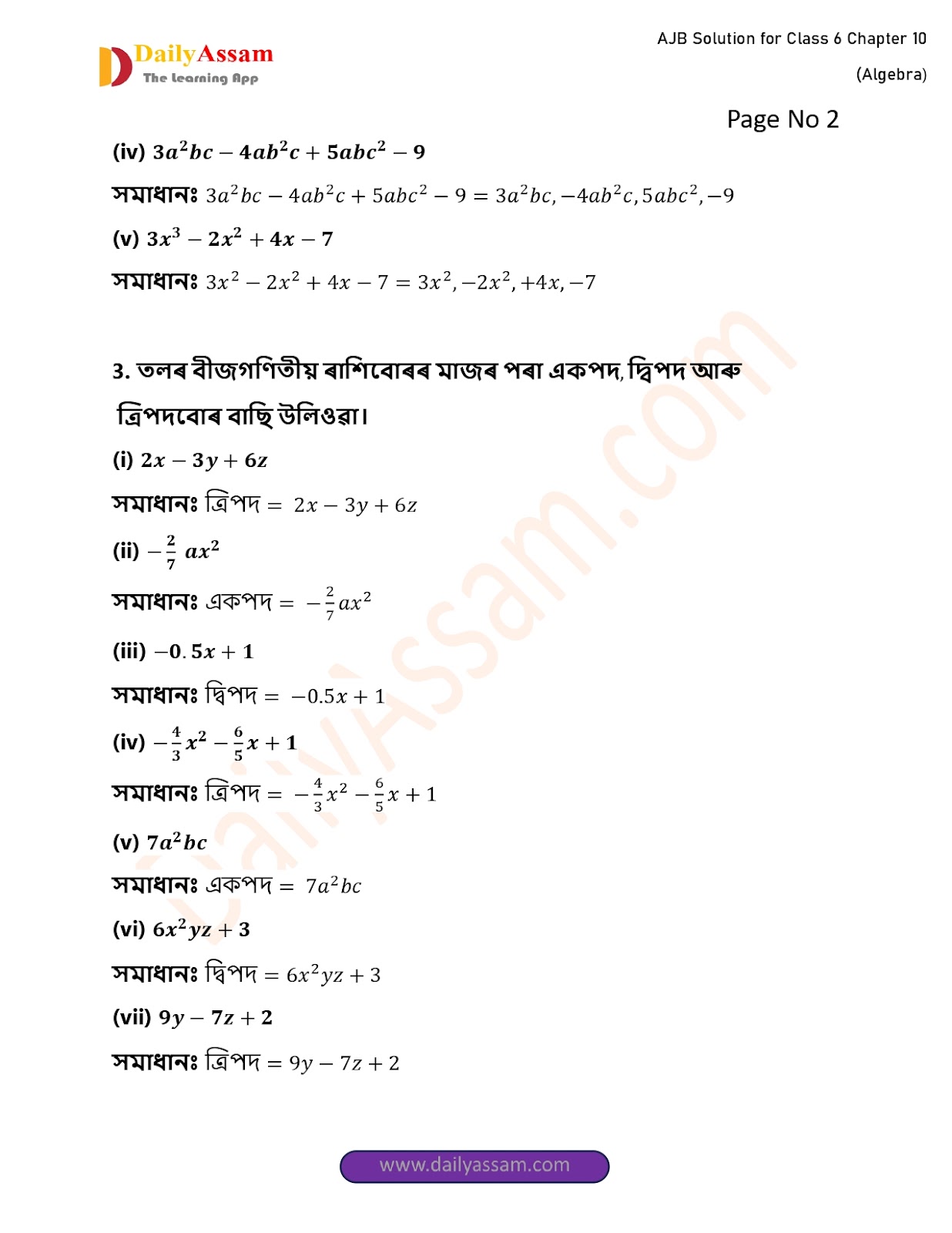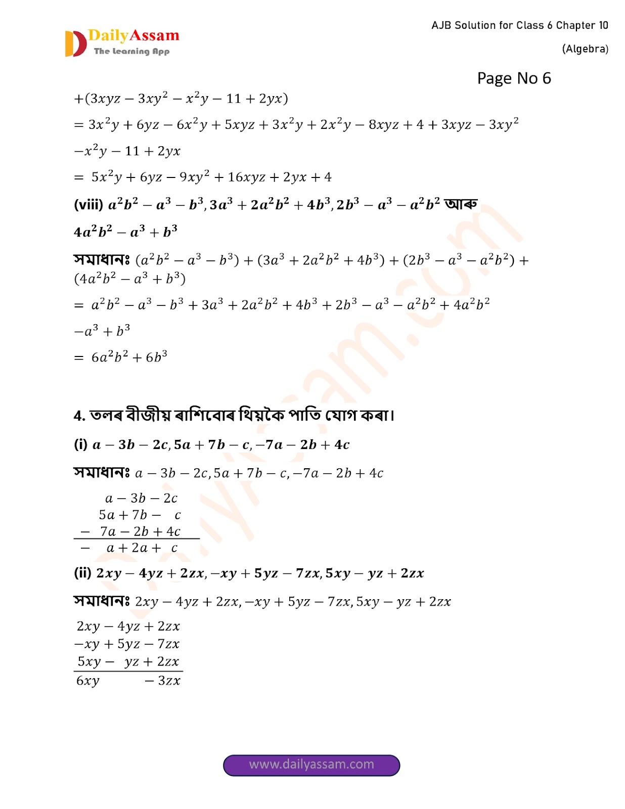 HomeClass 6 Mathematic (AJB) 193AJB Class 6 Mathematics Chapter 10 Solution | Assam Jatiya Bidyalay Class 6 Mathematics Chapter 10 বীজগণিত (Algebra) Answer | 2025 - 2026
