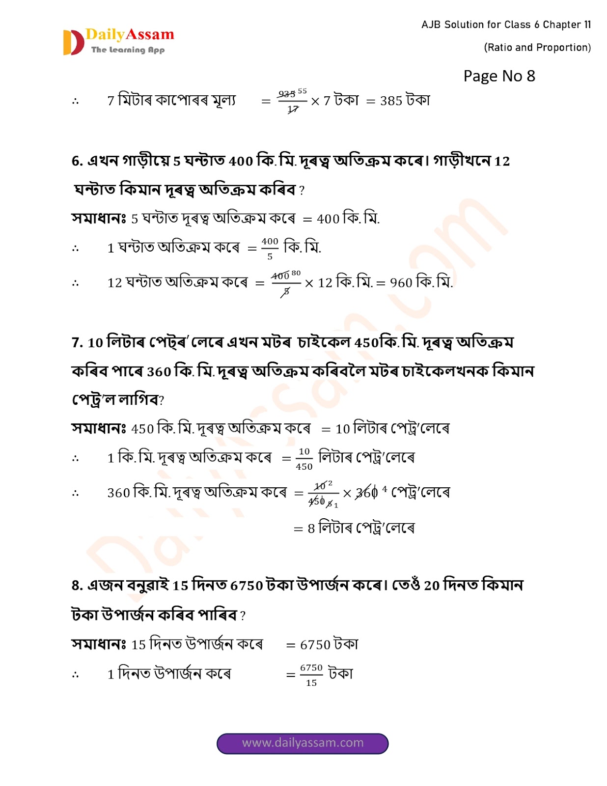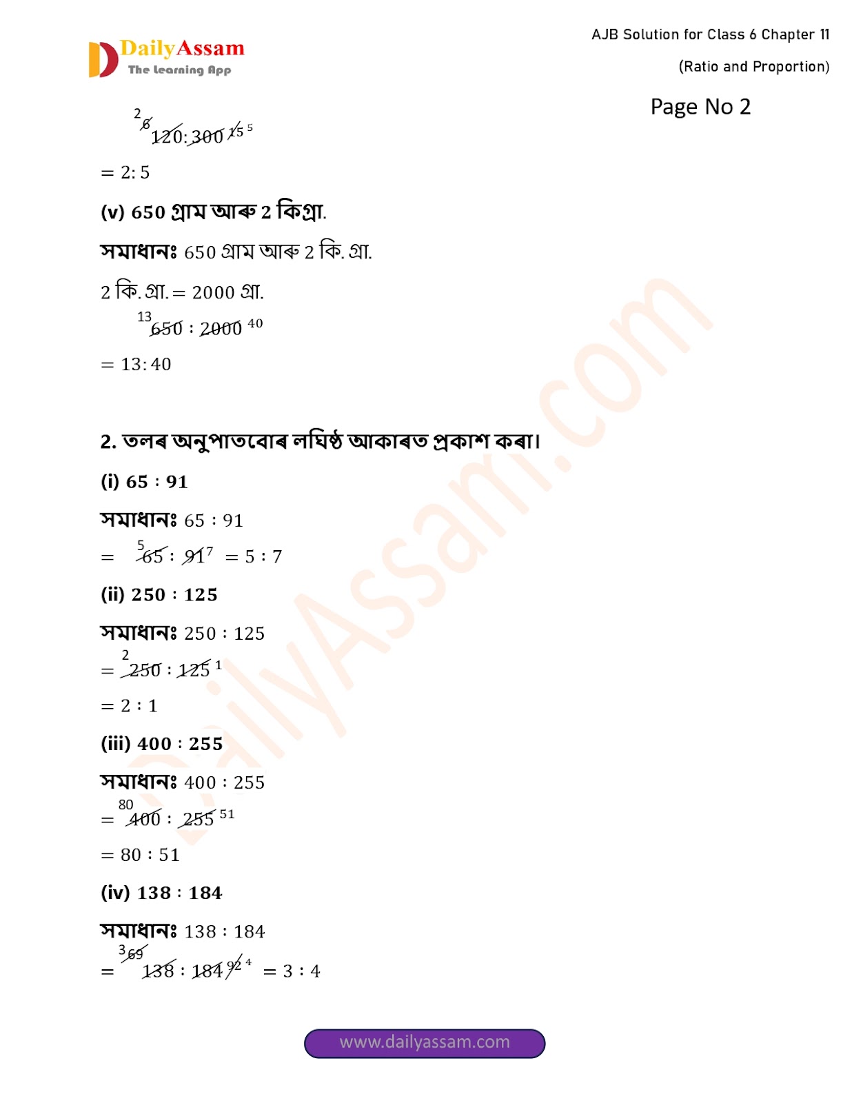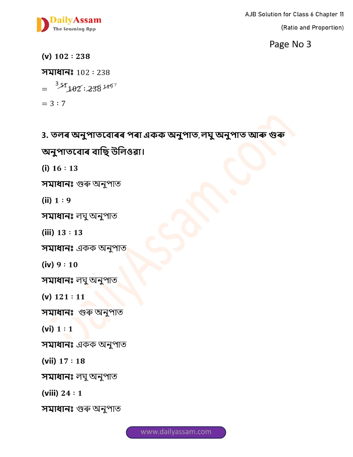 AJB Class 6 Mathematics Chapter 11 Solution | Assam Jatiya Bidyalay Class 6 Mathematics Chapter 11 অনুপাত আৰু সমানুপাত (Ratio and Proportion) Answer | 2025 - 2026
