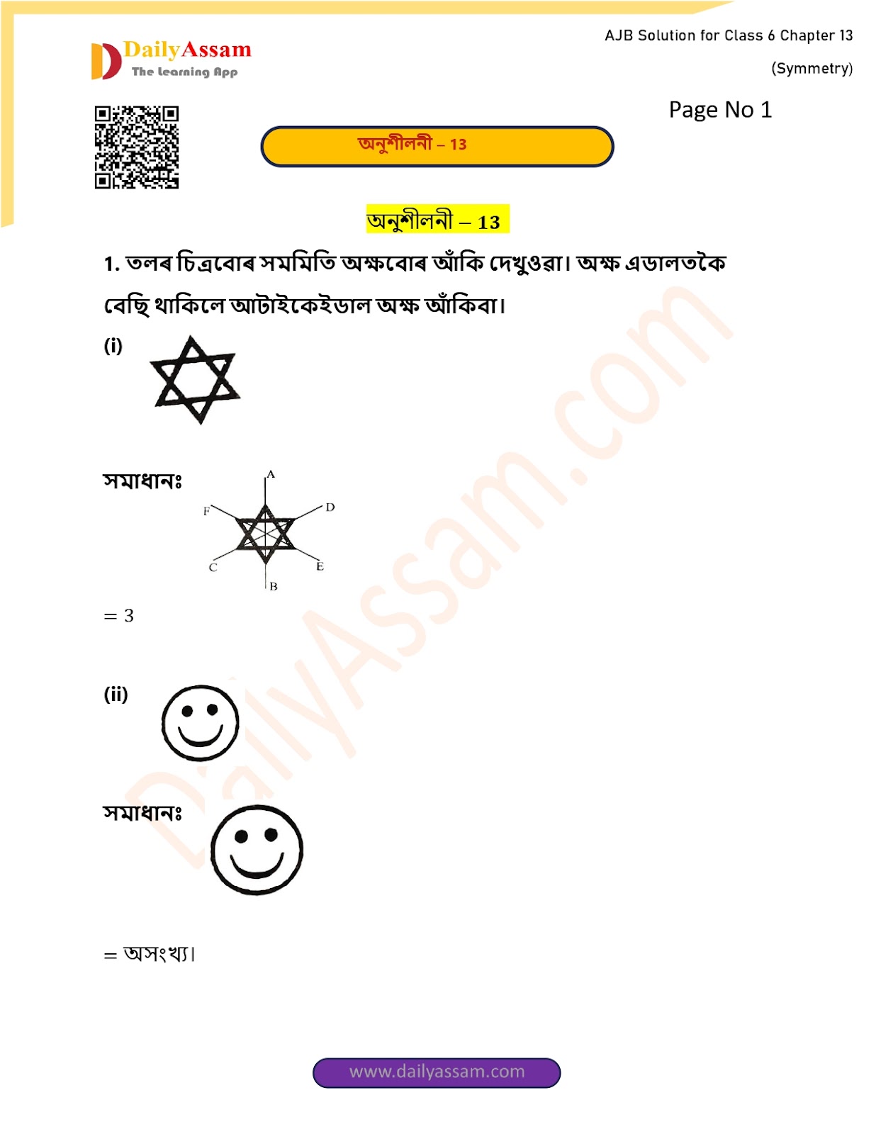 AJB Class 6 Mathematics Chapter 13 Solution | Assam Jatiya Bidyalay Class 6 Mathematics Chapter 13 সমমিতি (Symmetry) Answer | 2025 - 2026
