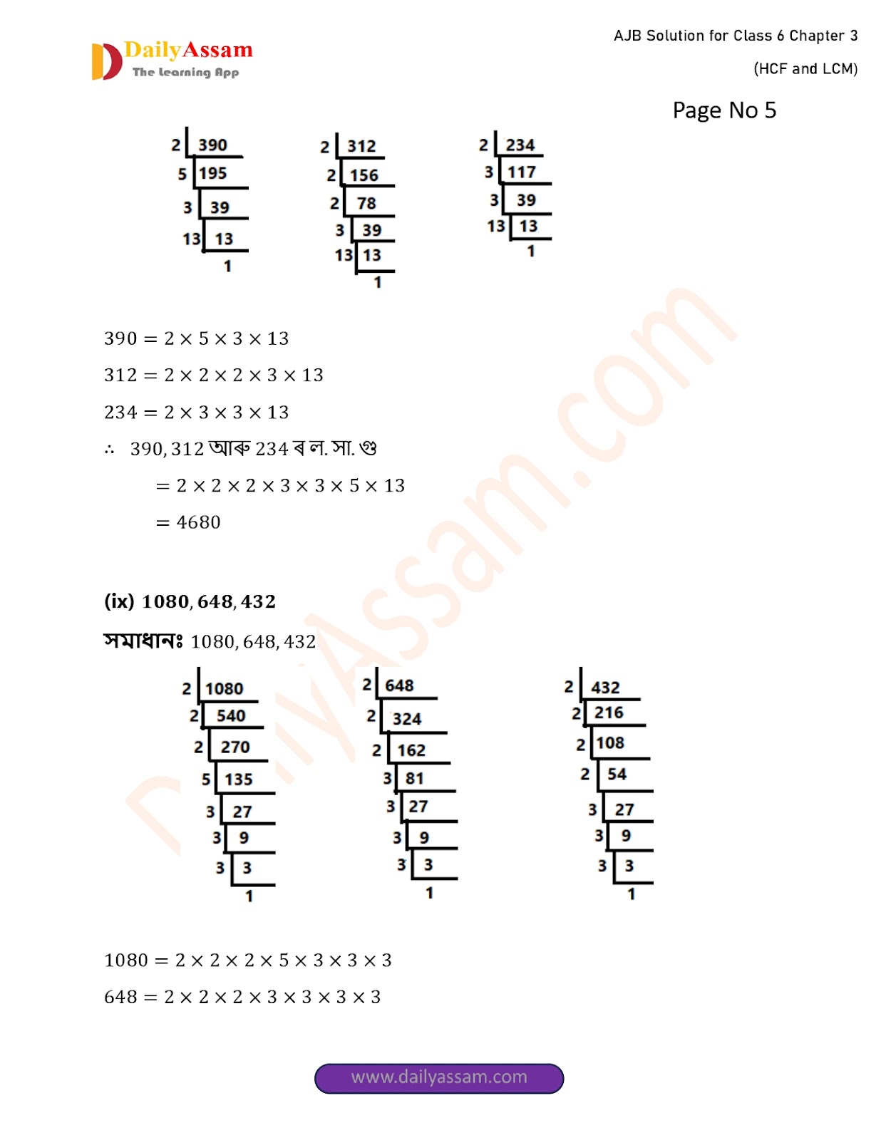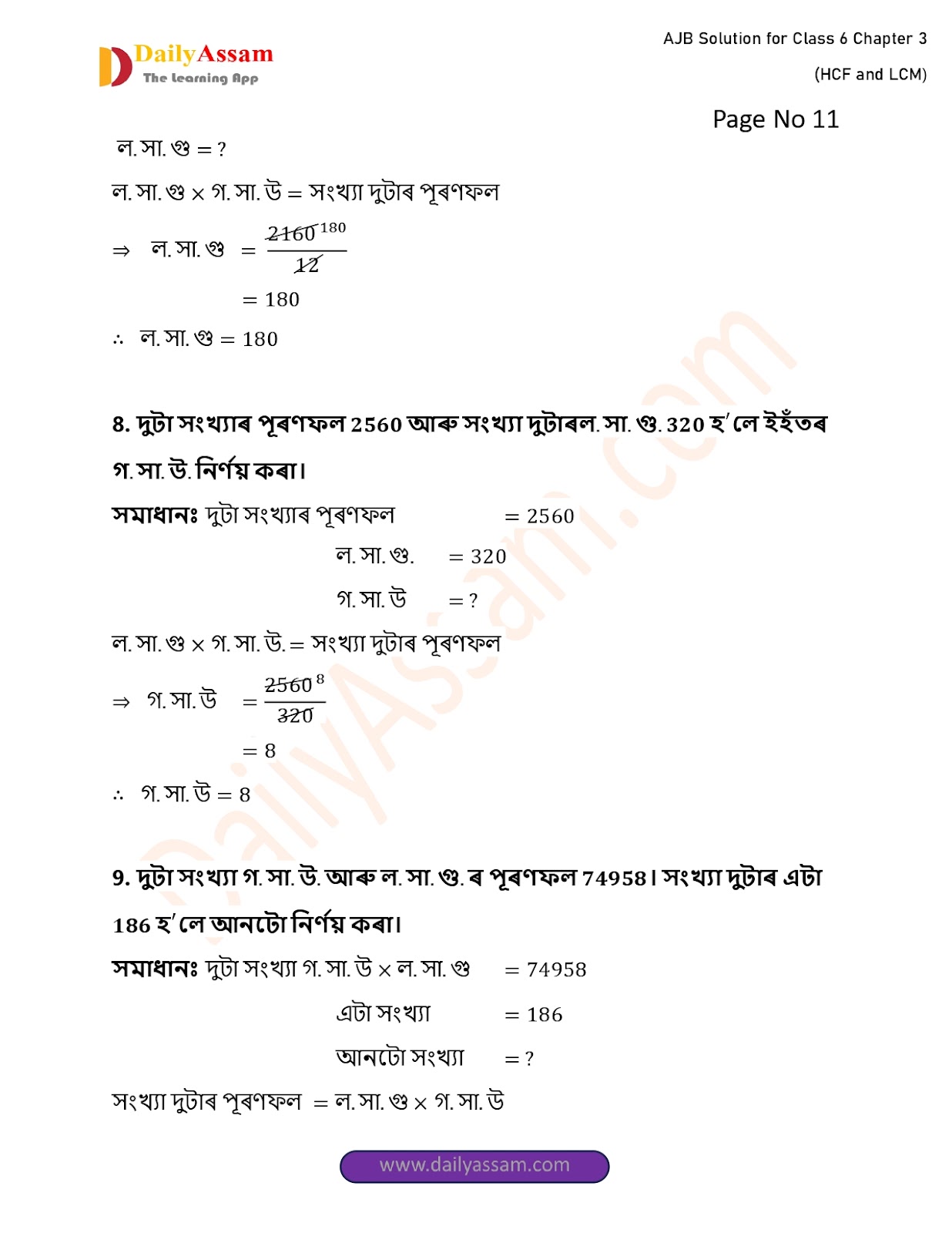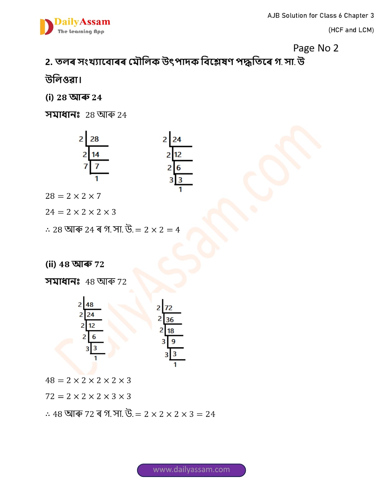 AJB Class 6 Mathematics Chapter 3 Solution | Assam Jatiya Bidyalay Class 6 Mathematics Chapter 3 গ.সা.উ আৰু ল.সা.গু (HCF and LCM) Answer | 2025 - 2026