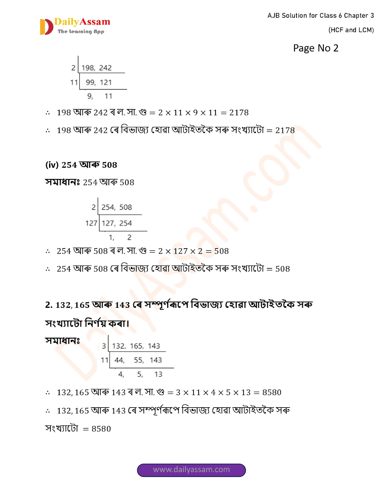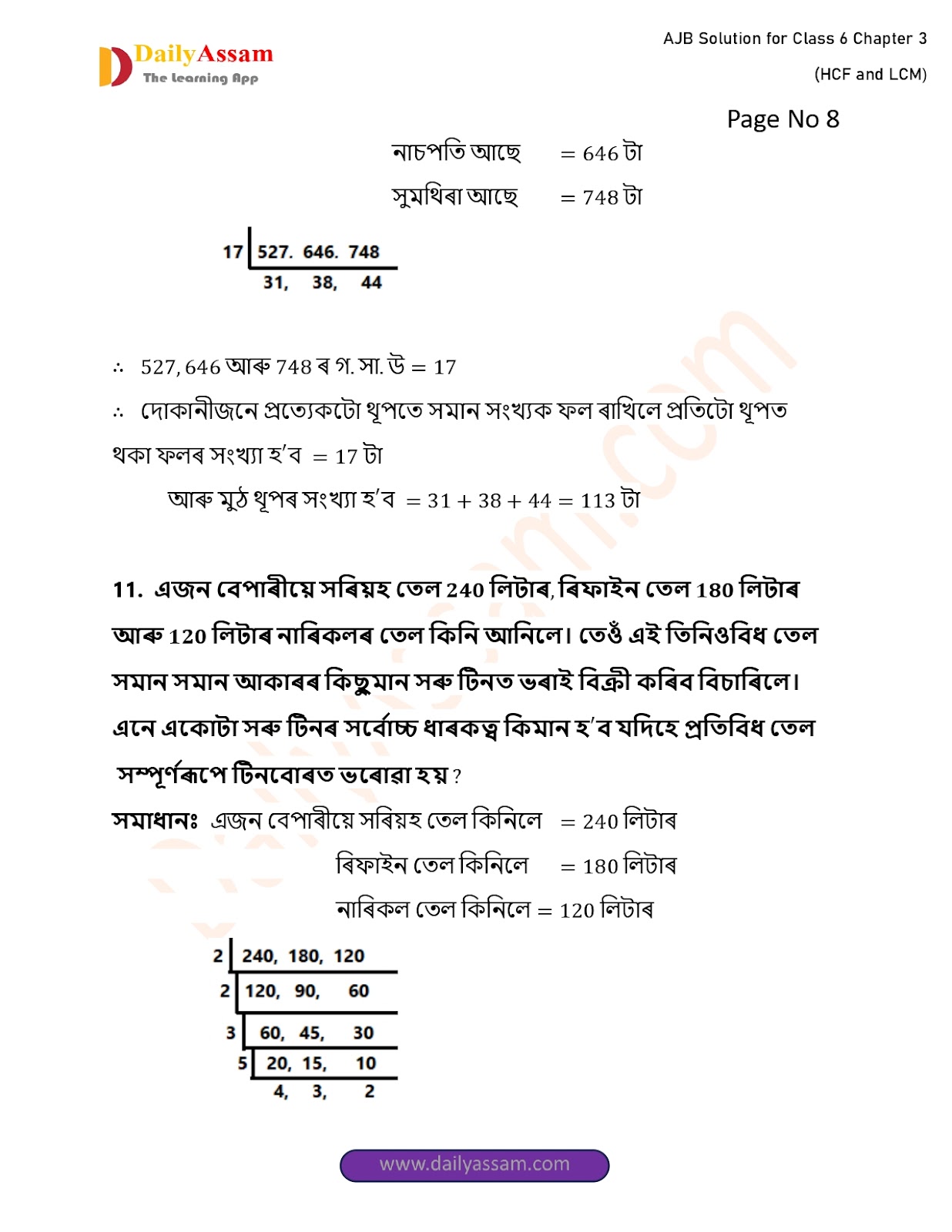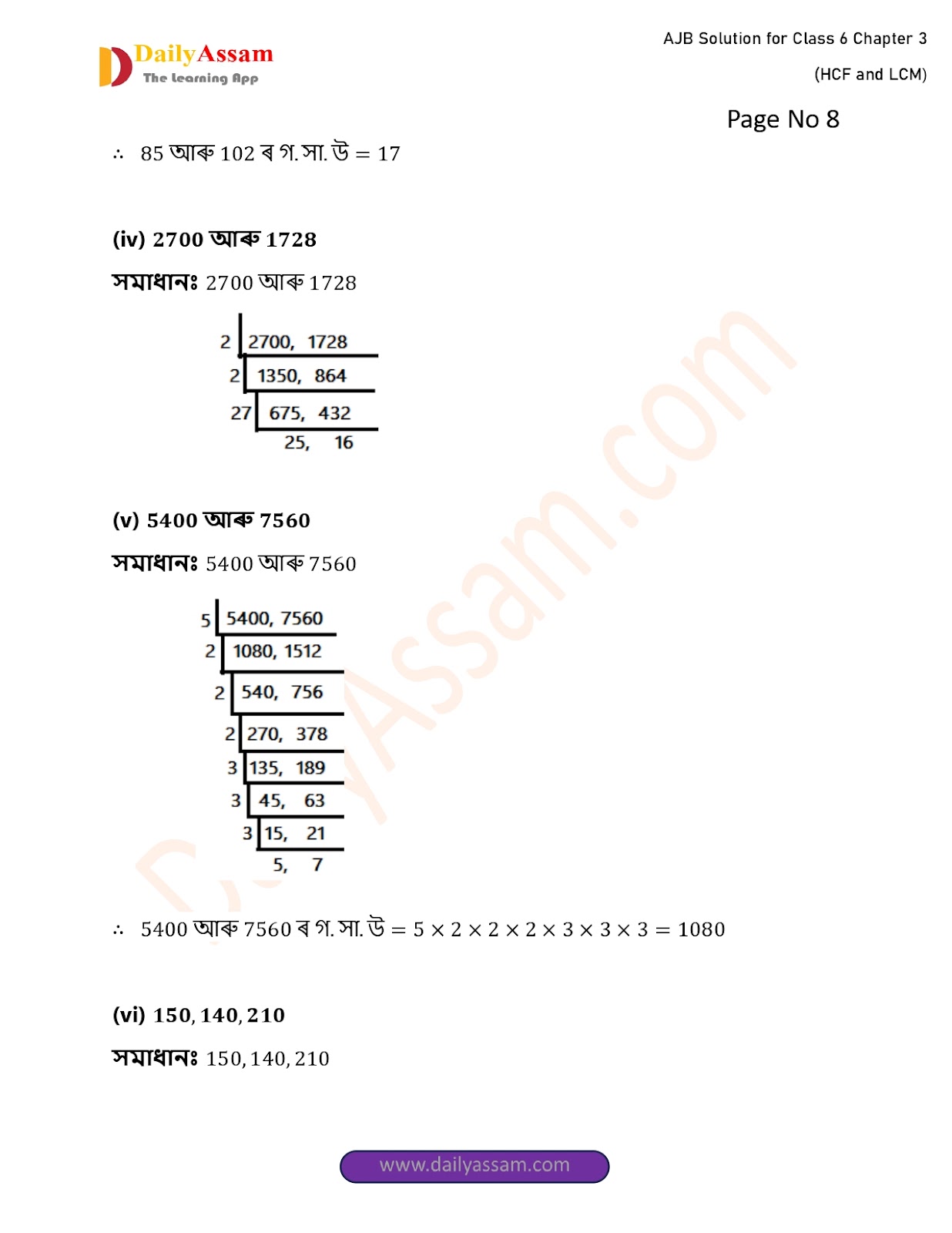 AJB Class 6 Mathematics Chapter 3 Solution | Assam Jatiya Bidyalay Class 6 Mathematics Chapter 3 গ.সা.উ আৰু ল.সা.গু (HCF and LCM) Answer | 2025 - 2026