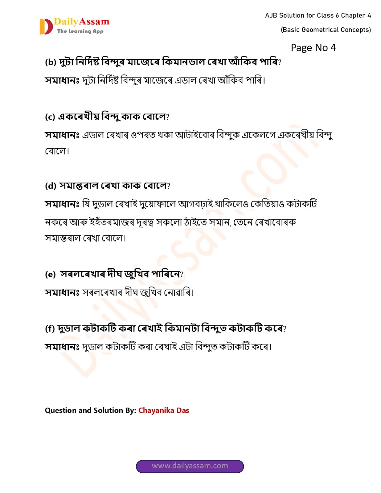 AJB Class 6 Mathematics Chapter 4 Solution | Assam Jatiya Bidyalay Class 6 Mathematics Chapter 4 জ্যামিতিৰ প্ৰাথমিক ধাৰণাসমূহ (Basic Geomentrical Concepts) Answer | 2025 - 2026
