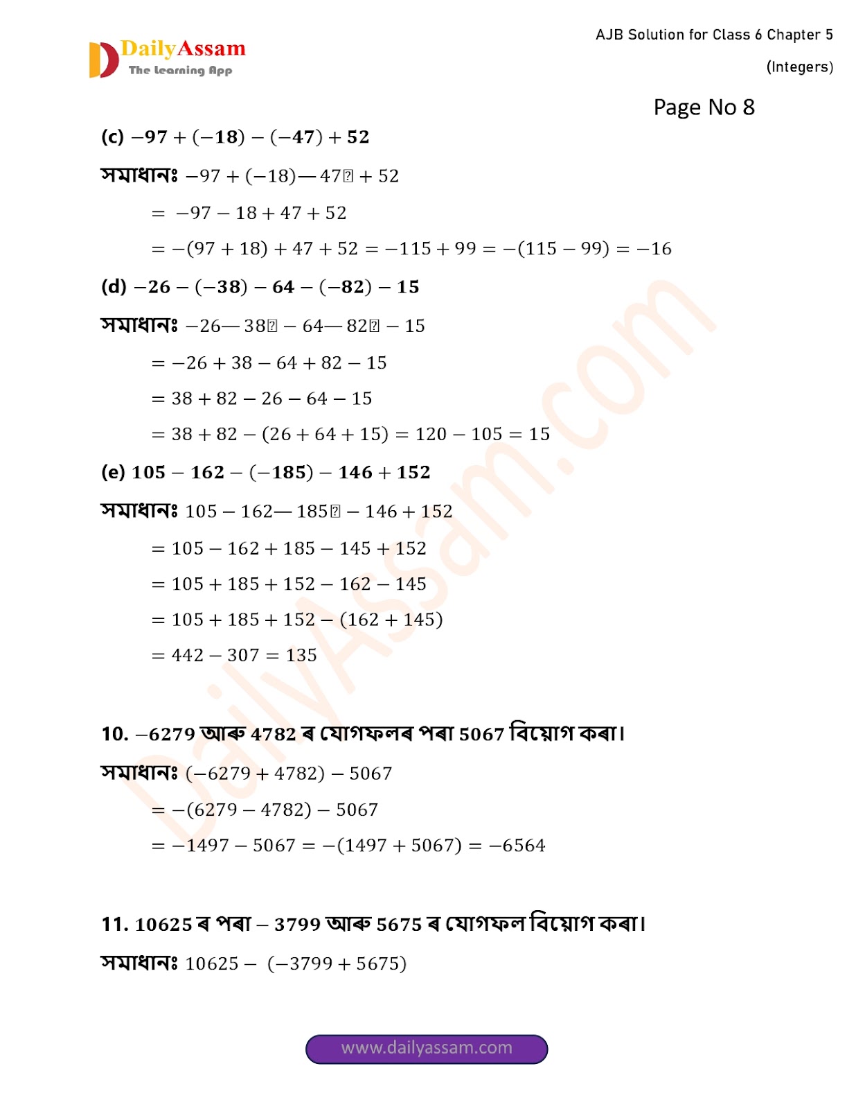 AJB Class 6 Mathematics Chapter 5 Solution | Assam Jatiya Bidyalay Class 6 Mathematics Chapter 5 অখণ্ড সংখ্যা (Integer) Answer | 2025 - 2026