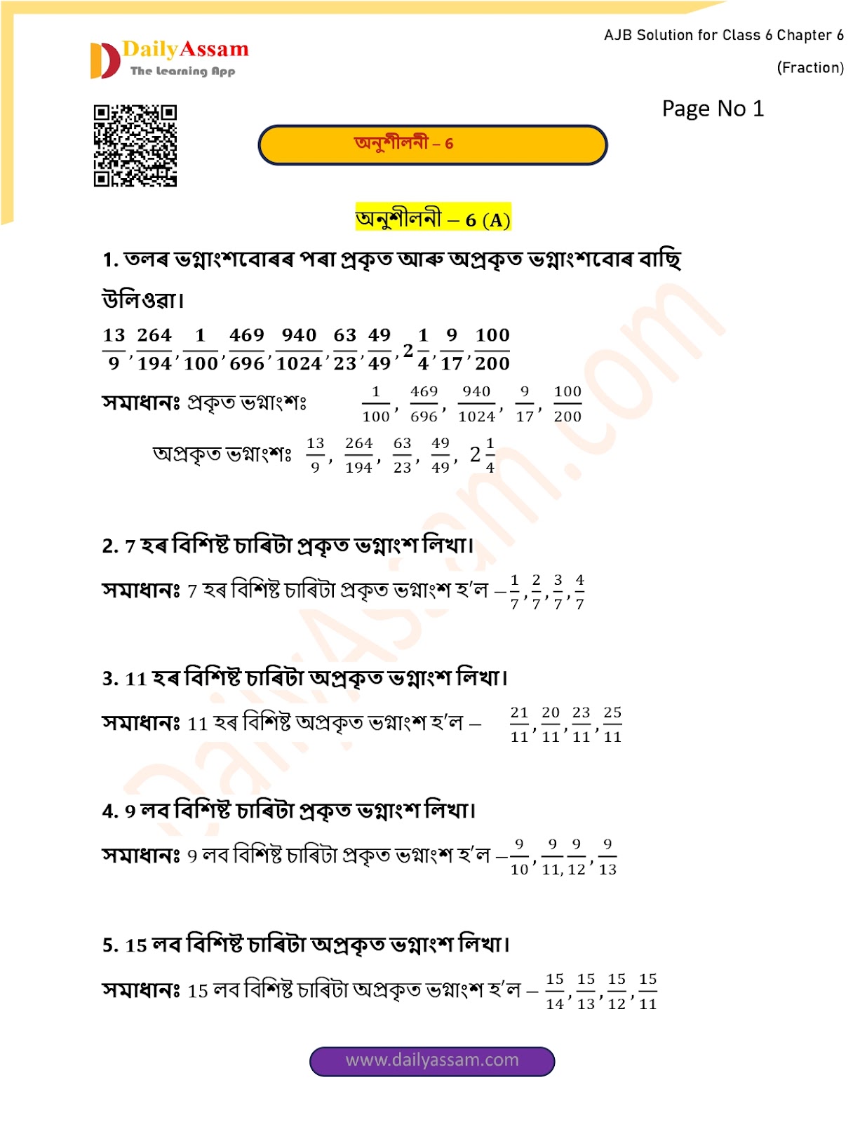 HomeClass 6 Mathematic (AJB) 193AJB Class 6 Mathematics Chapter 6 Solution | Assam Jatiya Bidyalay Class 6 Mathematics Chapter 6 ভগ্নাংশ (Fraction) Answer | 2025 - 2026