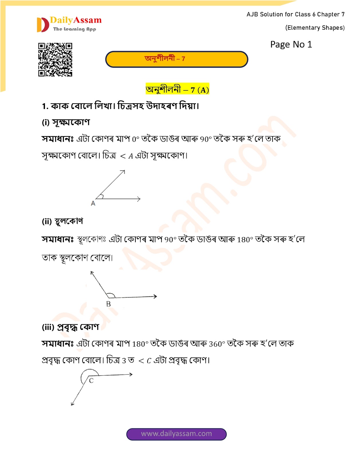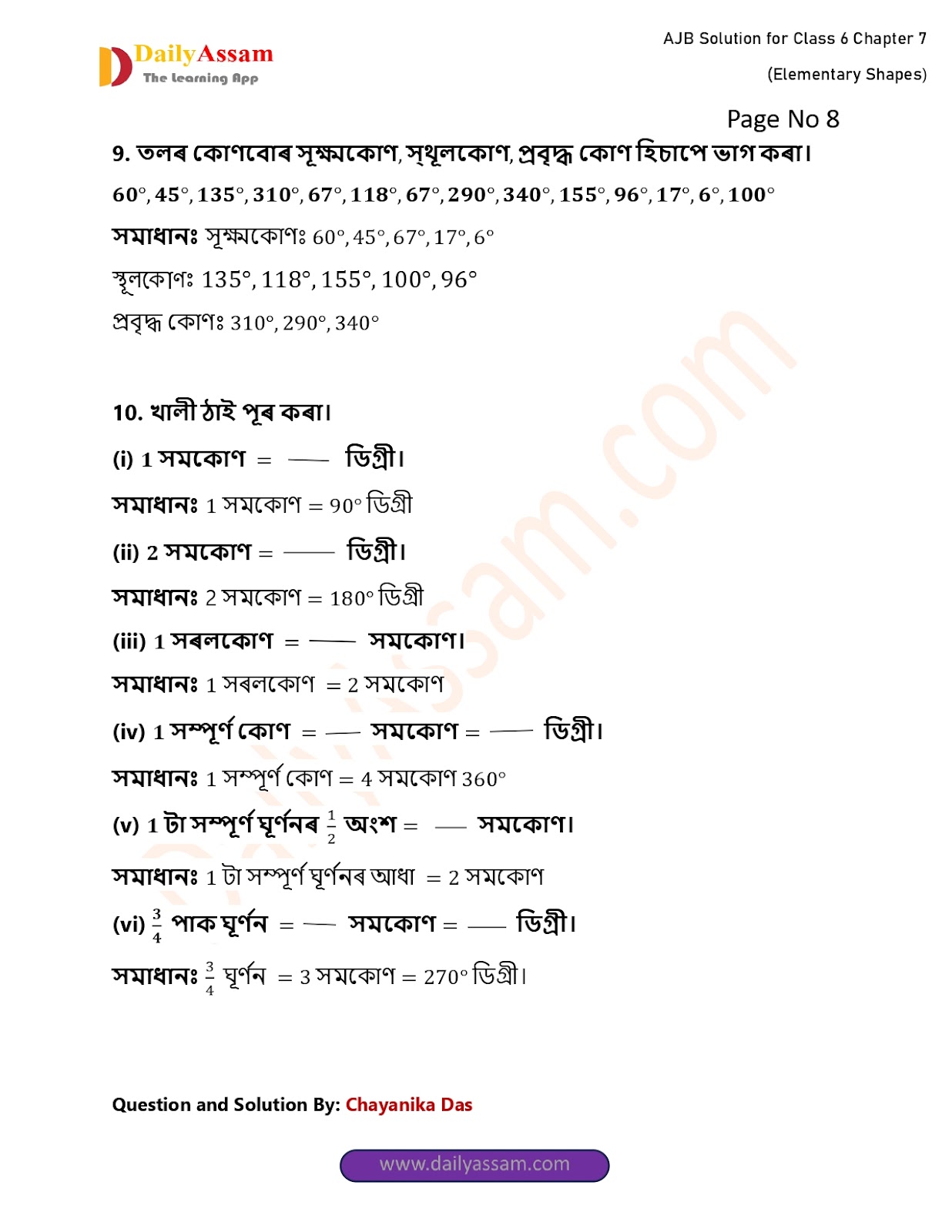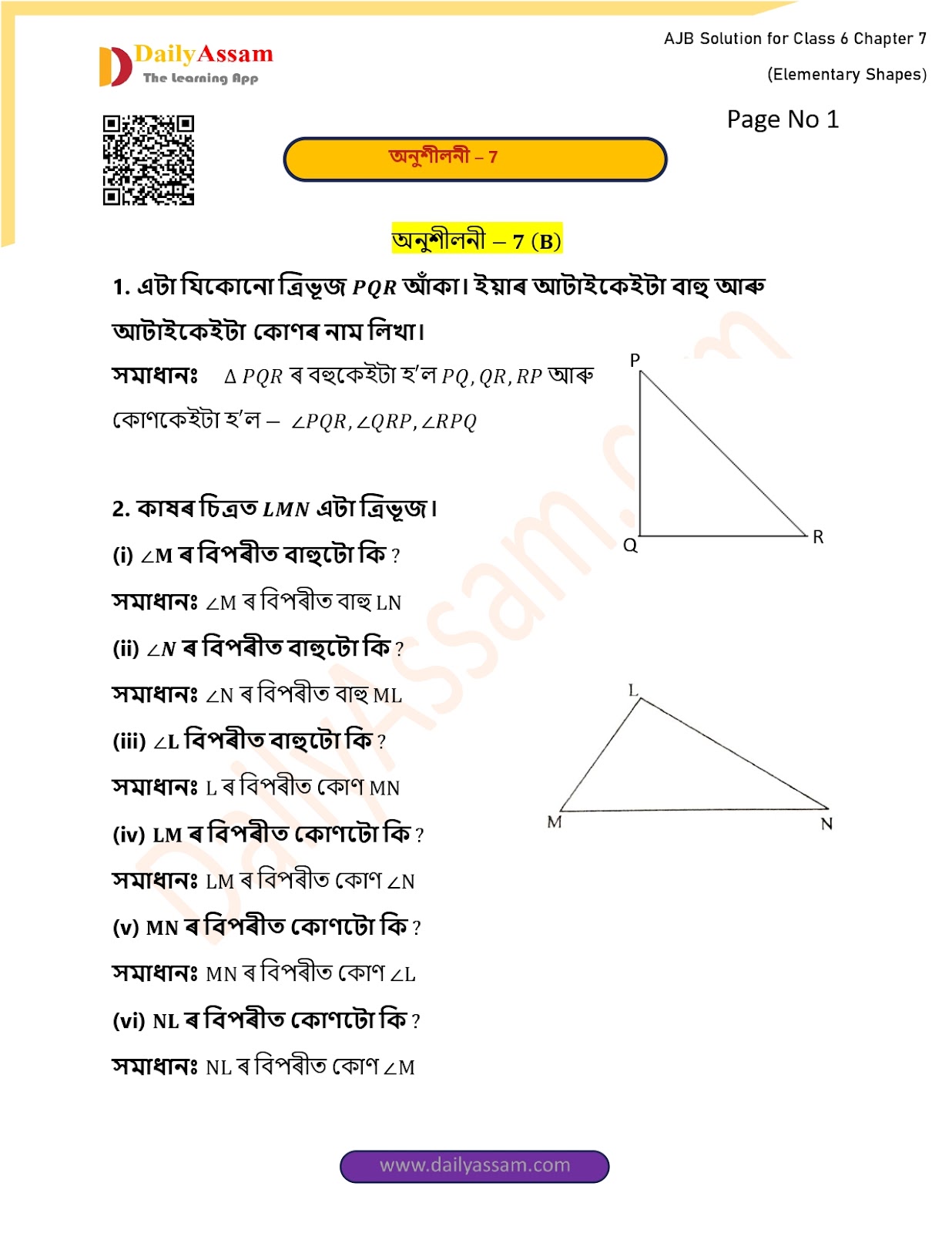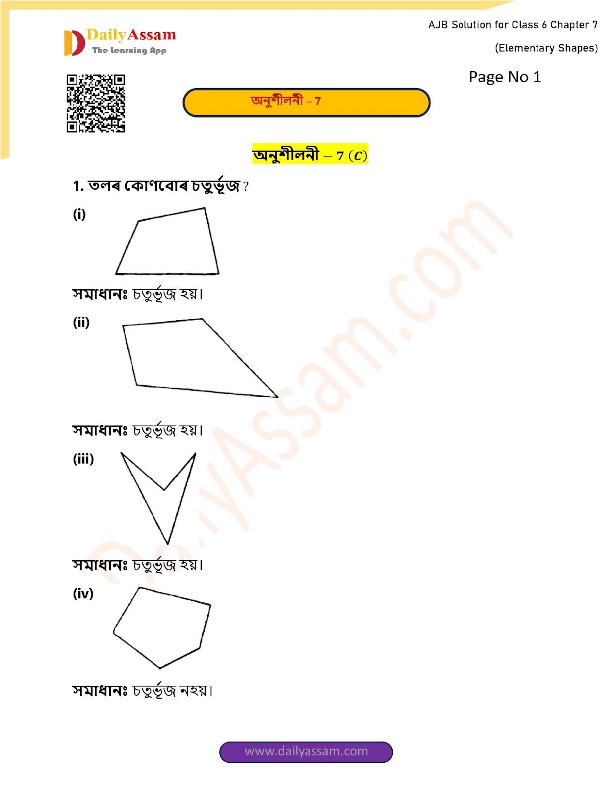 AJB Class 6 Mathematics Chapter 7 Solution | Assam Jatiya Bidyalay Class 6 Mathematics Chapter 7 প্ৰাথমিক আকৃতিসমূহ (Elementary Shapes) Answer | 2025 - 2026