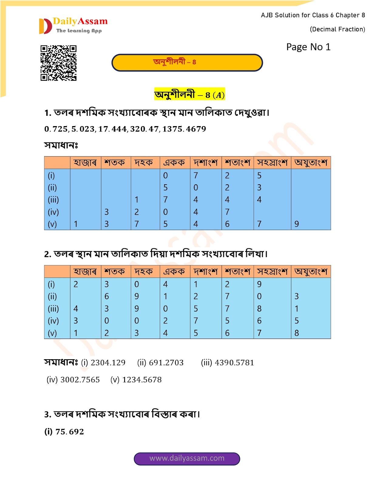 HomeClass 6 Mathematic (AJB) 193AJB Class 6 Mathematics Chapter 8 Solution | Assam Jatiya Bidyalay Class 6 Mathematics Chapter 8 দশমিক ভগ্নাংশ (Decimal Fraction) Answer | 2025 - 2026