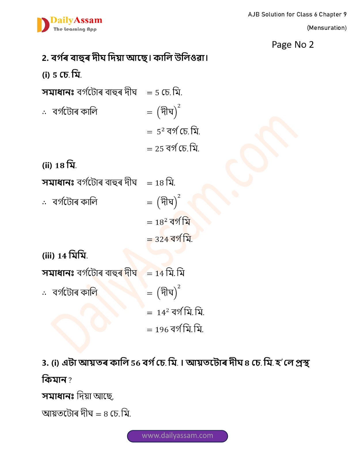 HomeClass 6 Mathematic (AJB) 193AJB Class 6 Mathematics Chapter 9 Solution | Assam Jatiya Bidyalay Class 6 Mathematics Chapter 9 পৰিমিতি (Mensuration) Answer | 2025 - 2026
