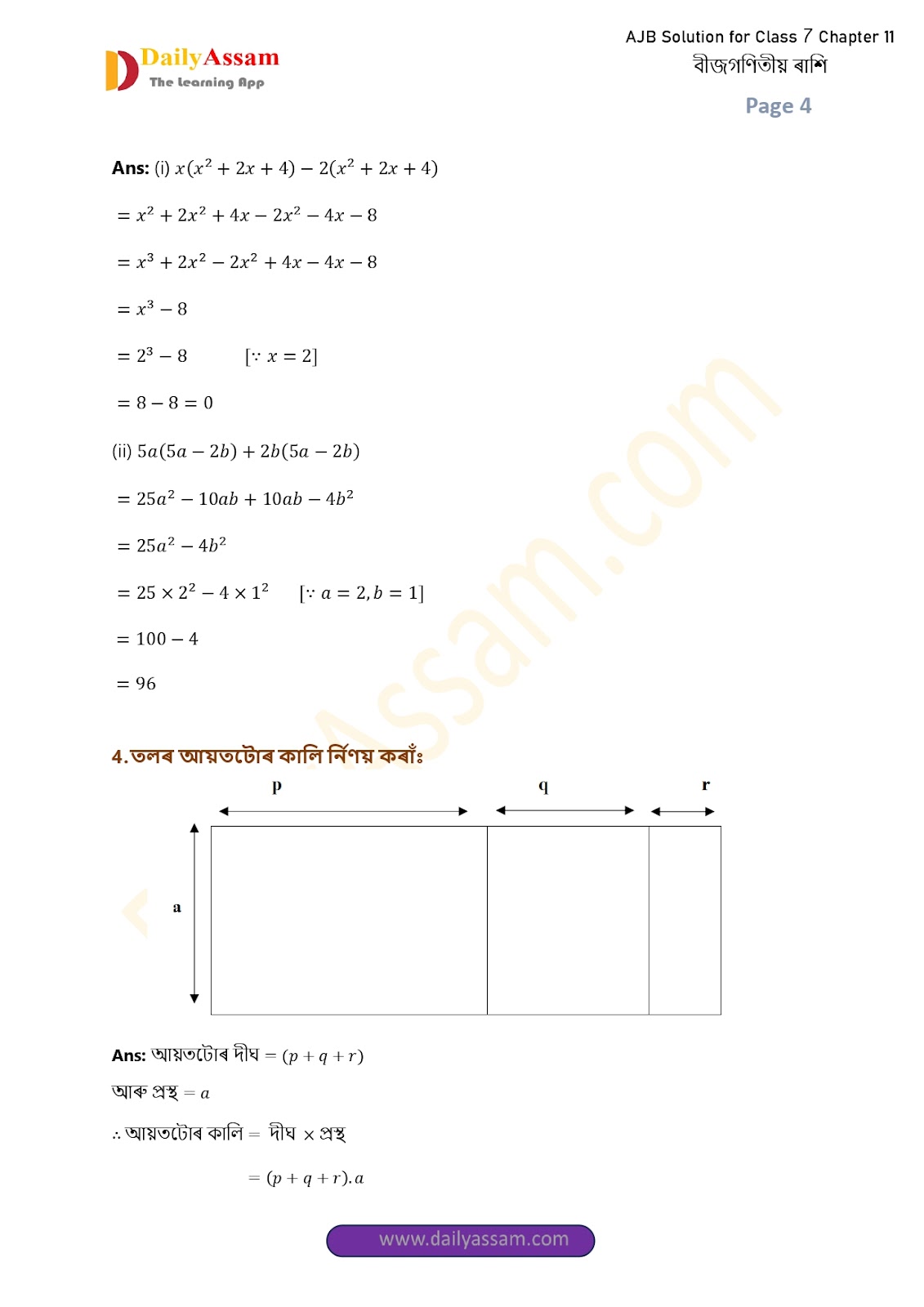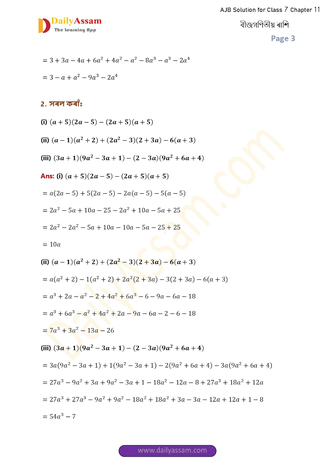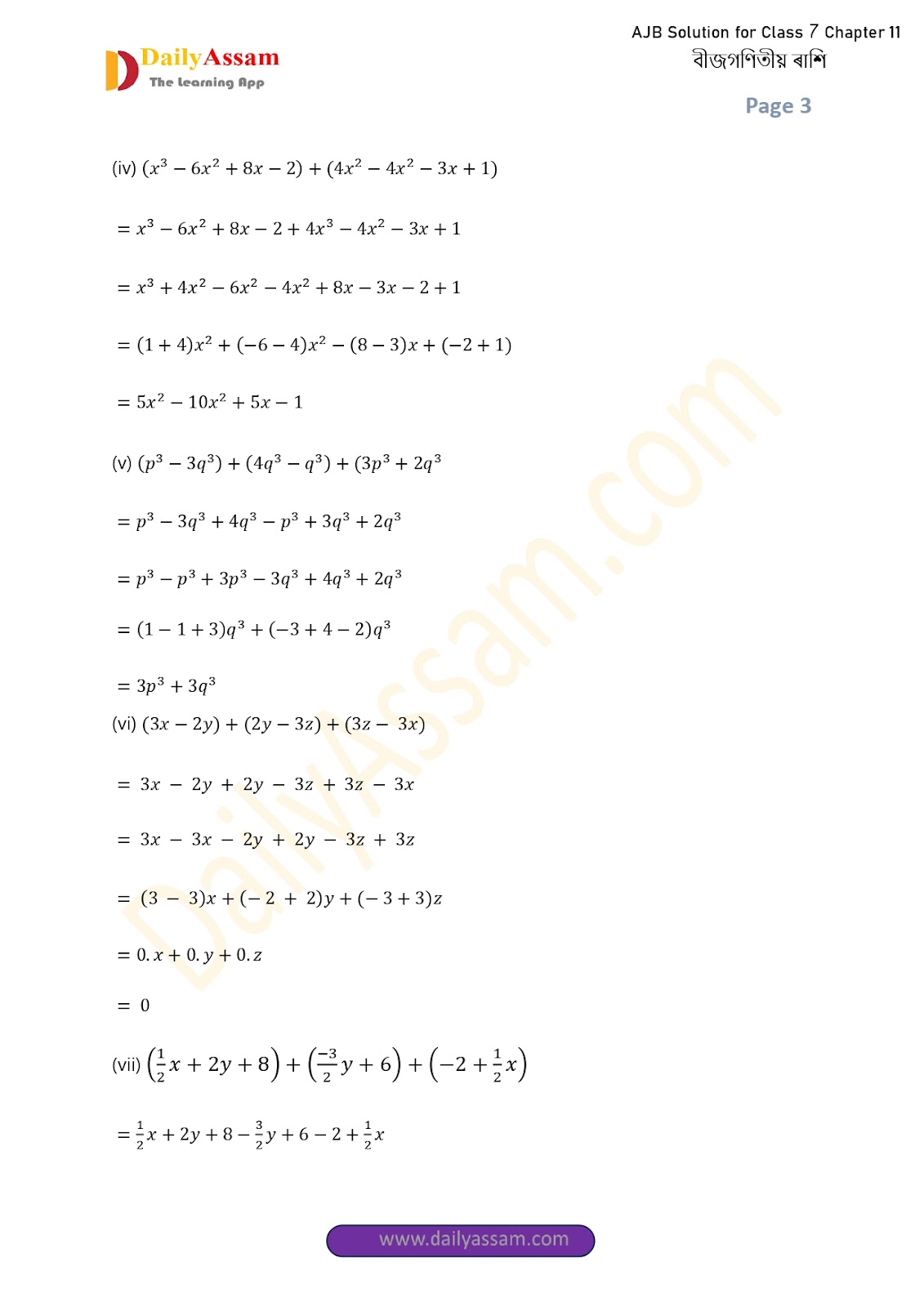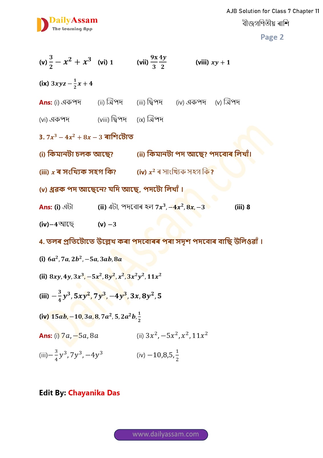 AJB Class 7 Mathematics Chapter 11 Solution | Assam Jatiya Bidyalay Class 7 Mathematics Chapter 11 বীজগণিতীয় ৰাশি (Algebraic quantities) Answer | 2025 - 2026