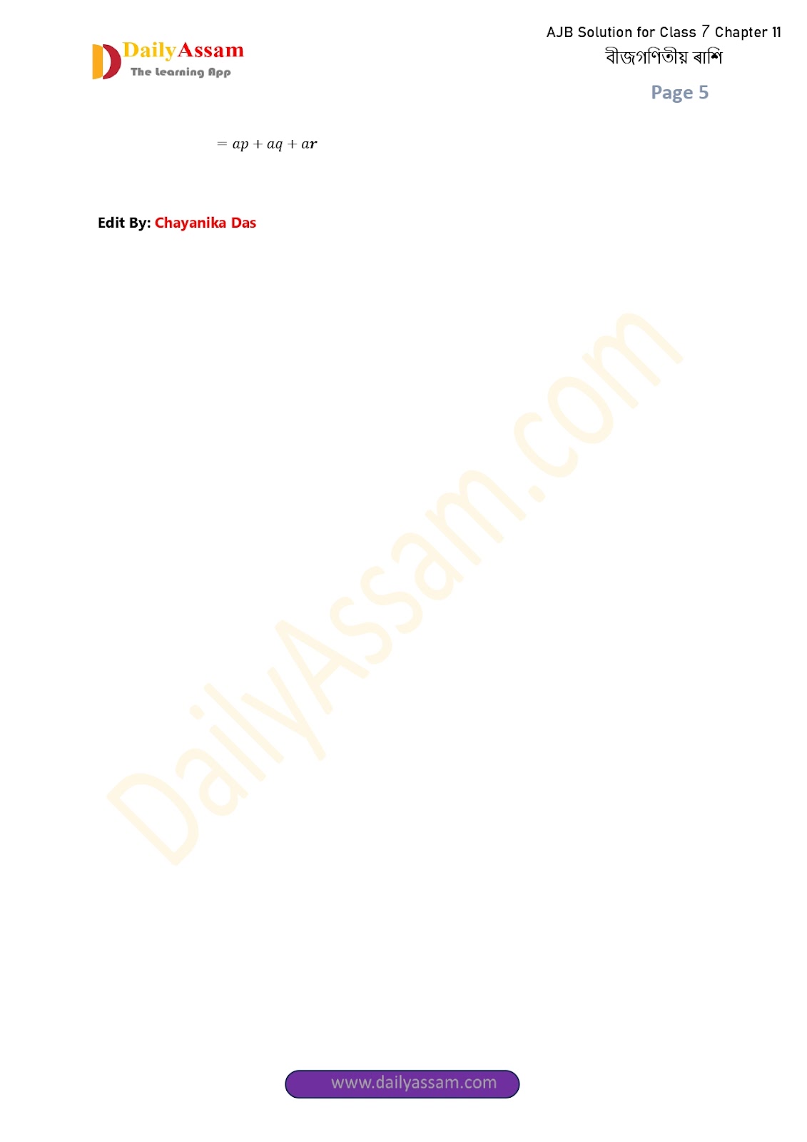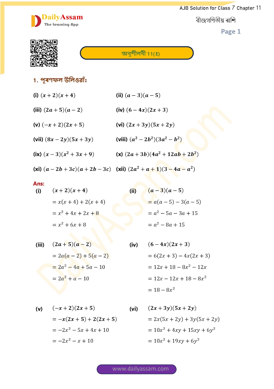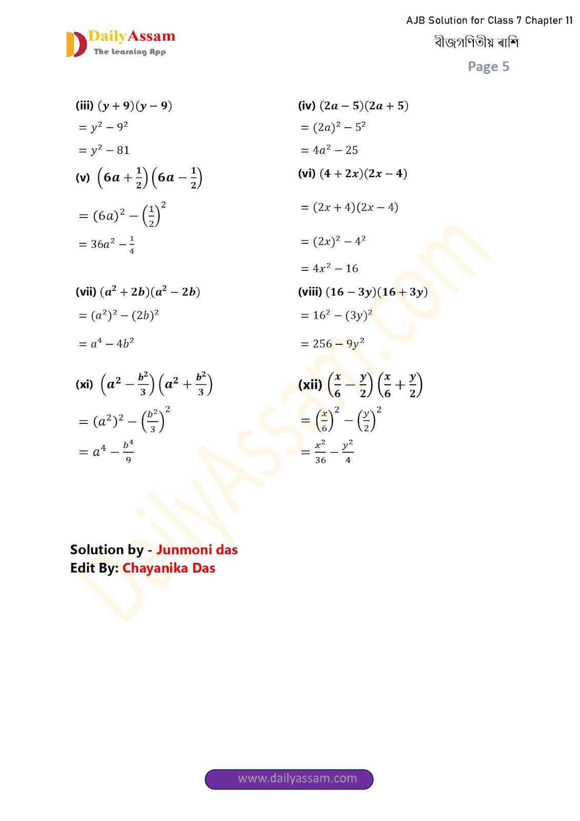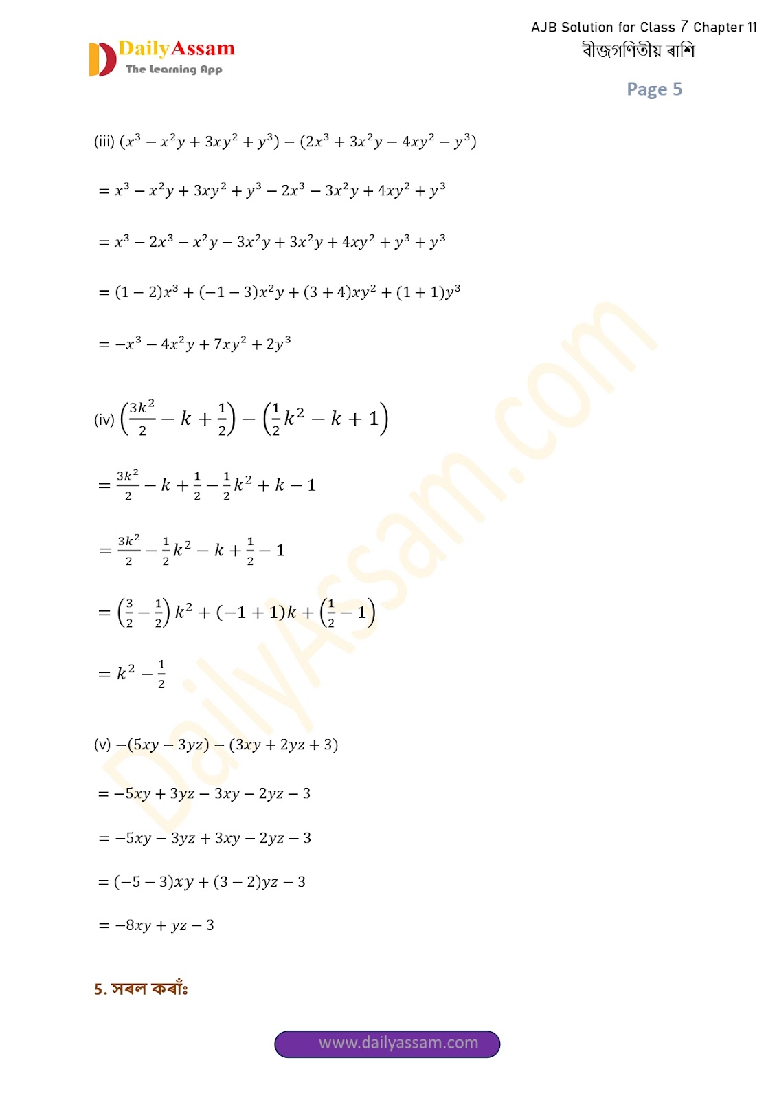 AJB Class 7 Mathematics Chapter 11 Solution | Assam Jatiya Bidyalay Class 7 Mathematics Chapter 11 বীজগণিতীয় ৰাশি (Algebraic quantities) Answer | 2025 - 2026