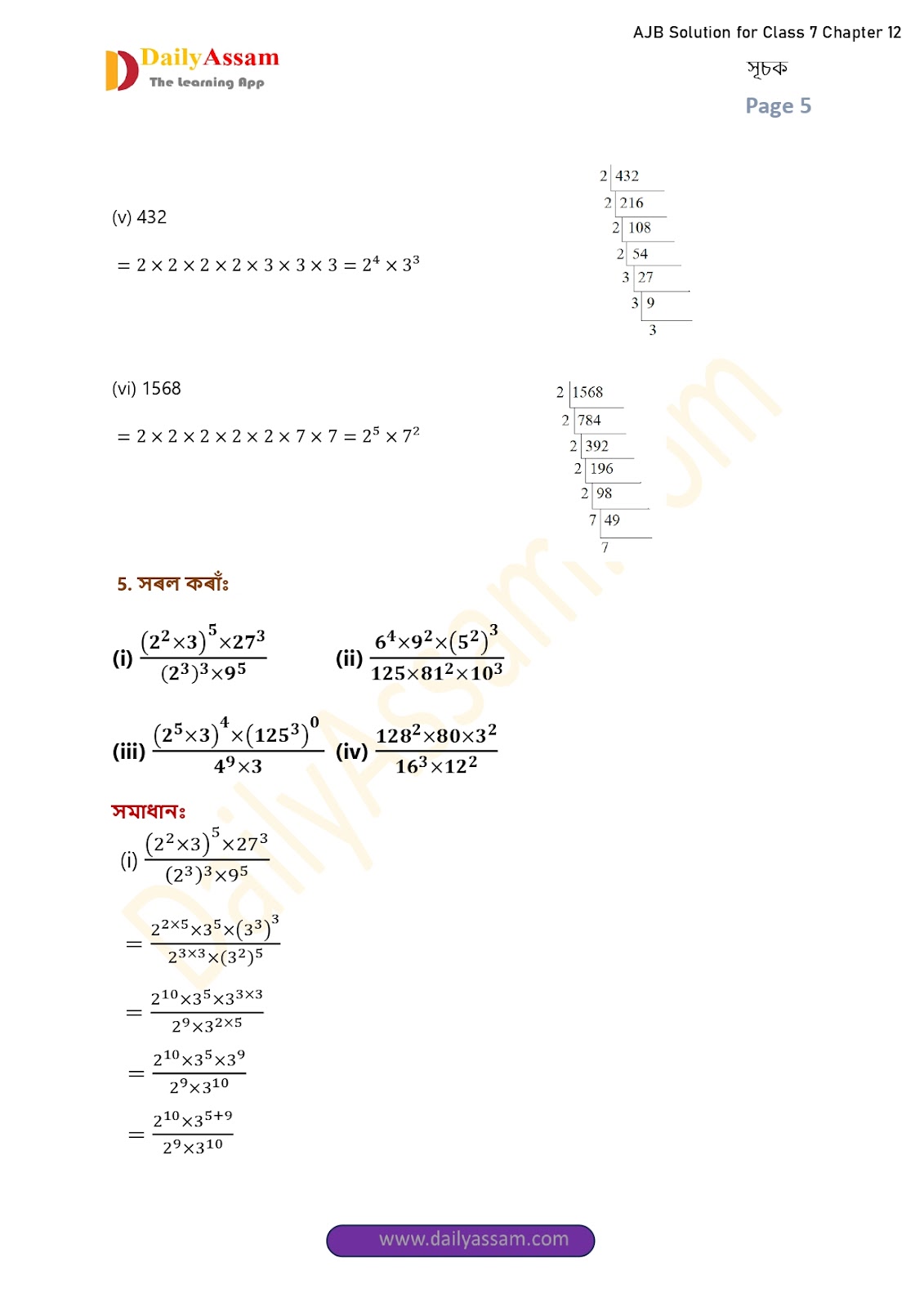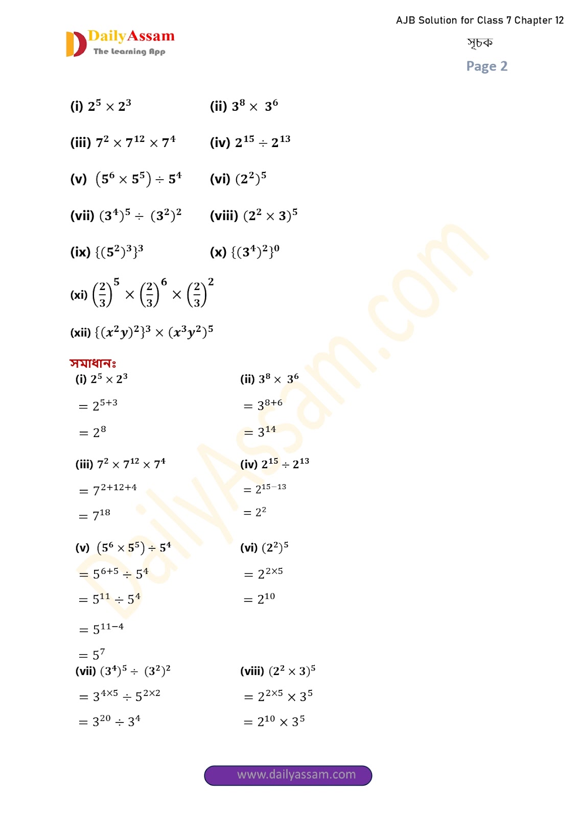 AJB Class 7 Mathematics Chapter 12 Solution | Assam Jatiya Bidyalay Class 7 Mathematics Chapter 12 সূচক (The indicator) Answer | 2025 - 2026