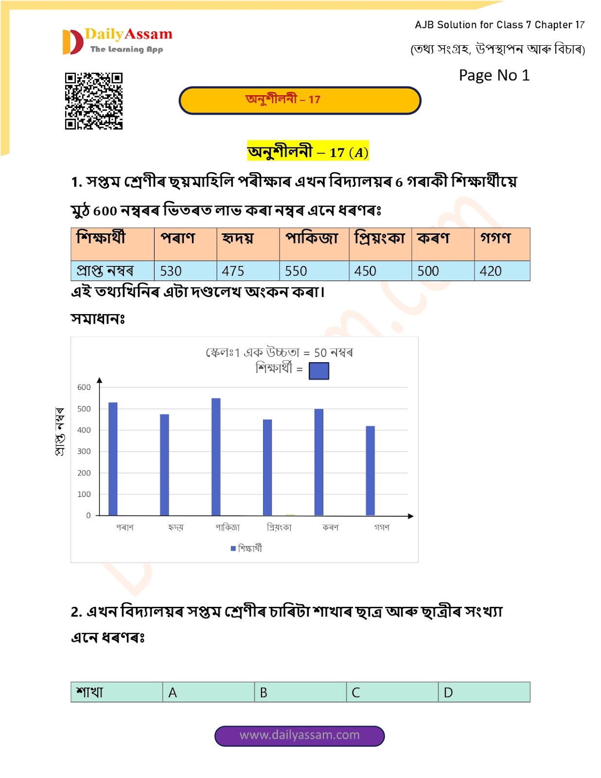 AJB Class 7 Mathematics Chapter 17 Solution | Assam Jatiya Bidyalay Class 7 Mathematics Chapter 17 তথ্য সংগ্ৰহ, উপস্থাপন আৰু বিচাৰ (Collection, presentation and judgment of data) Answer | 2025 - 2026
