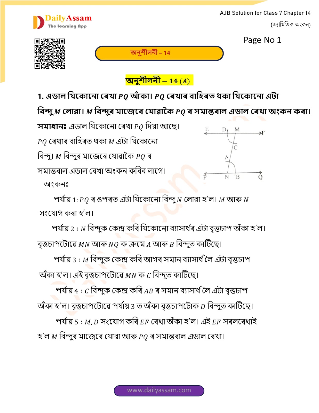 AJB Class7 Mathematics Chapter 14 Solution | Assam Jatiya Bidyalay Class 7 Mathematics Chapter 14 জ্যামিতিক অংকন (Geometric drawings) Answer | 2025 - 2026