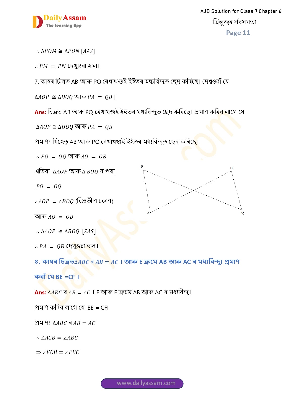 HomeAJB Class 7 MathsAJB Class7 Mathematics Chapter 6 Solution | Assam Jatiya Bidyalay Class 7 Mathematics Chapter 6 ত্ৰিভুজৰ সৰ্বসমতা (The symmetry of the triangle) Answer | 2025 - 2026