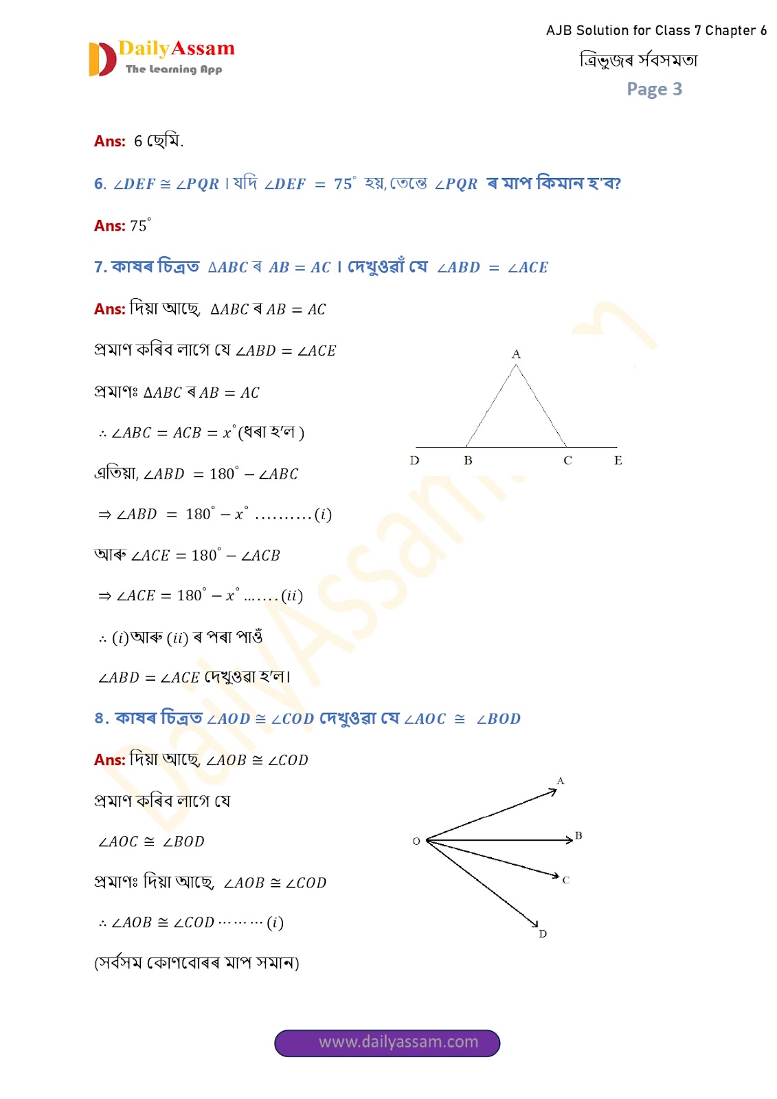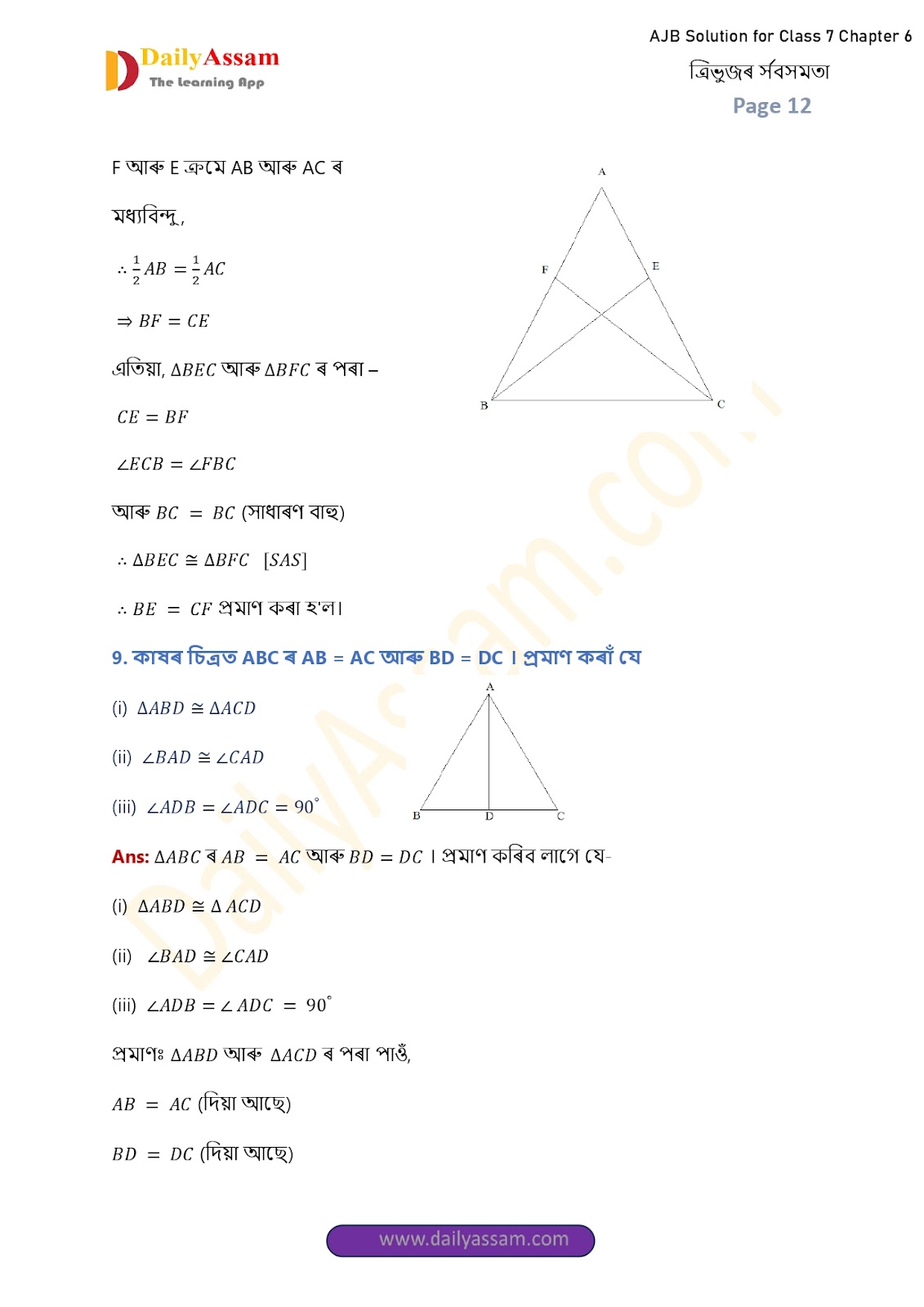 AJB Class7 Mathematics Chapter 6 Solution | Assam Jatiya Bidyalay Class 7 Mathematics Chapter 6 ত্ৰিভুজৰ সৰ্বসমতা (The symmetry of the triangle) Answer | 2025 - 2026