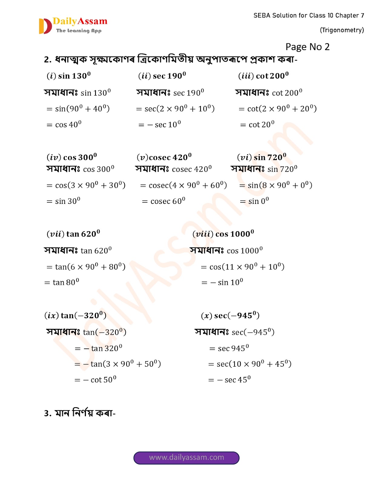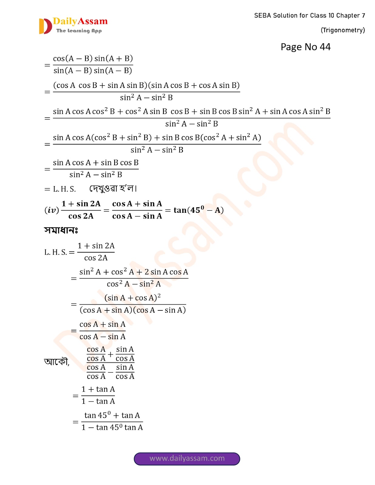 SEBA Class 10 Advanced Mathematics Chapter 7 Solution | Assam Board Class 10 Advanced Mathematics Chapter 7 ত্ৰিকোণমিতি (Trigonometry) Answer | 2025 -2026