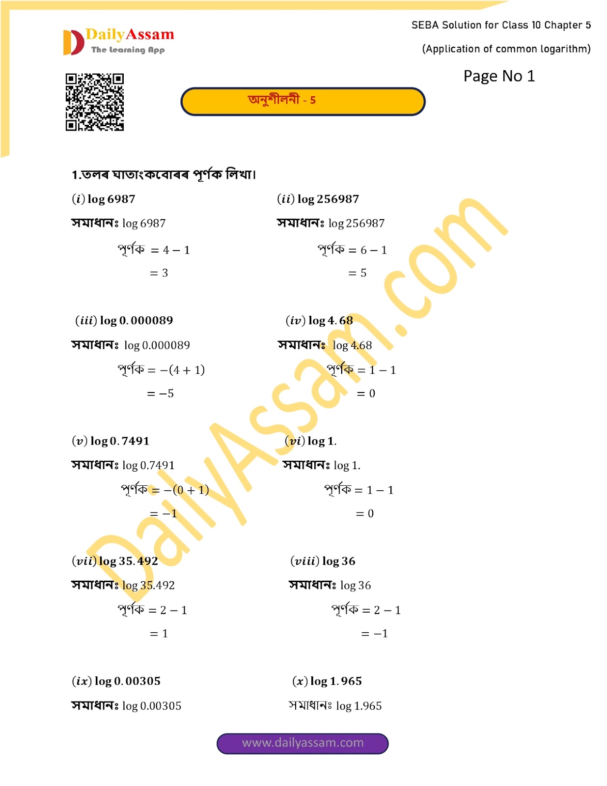 SEBA Class 10 Advanced Mathematics Chapter 5 Solution | Assam Board Class 10 Advanced Mathematics Chapter 5 সাধাৰণ সাধাৰণ ঘাতাংকৰ প্ৰয়োগ (Application of General Common Exponents) Answer | 2025 -2026