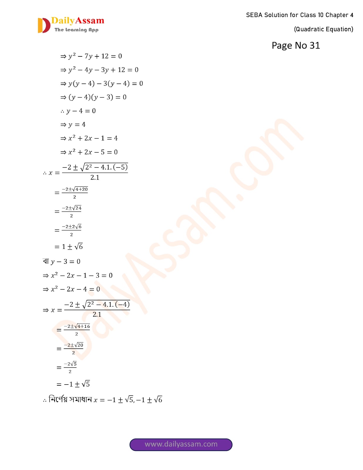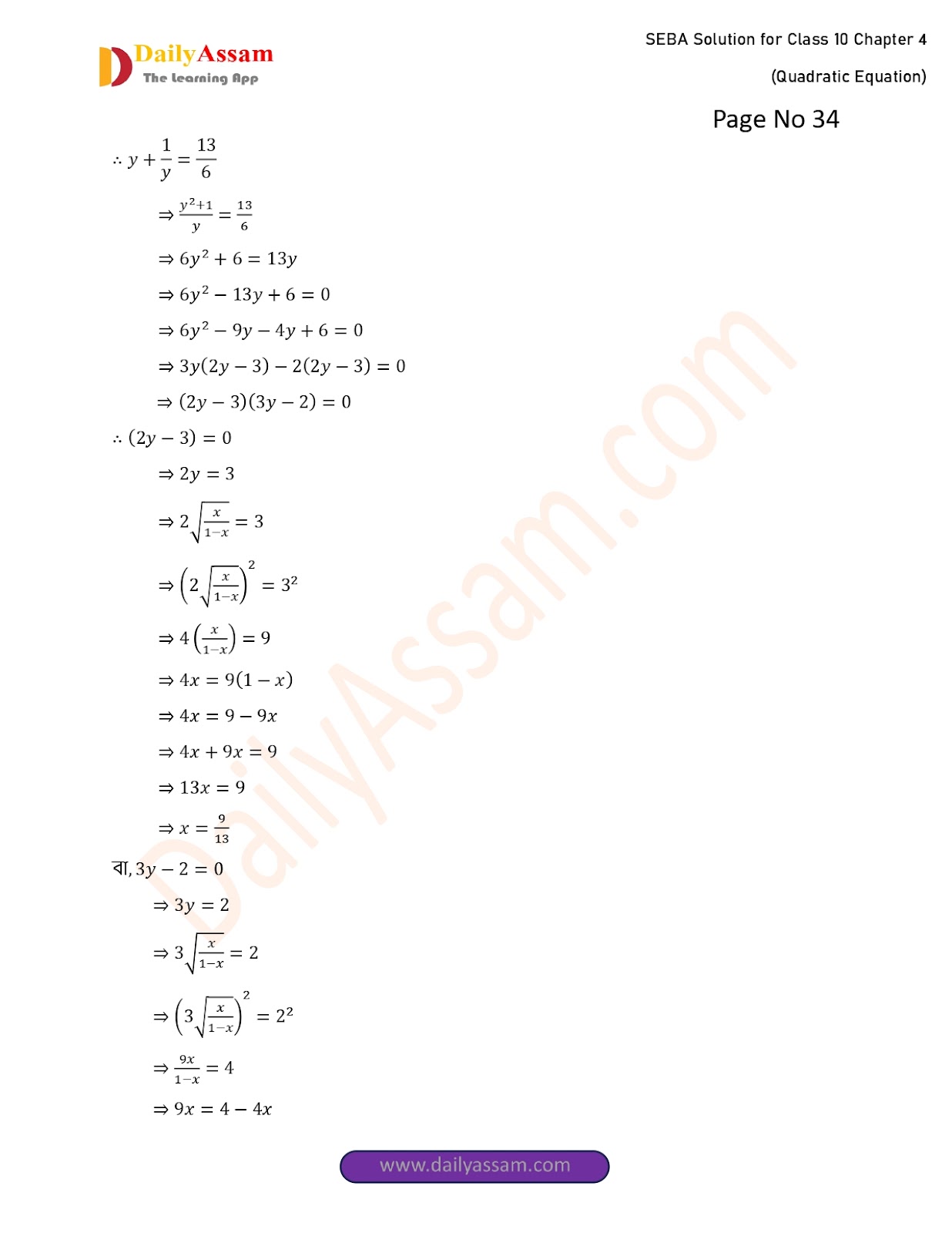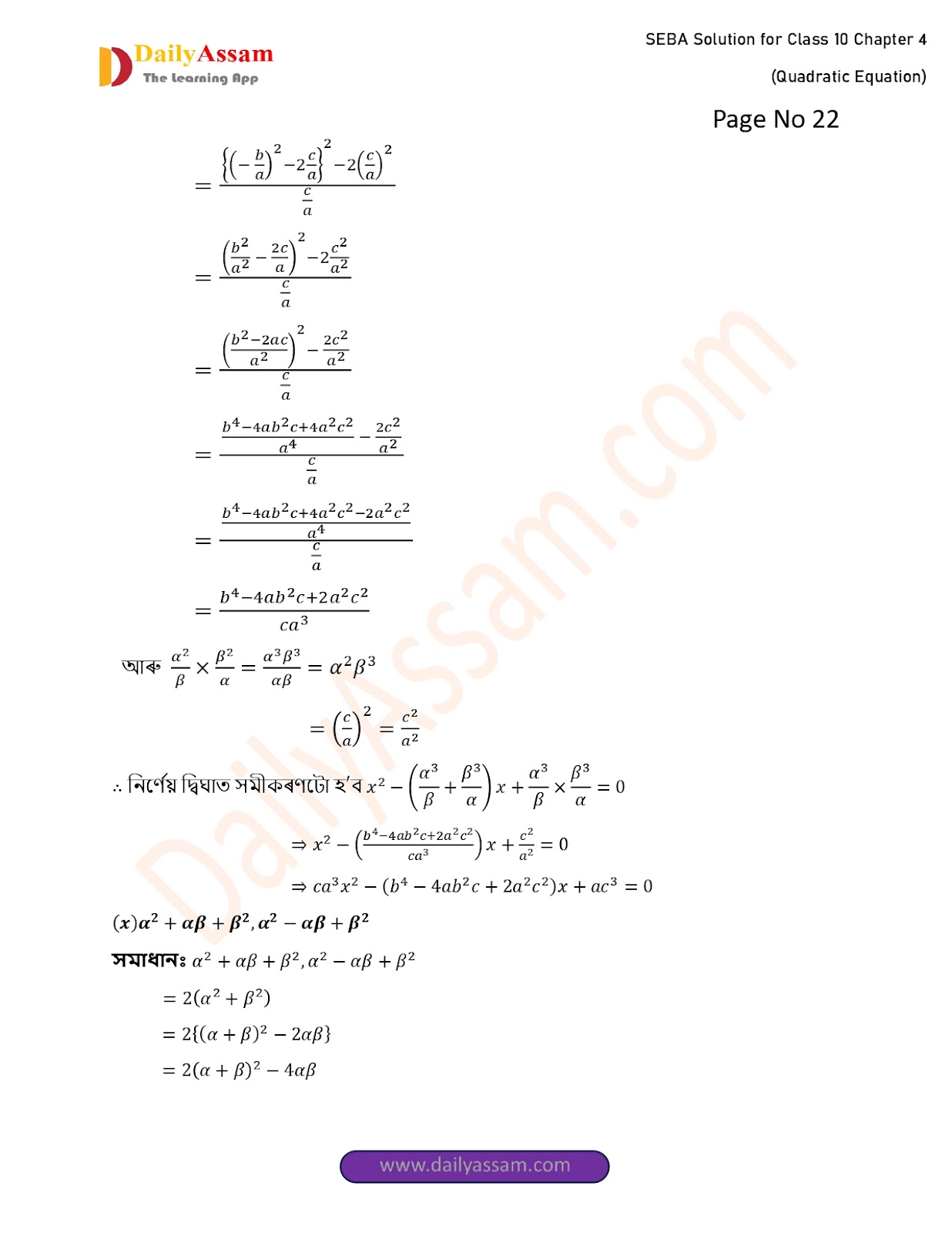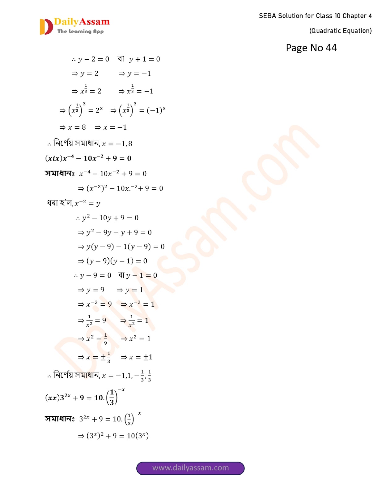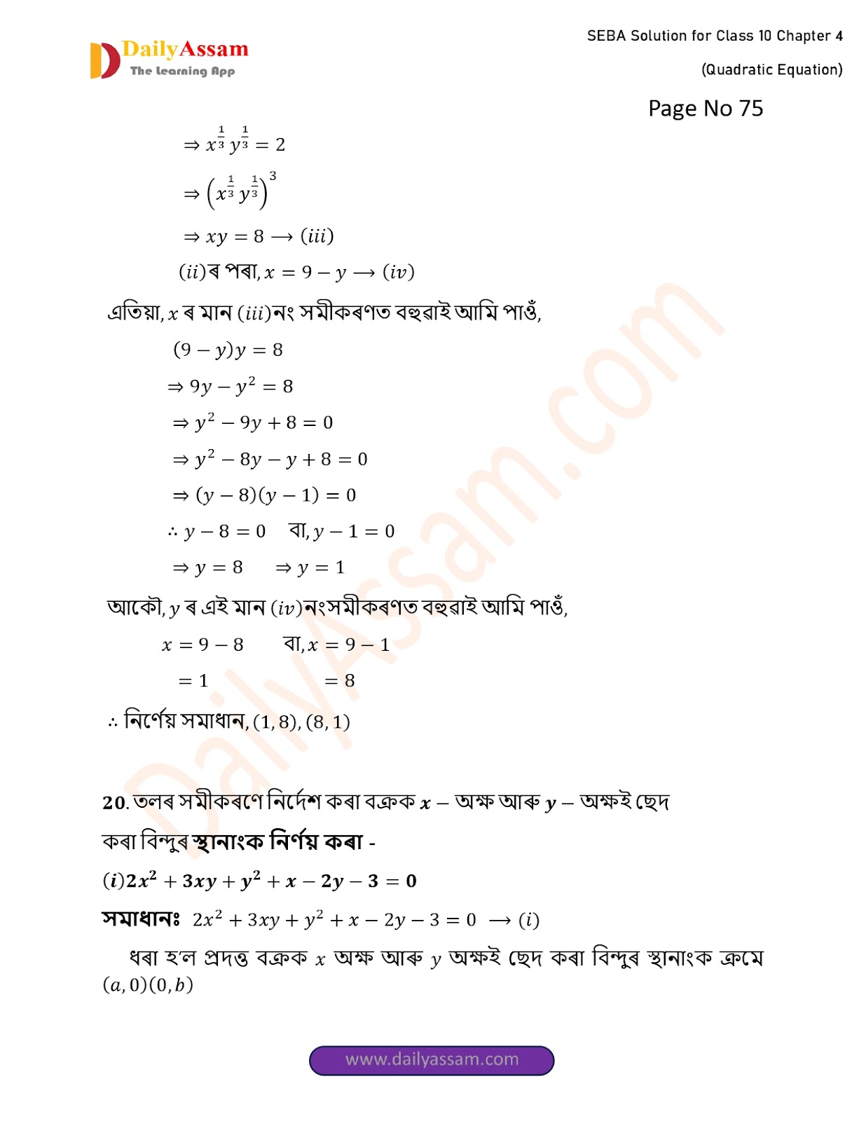 SEBA Class 10 Advanced Mathematics Chapter 4 Solution | Assam Board Class 10 Advanced Mathematics Chapter 4 দ্বিঘাত সমীকৰণ (Quadratic equations) Answer | 2025 -2026