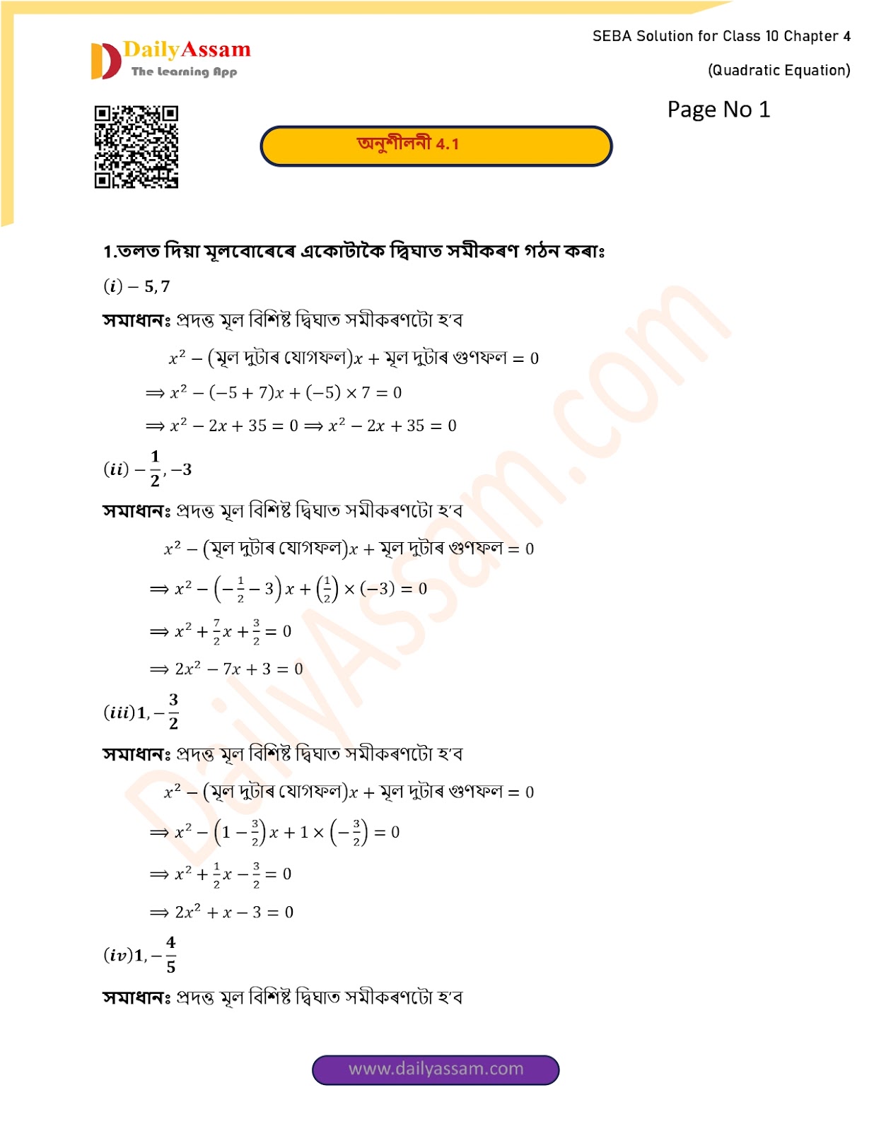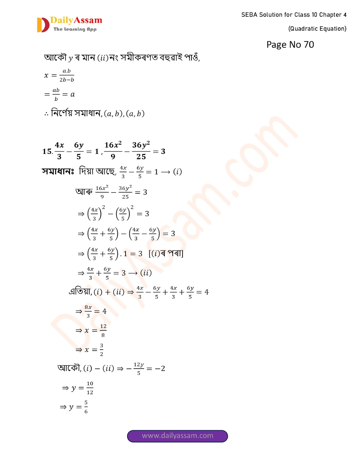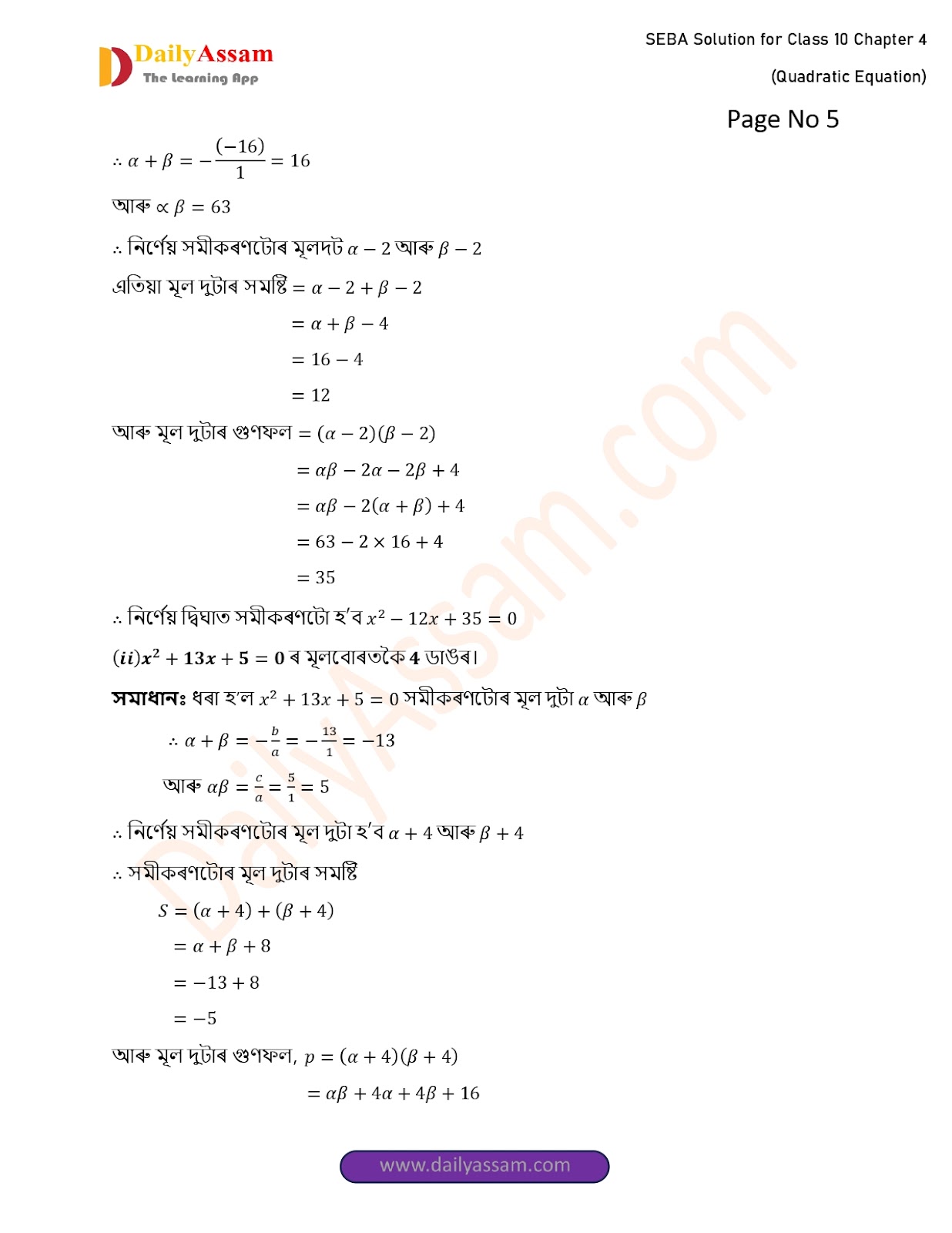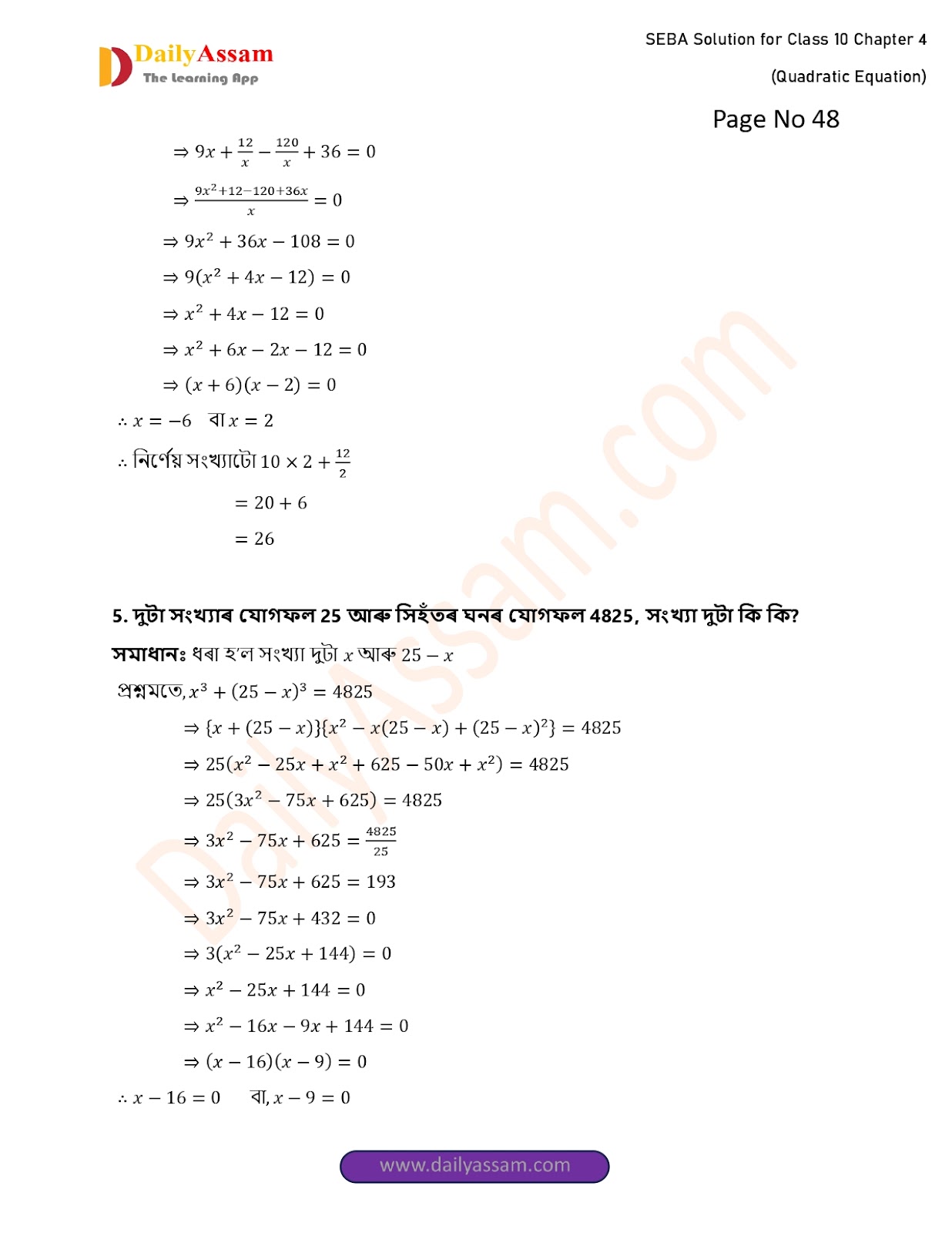 SEBA Class 10 Advanced Mathematics Chapter 4 Solution | Assam Board Class 10 Advanced Mathematics Chapter 4 দ্বিঘাত সমীকৰণ (Quadratic equations) Answer | 2025 -2026
