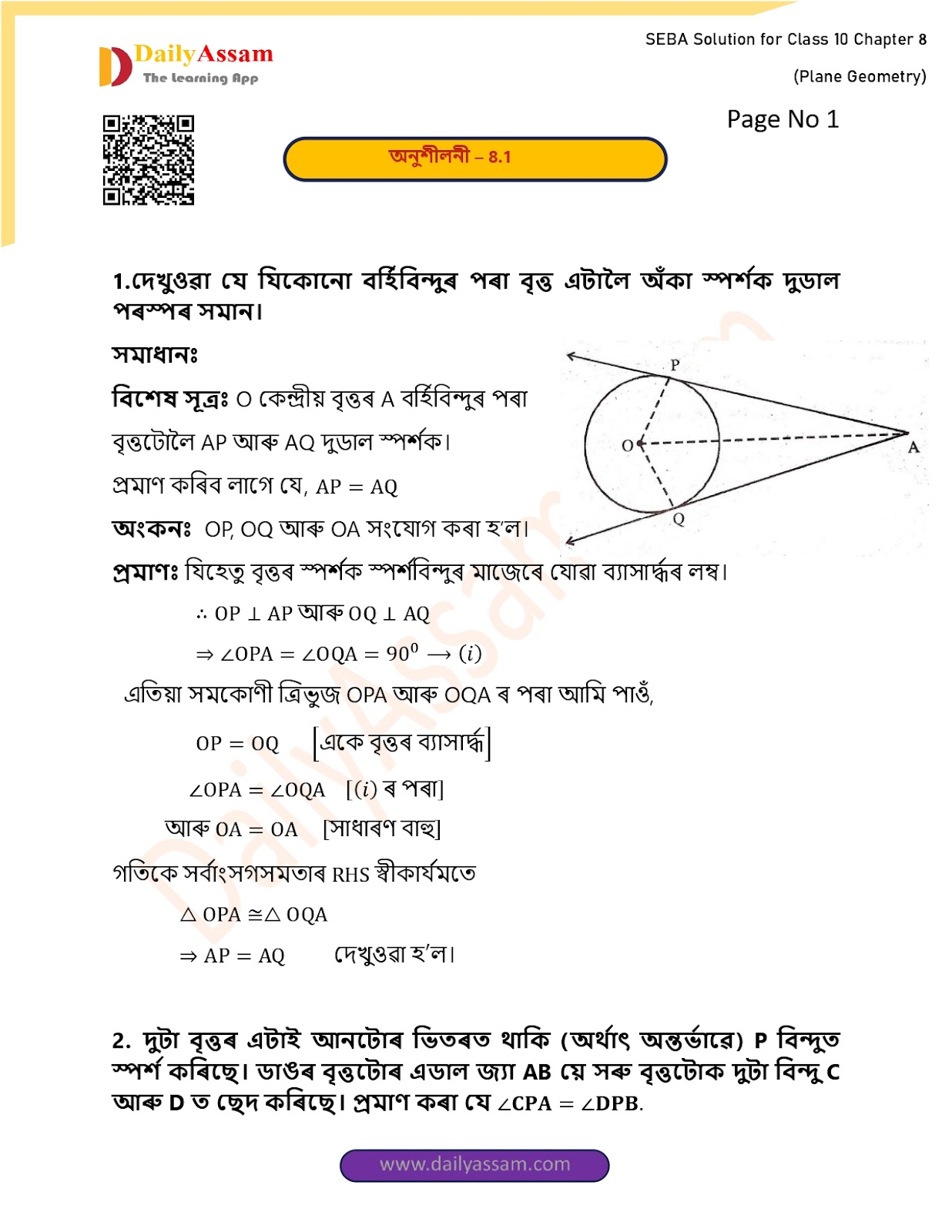 SEBA Class 10 Advanced Mathematics Chapter 8 Solution | Assam Board Class 10 Advanced Mathematics Chapter 8 সামতলিক জ্য়ামিতি (Planar Geometry) Answer | 2025 -2026