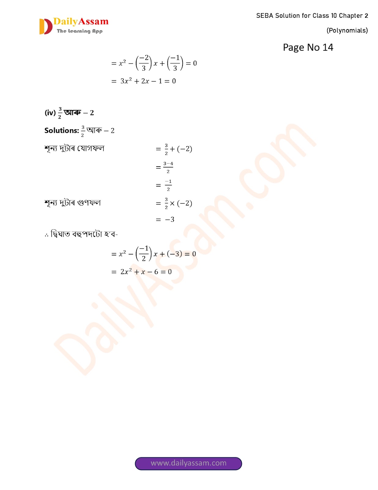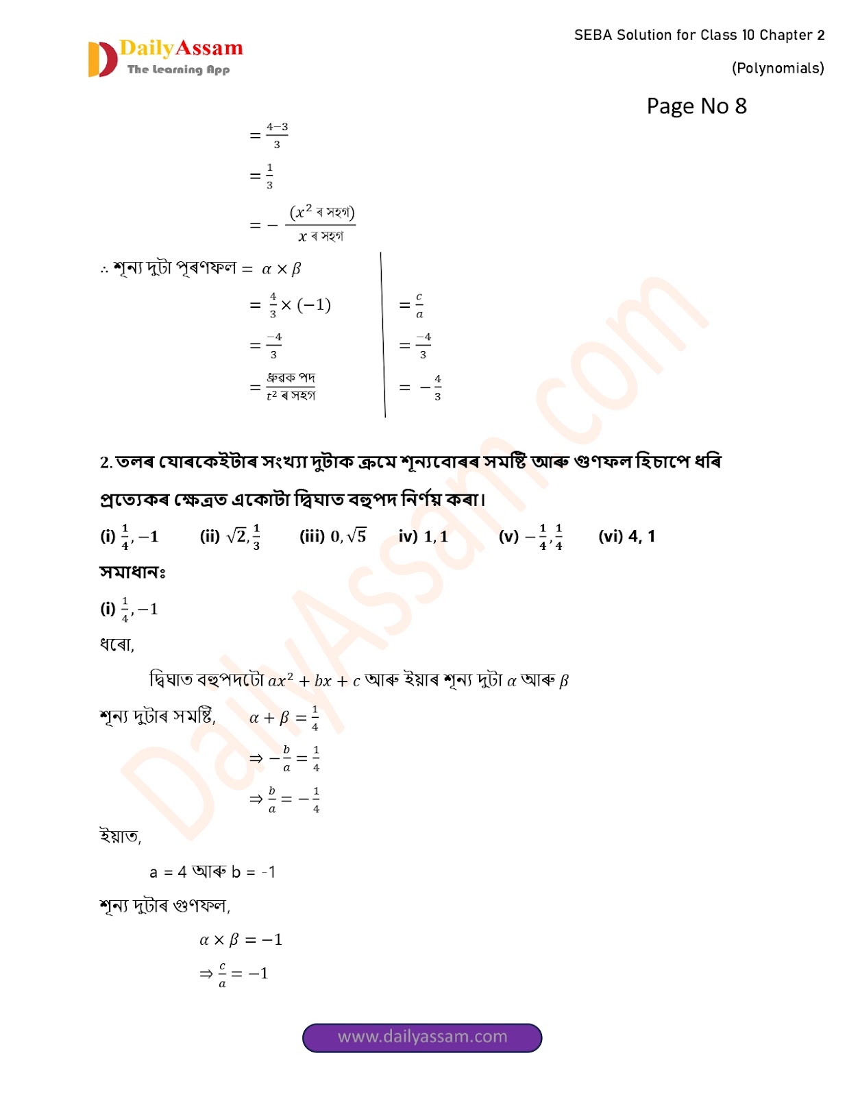 SEBA Class 10 Mathematics Chapter 2 Solution | Assam Board Class 10 Mathematics Chapter 2 বহুপদ (Polynomial) Answer | 2025 - 2026