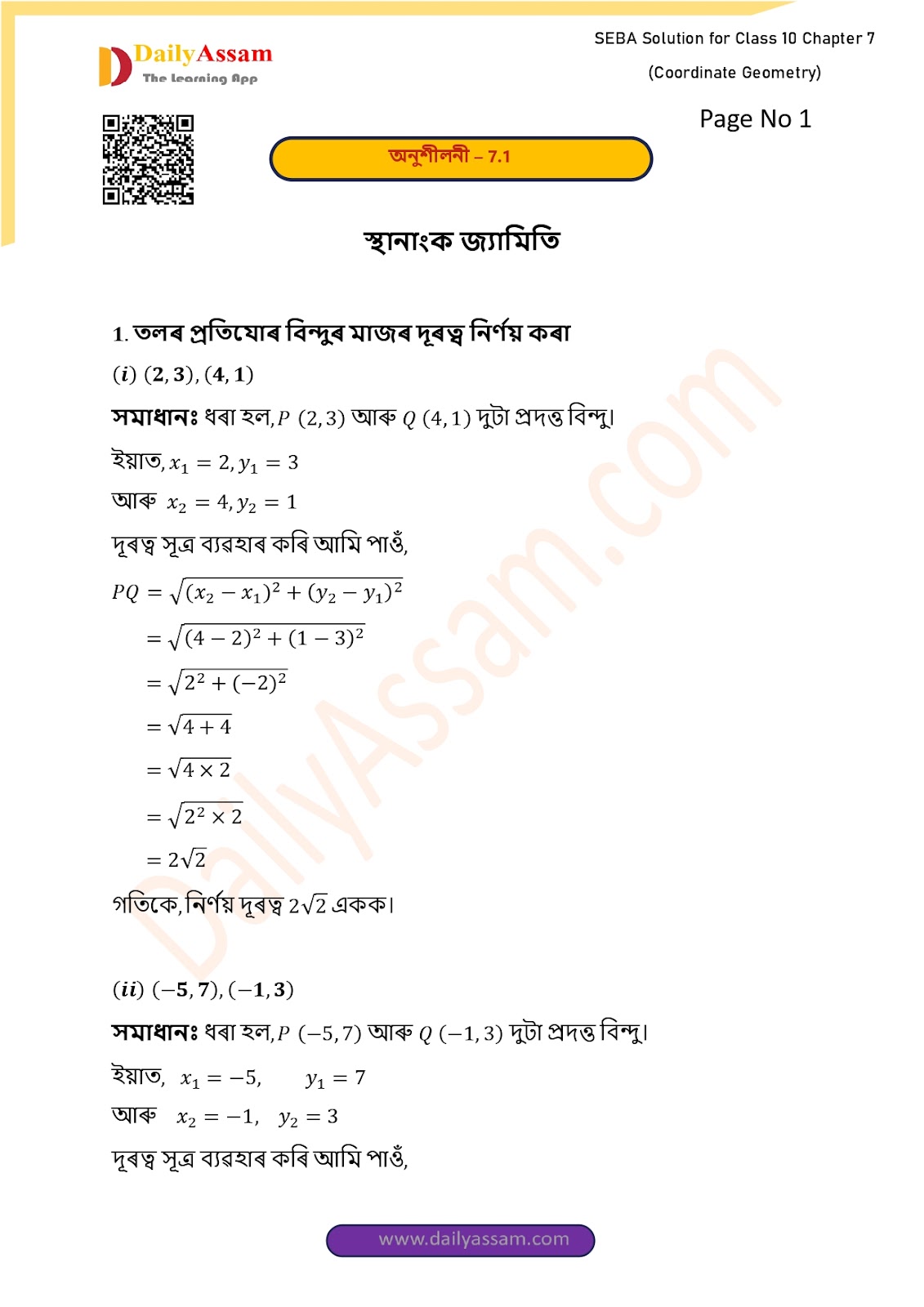SEBA Class 10 Mathematics Chapter 7 Solution | Assam Board Class 10 Mathematics Chapter 7 স্থানাংক জ্যামিতি (Coordinate Geometry) Answer | 2025 - 2026