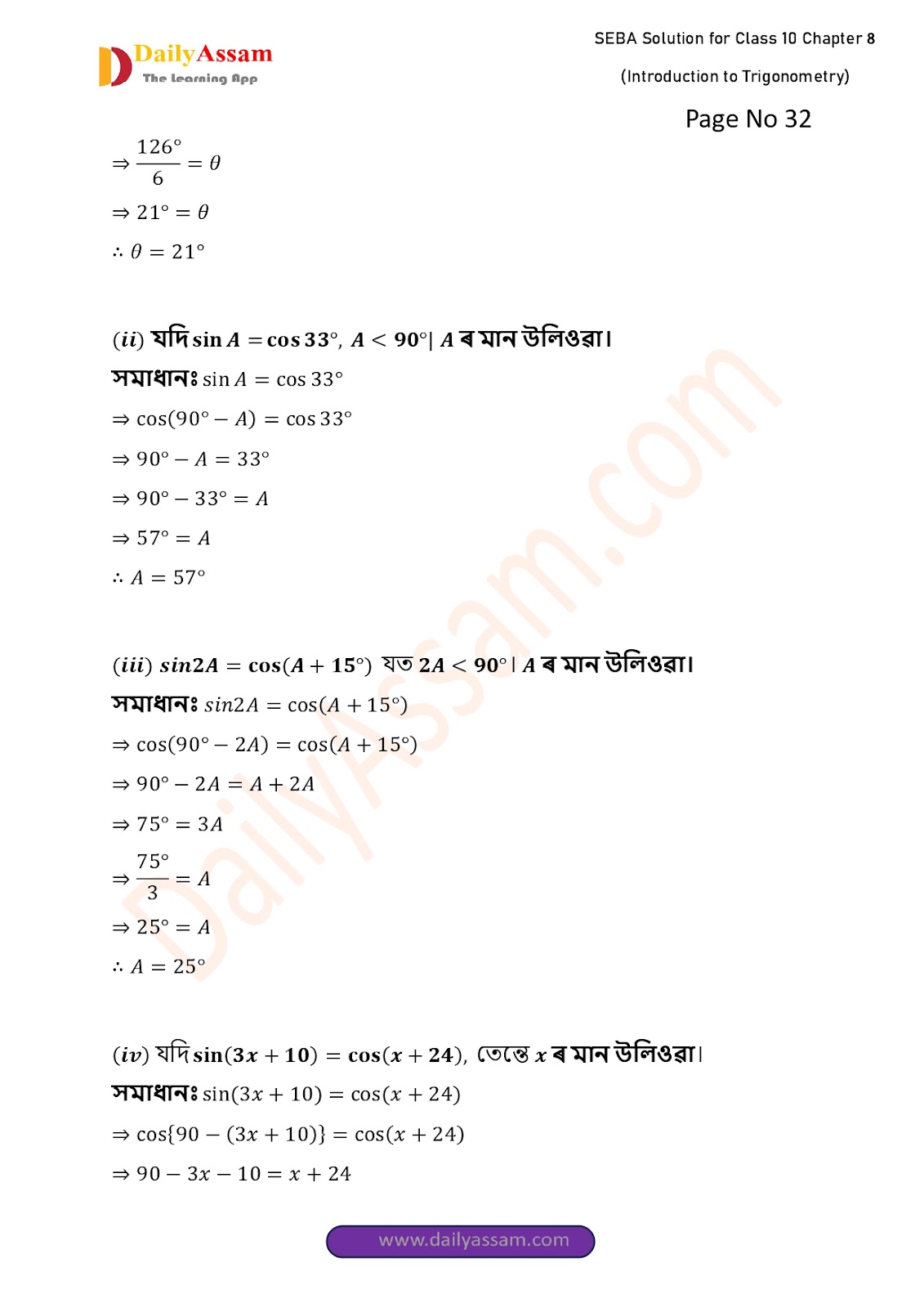 SEBA Class 10 Mathematics Chapter 8 Solution | Assam Board Class 10 Mathematics Chapter 8 ত্ৰিকোণমিতি (Trigonometry) Answer | 2025 - 2026