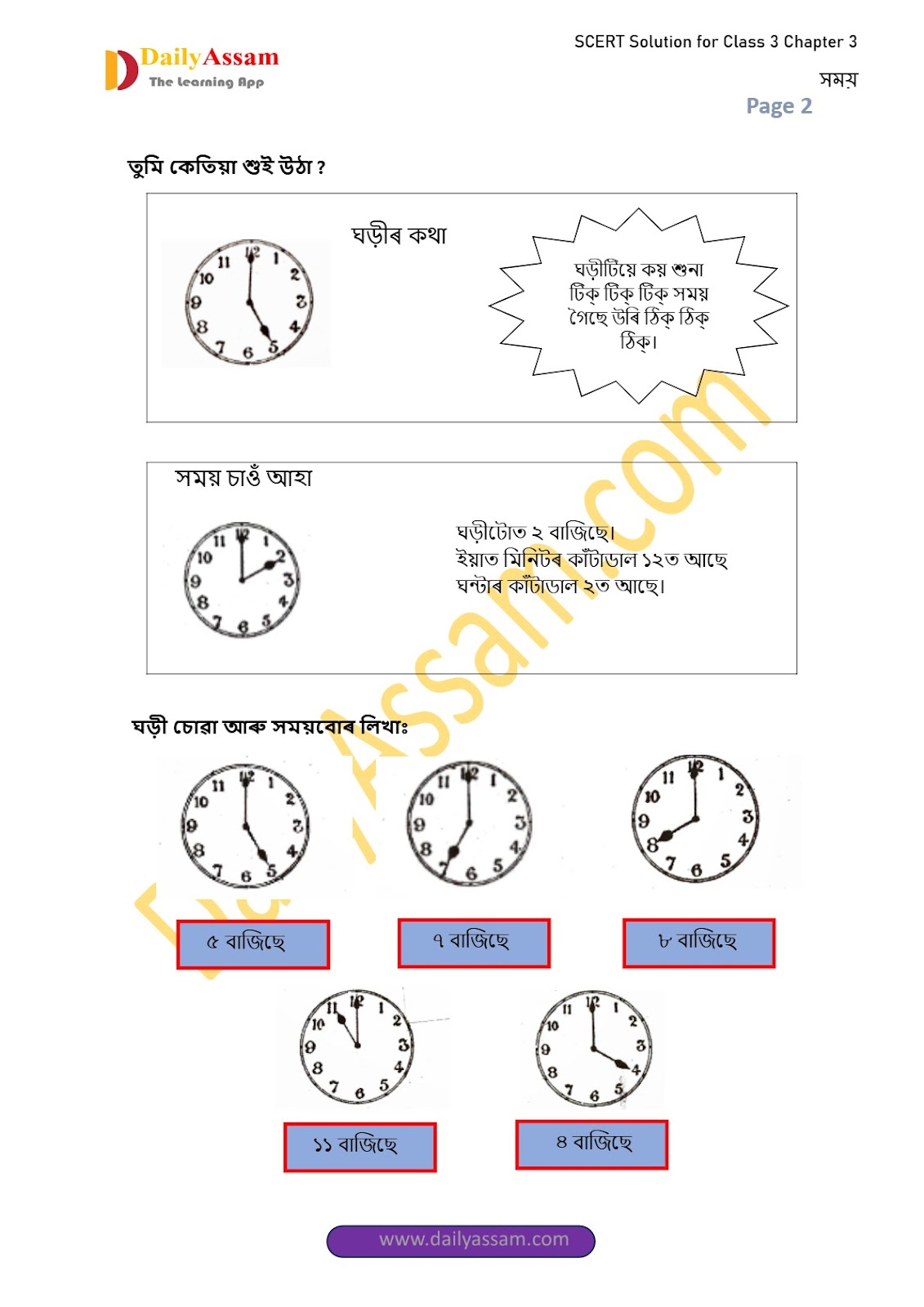 SEBA Class 3 Mathematics Chapter 10 Solution | Assam Board Class 3 Mathematics Chapter 10 সময় (Time) Answer | 2025 -2026
