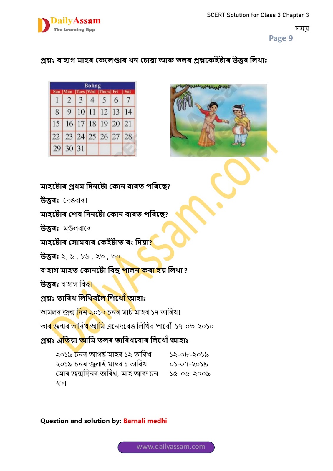 HomeClass 3 Maths SCERTSEBA Class 3 Mathematics Chapter 10 Solution | Assam Board Class 3 Mathematics Chapter 10 সময় (Time) Answer | 2025 -2026