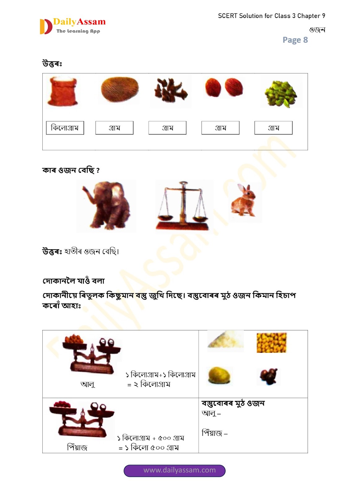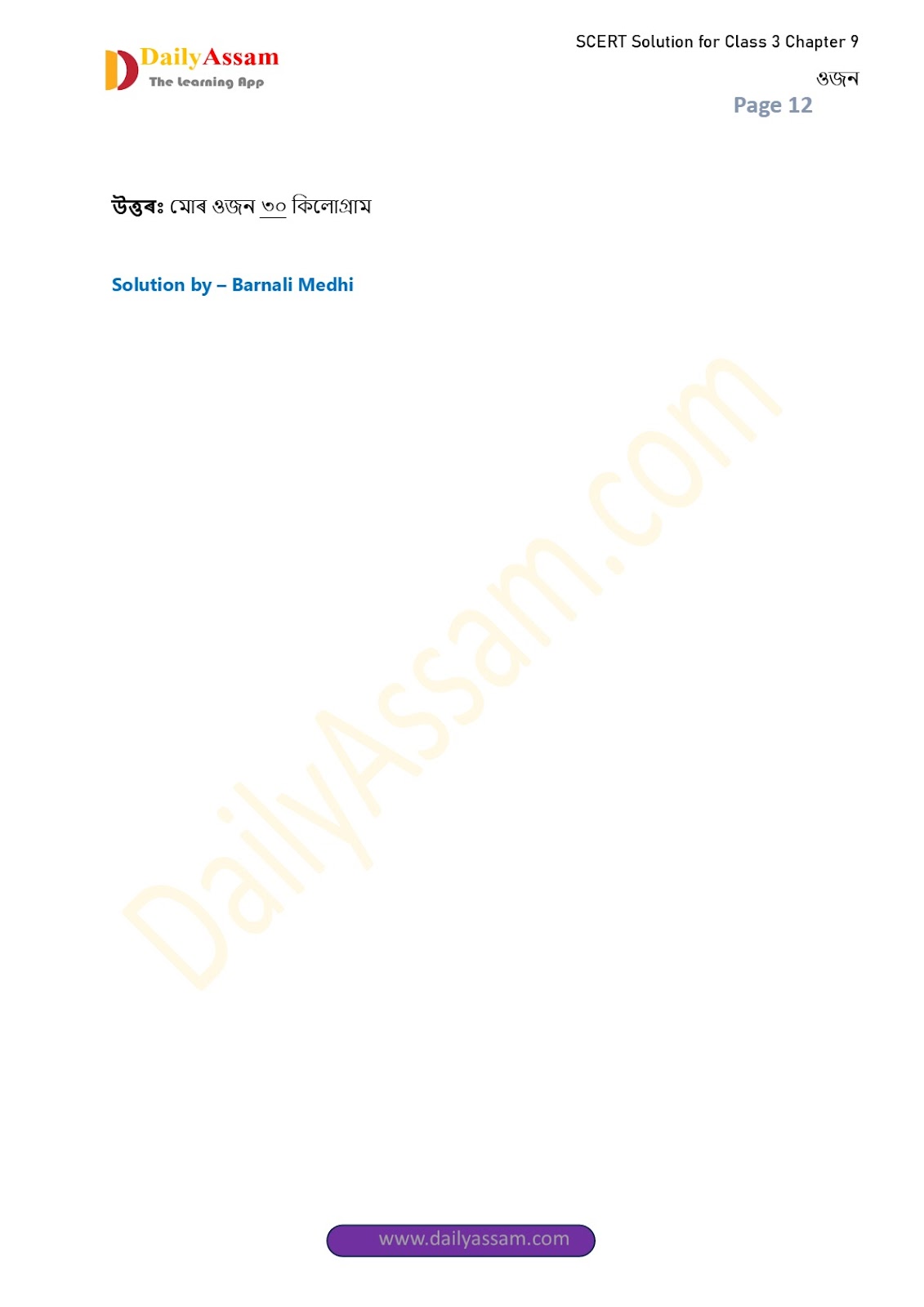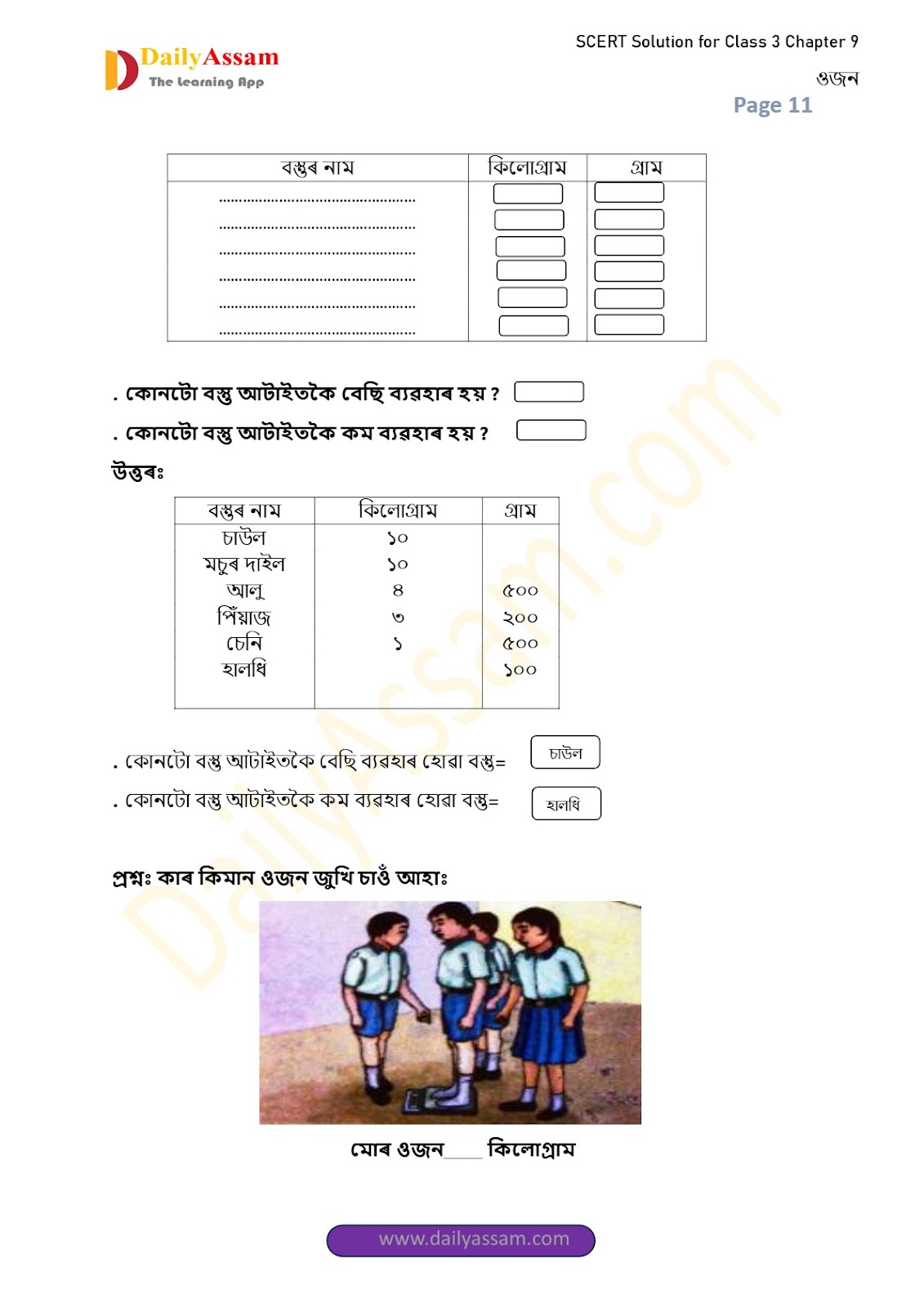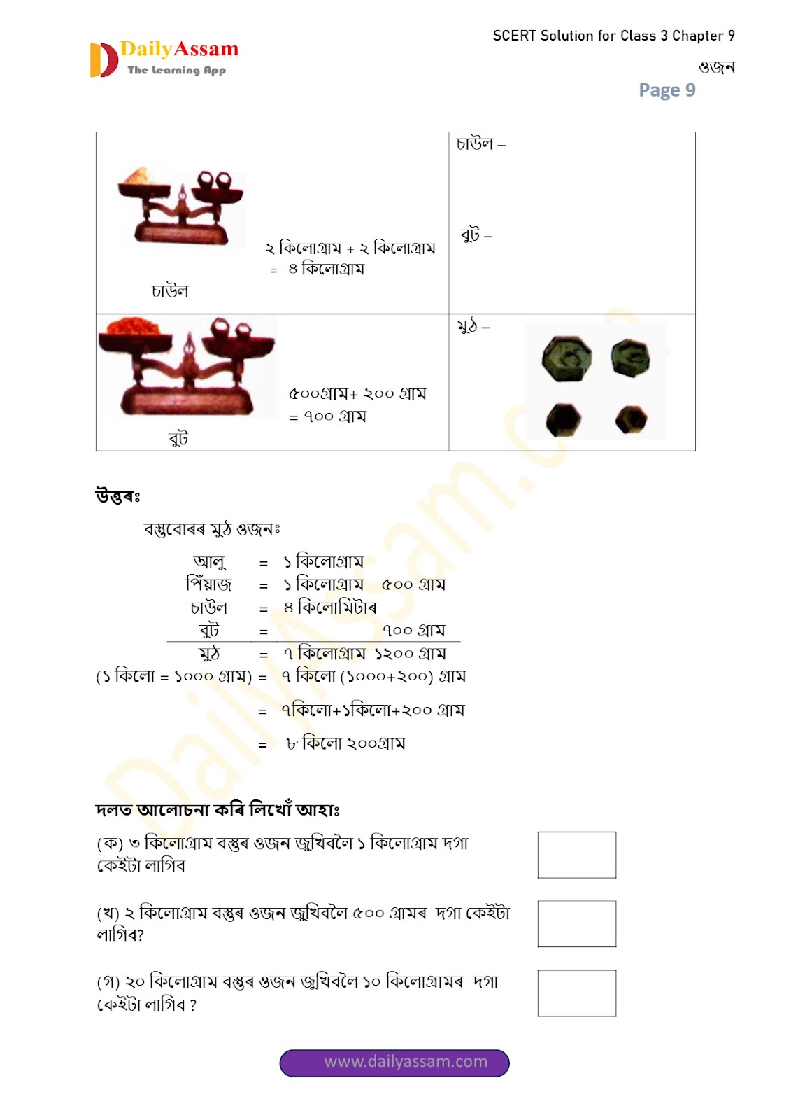 HomeClass 3 Maths SCERTSEBA Class 3 Mathematics Chapter 13 Solution | Assam Board Class 3 Mathematics Chapter 13 ওজন (Weight) Answer | 2025 -2026