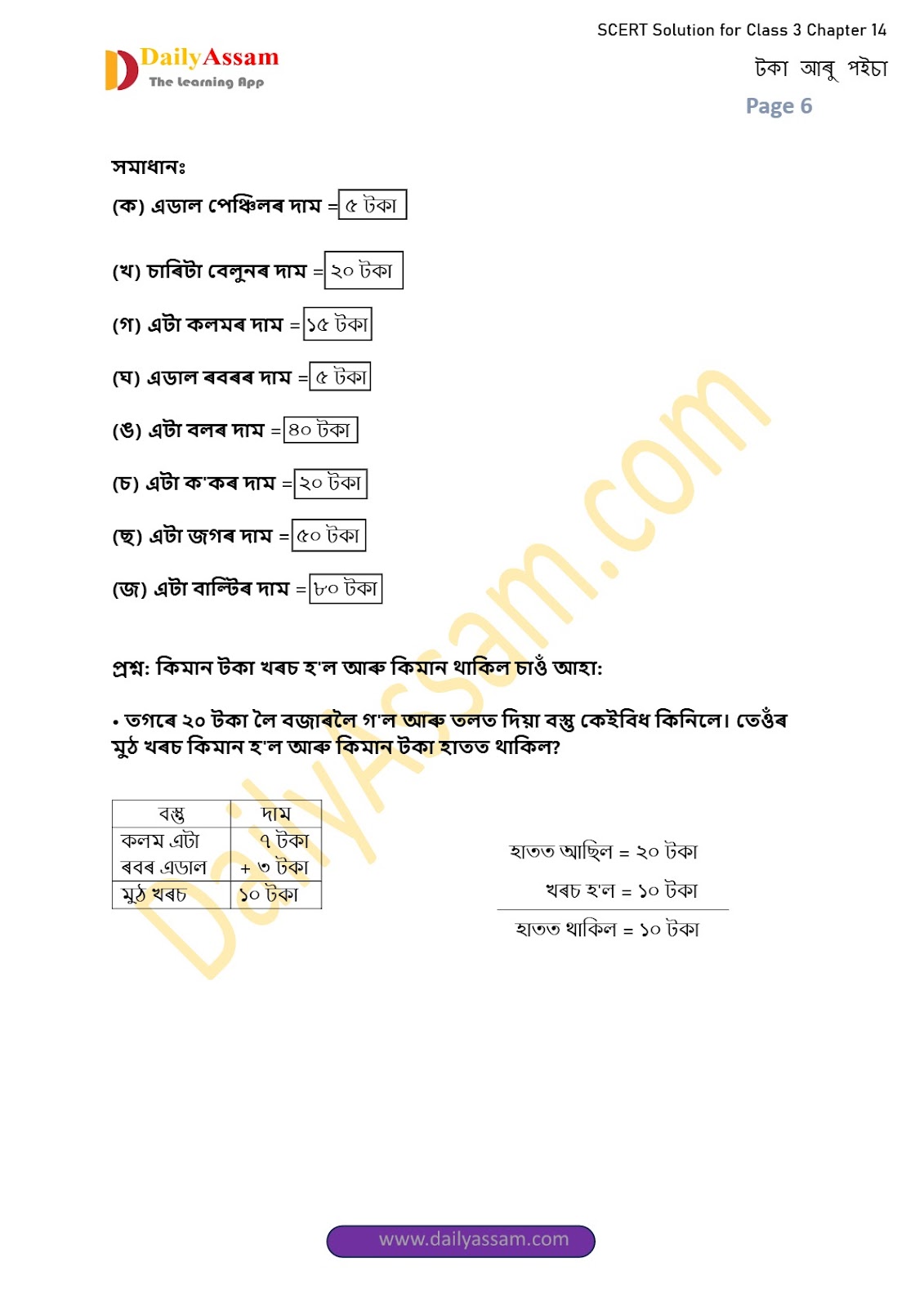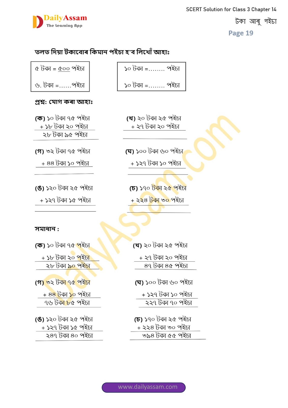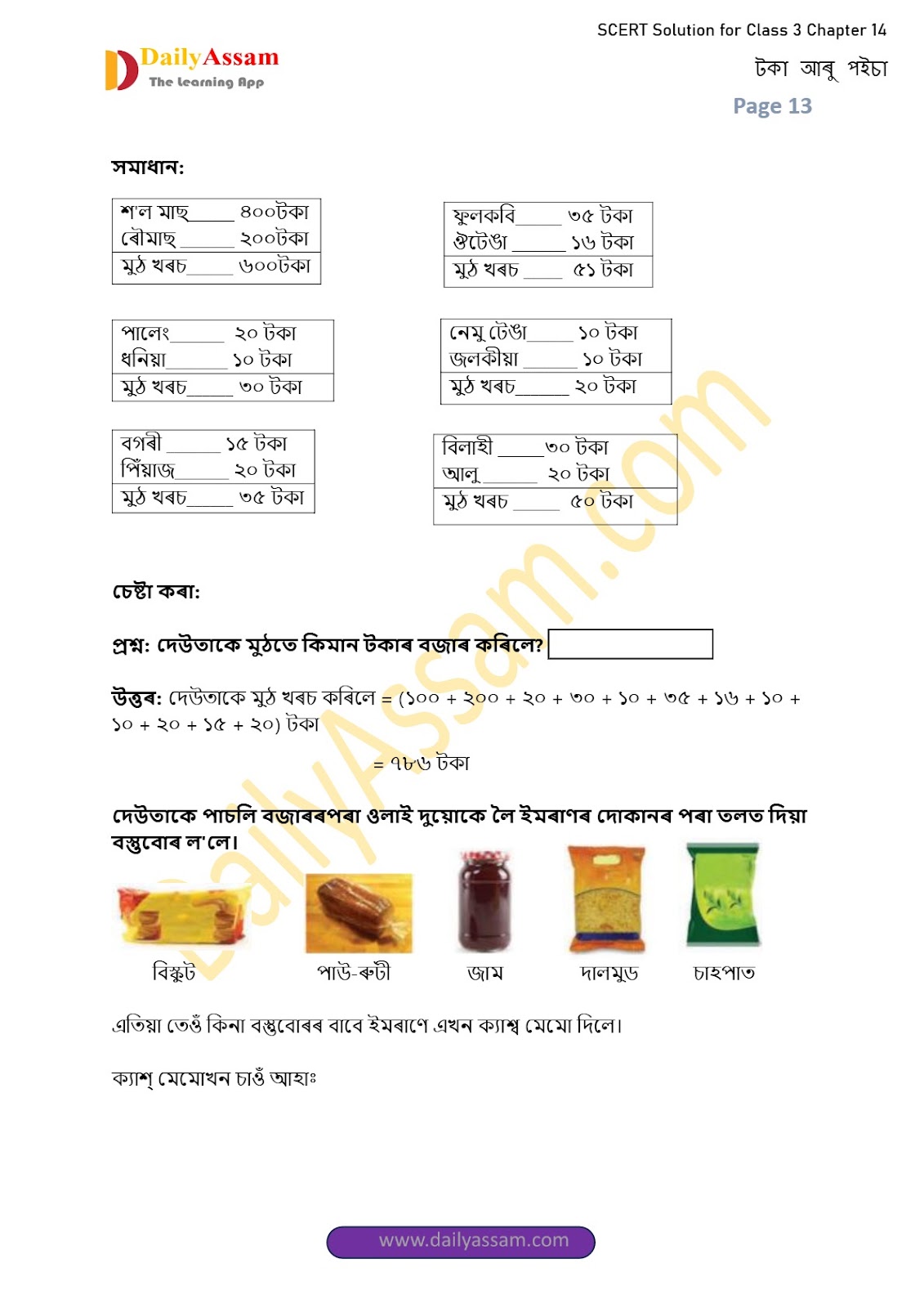 HomeClass 3 Maths SCERTSEBA Class 3 Mathematics Chapter 14 Solution | Assam Board Class 3 Mathematics Chapter 14 টকা-পইচা (Money and money) Answer | 2025 -2026