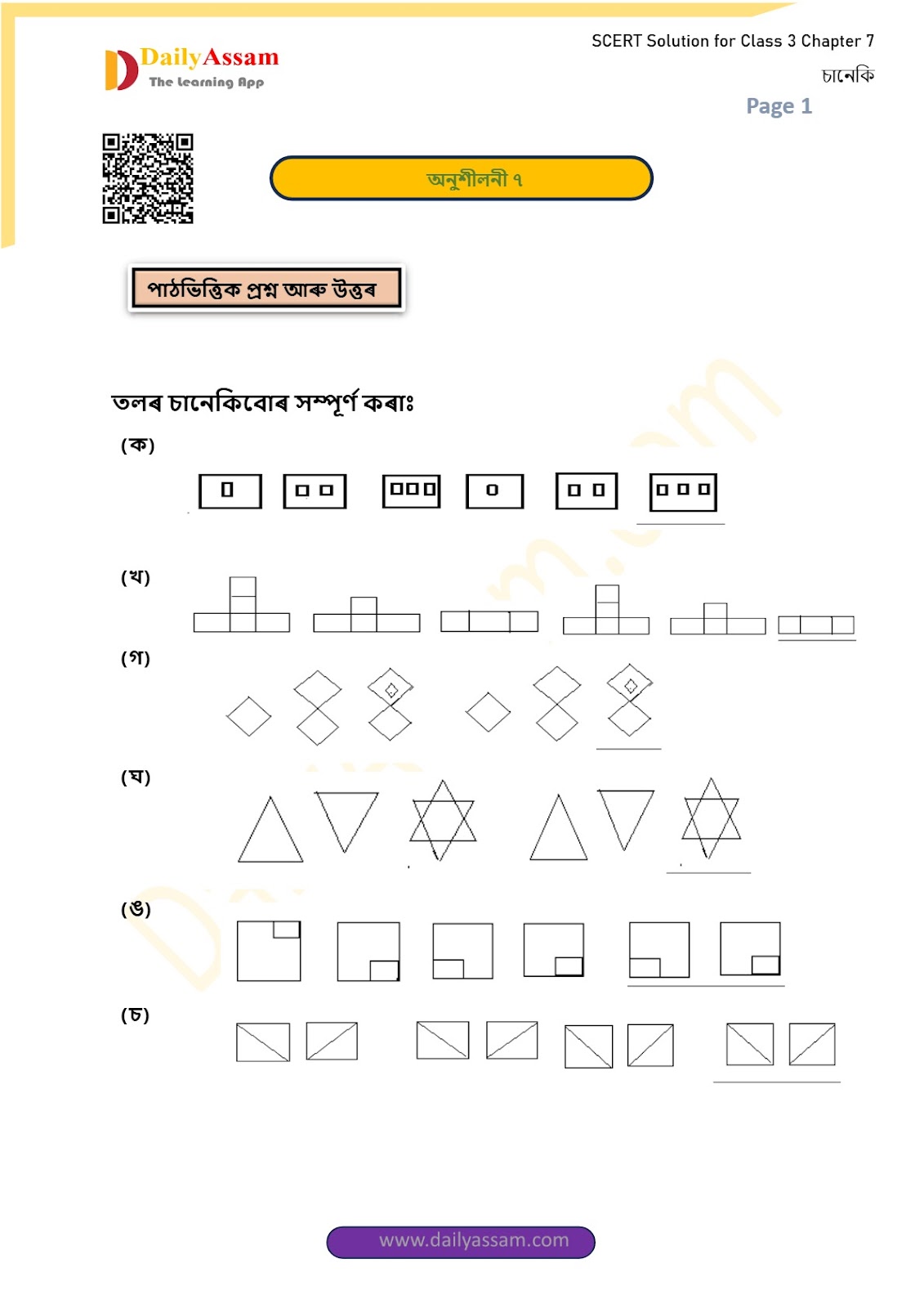 SEBA Class 3 Mathematics Chapter 15 Solution | Assam Board Class 3 Mathematics Chapter 15 চানেকি (Sketch) Answer | 2025 -2026