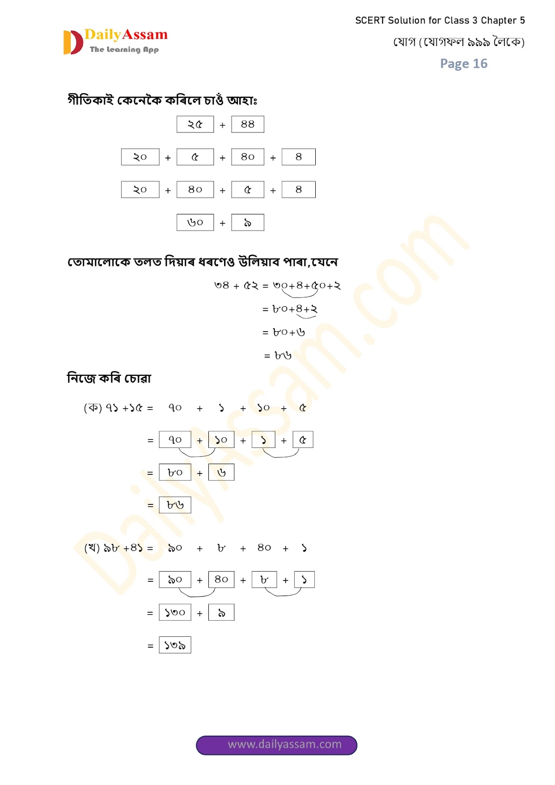 SEBA Class 3 Mathematics Chapter 4 Solution | Assam Board Class 3 Mathematics Chapter 4 যোগ (Addition) Answer | 2025 -2026