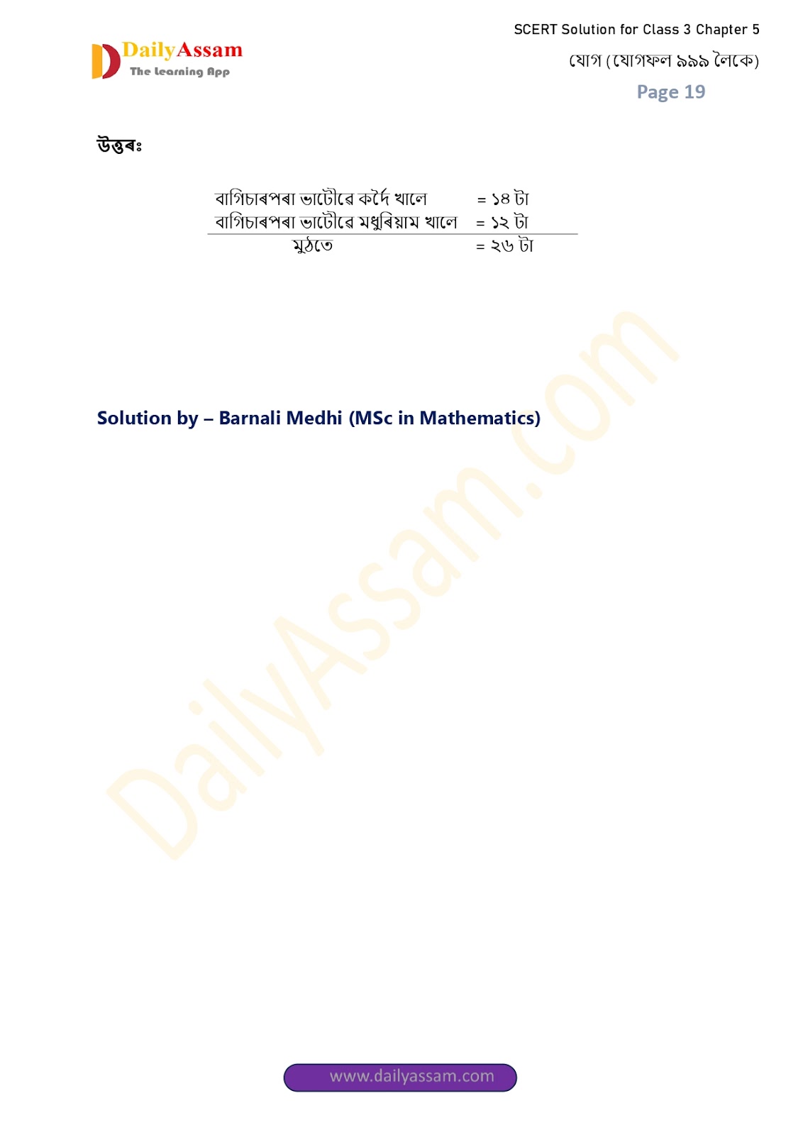 HomeClass 3 Maths SCERTSEBA Class 3 Mathematics Chapter 4 Solution | Assam Board Class 3 Mathematics Chapter 4 যোগ (Addition) Answer | 2025 -2026