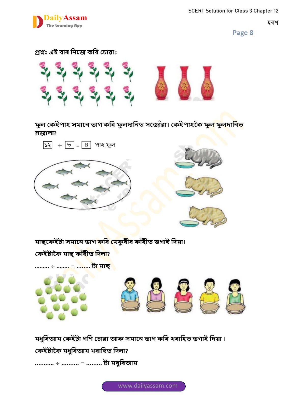 SEBA Class 3 Mathematics Chapter 8 Solution | Assam Board Class 3 Mathematics Chapter 8 হৰণ (Divisional Number) Answer | 2025 -2026