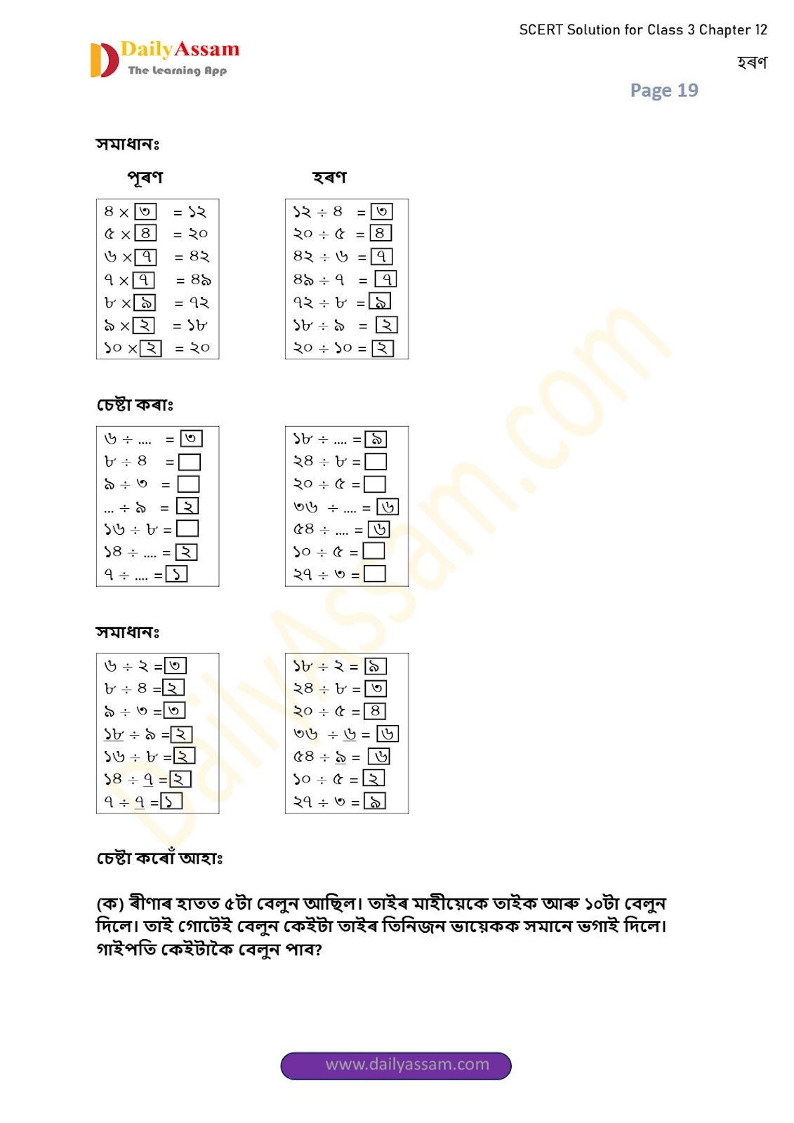 HomeClass 3 Maths SCERTSEBA Class 3 Mathematics Chapter 8 Solution | Assam Board Class 3 Mathematics Chapter 8 হৰণ (Divisional Number) Answer | 2025 -2026