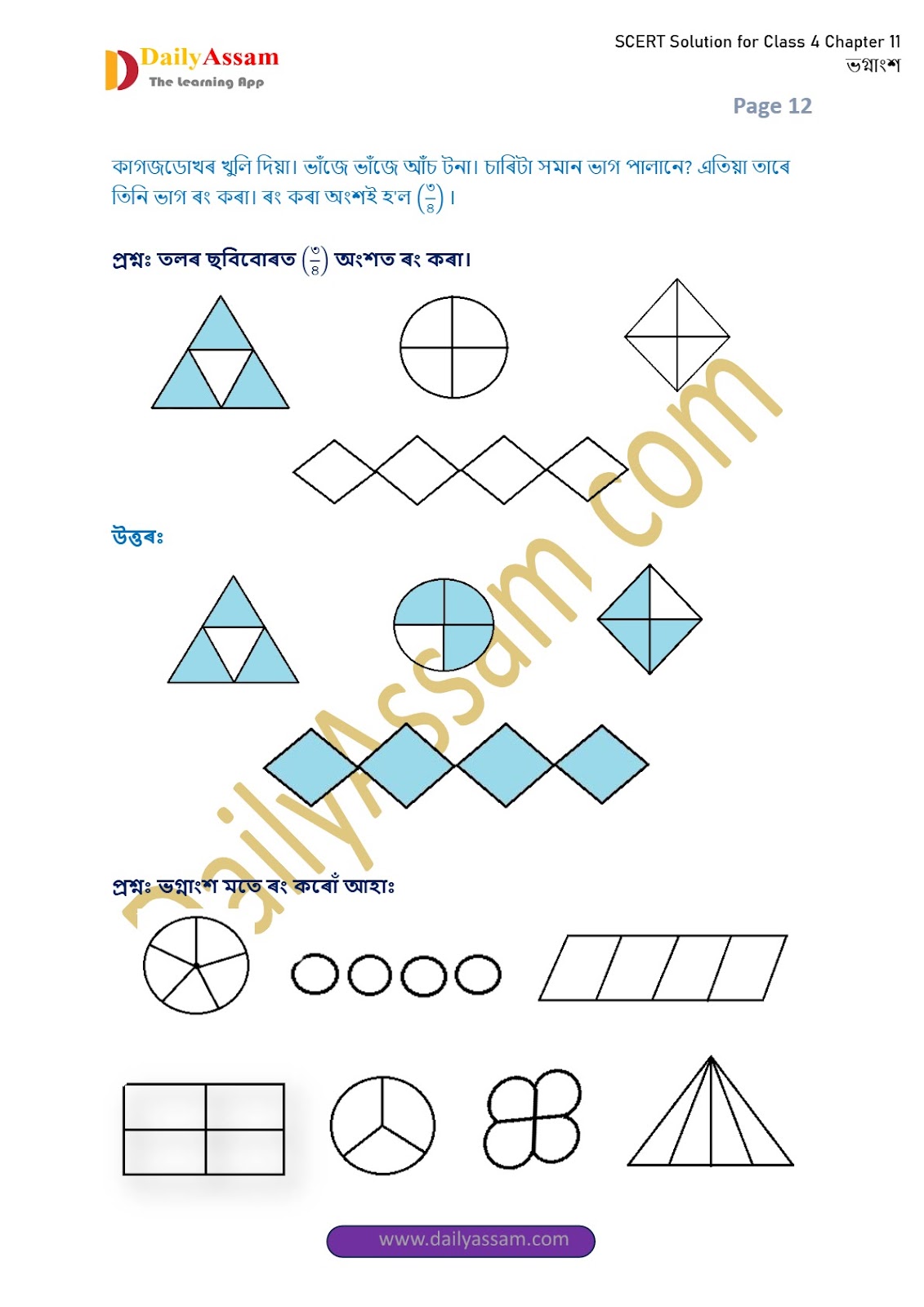 HomeClass 4 Mathematics (SCERT)SEBA Class 4 Mathematics Chapter 11 Solution | Assam Board Class 4 Mathematics Chapter 11 ভগ্নাংশ (Fraction) Answer | 2025 -2026