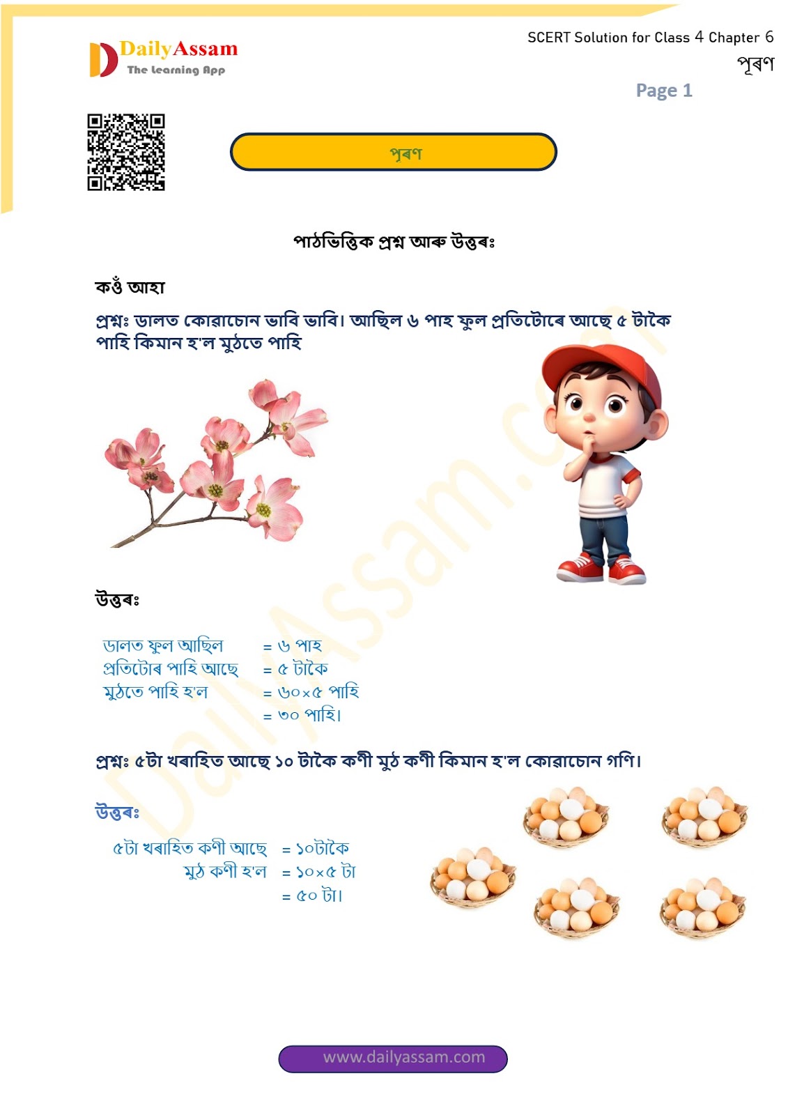 SEBA Class 4 Mathematics Chapter 6 Solution | Assam Board Class 4 Mathematics Chapter 6 পূৰণ (Multiplication) Answer | 2025 -2026