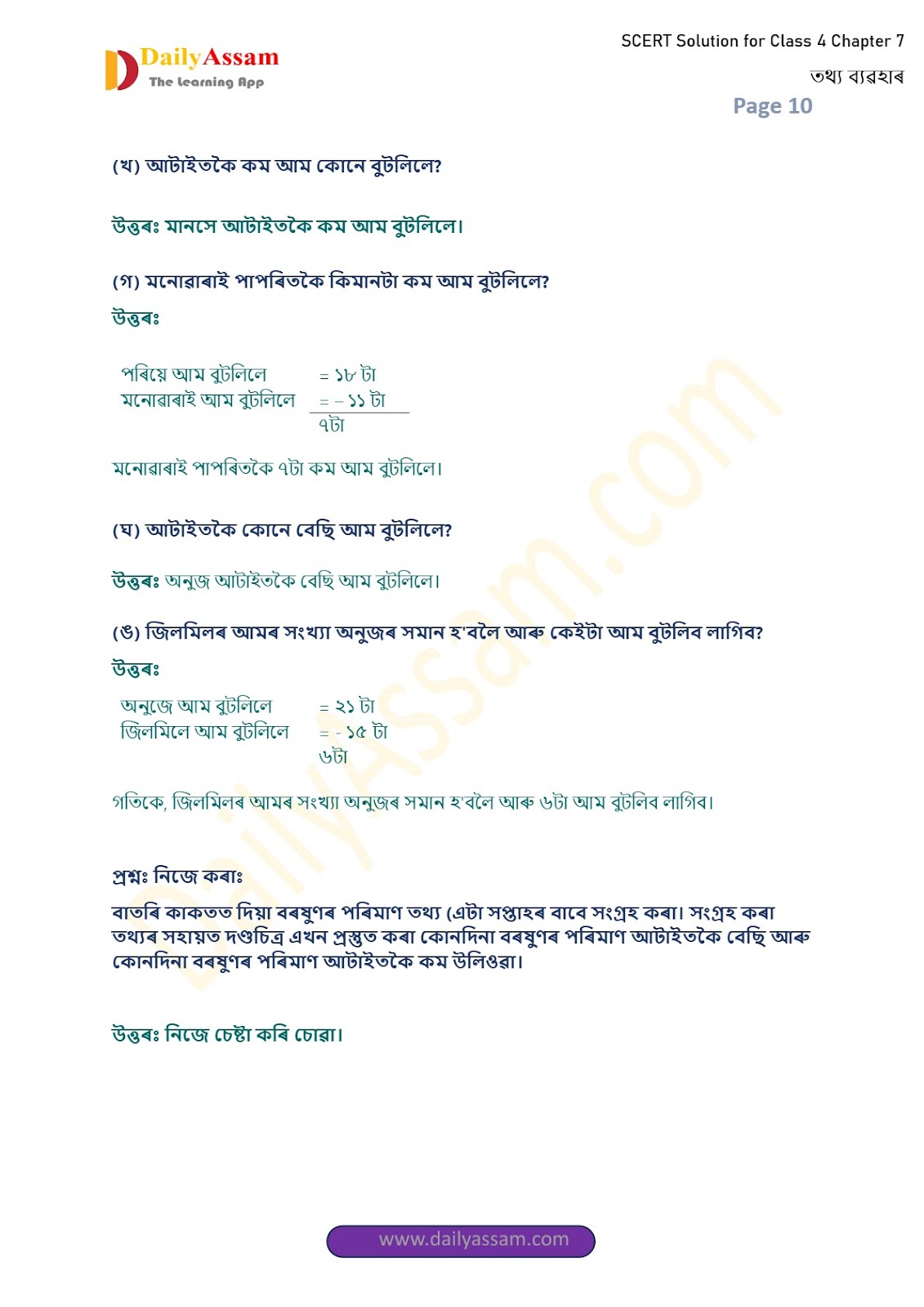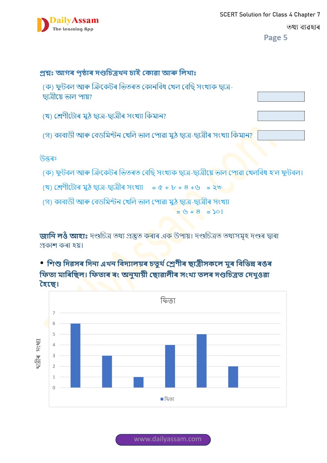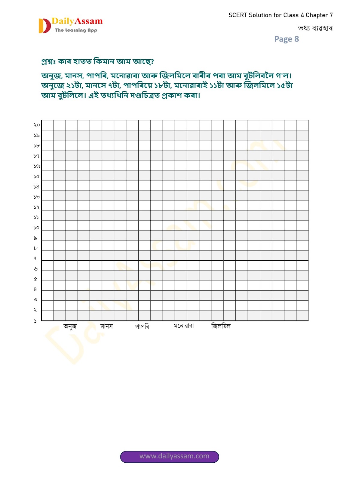 SEBA Class 4 Mathematics Chapter 7 Solution | Assam Board Class 4 Mathematics Chapter 7 তথ্যৰ ব্যৱহাৰ (Use of Data) Answer | 2025 -2026